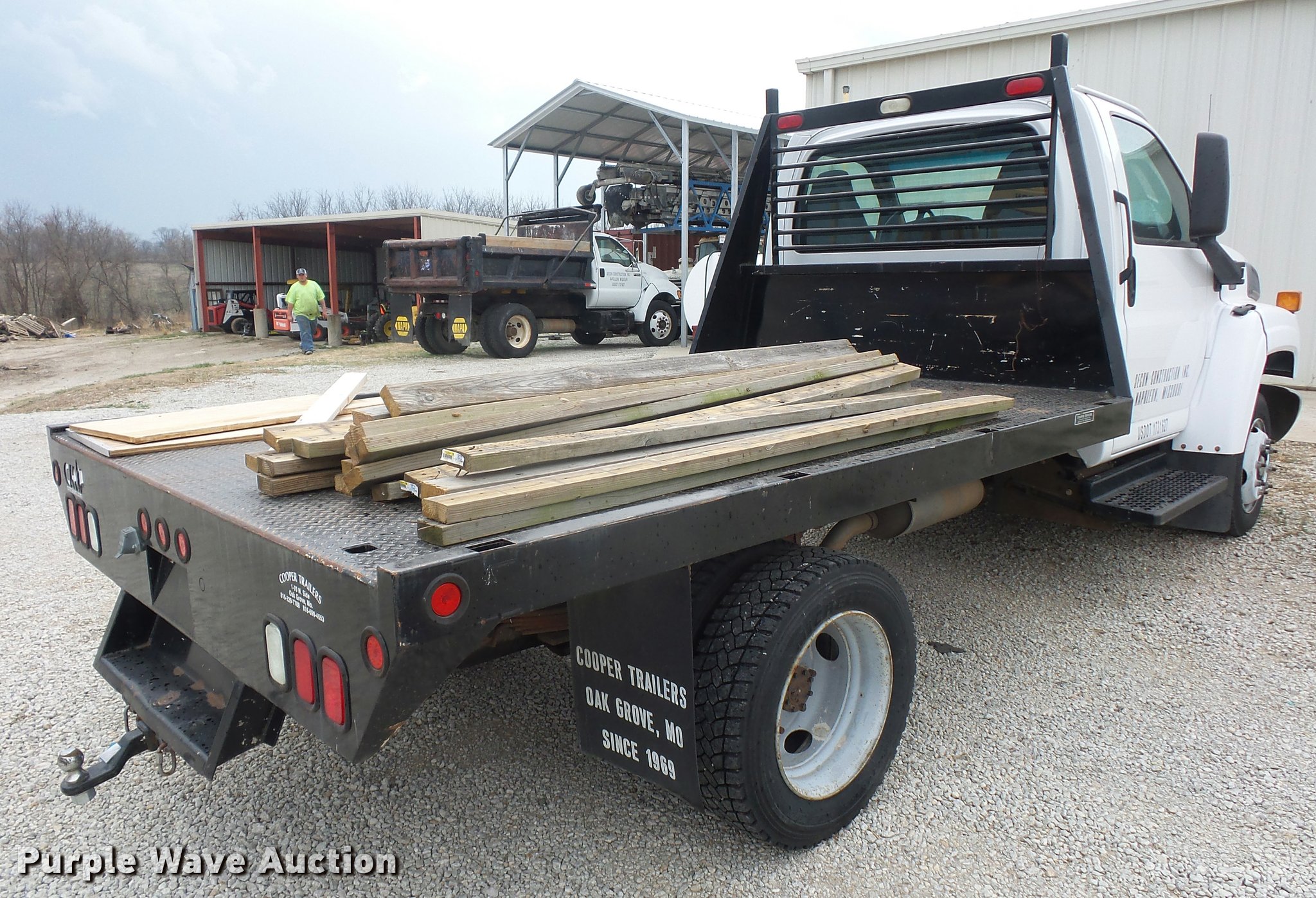 2003 Chevrolet C4500 flatbed truck. 15,716 miles on odometer, 6.6L V8 OHV 32V turbo diesel engine, Automatic transmission, AC and heat, AM/FM, Manual windows and locks, 11'L x 8'W flatbed, Receiver hitch, Trailer wiring, Spring suspension, Hydraulic brakes, 295/70R19.5 tires, Check engine light on. Missouri title. 1GBE4E1193F512702. Secon Construction, Inc.. 110 NW Locust St. Oak Grove, MO 64075