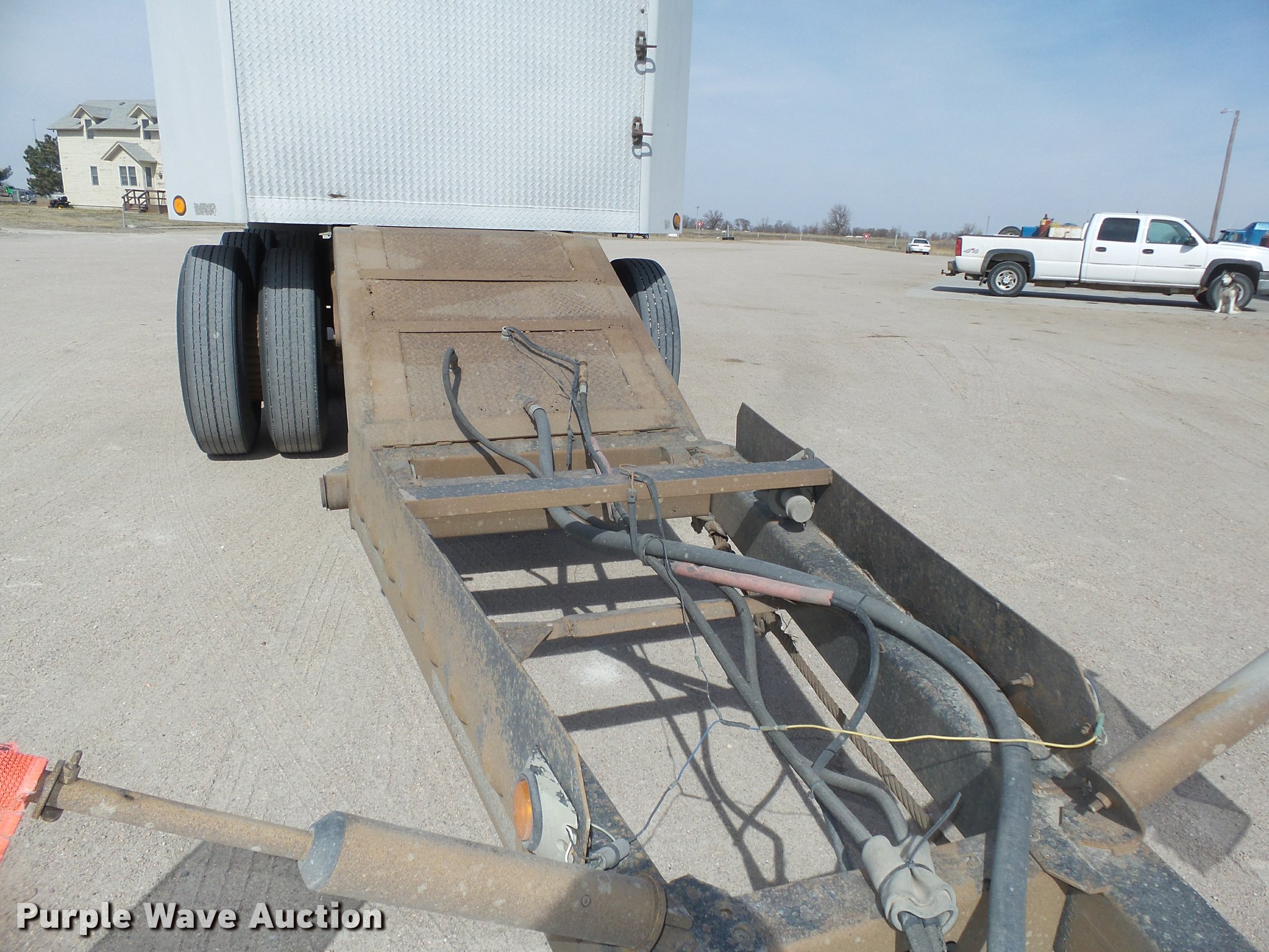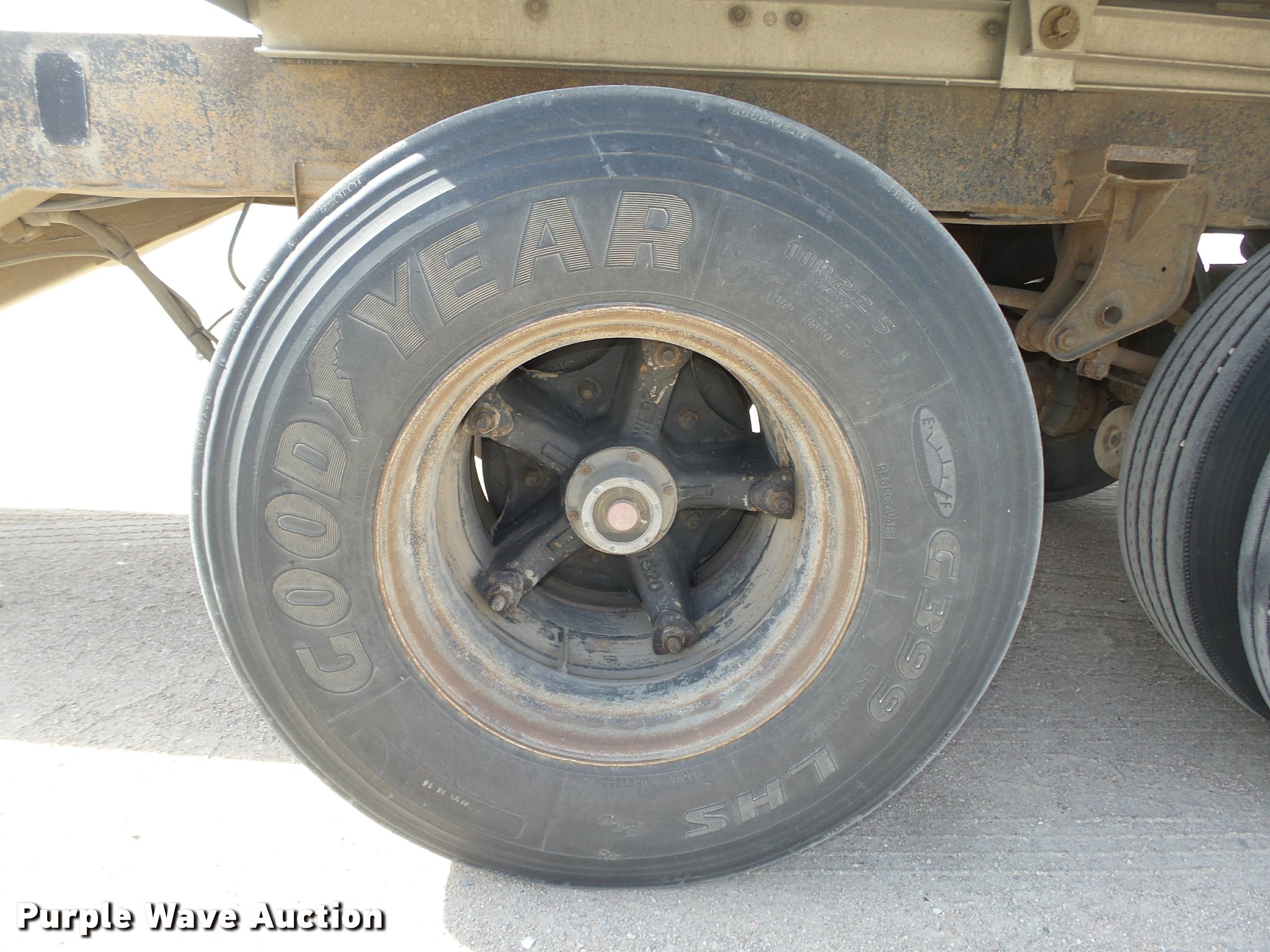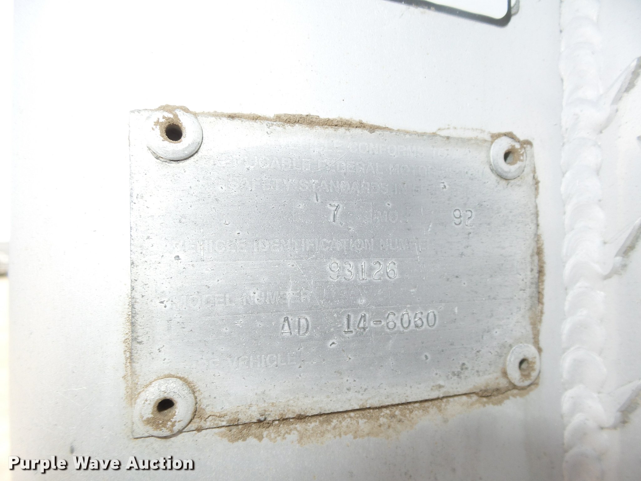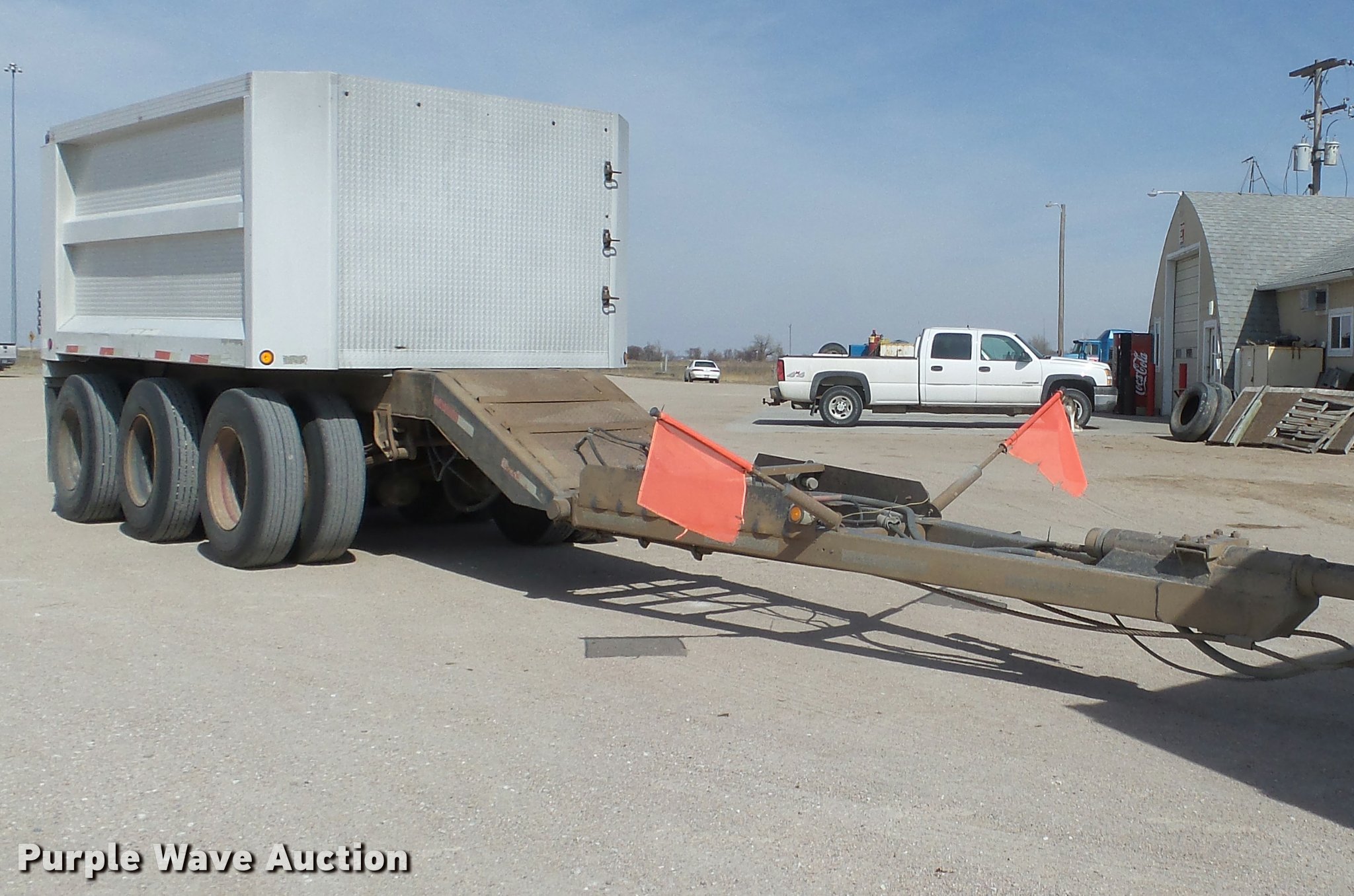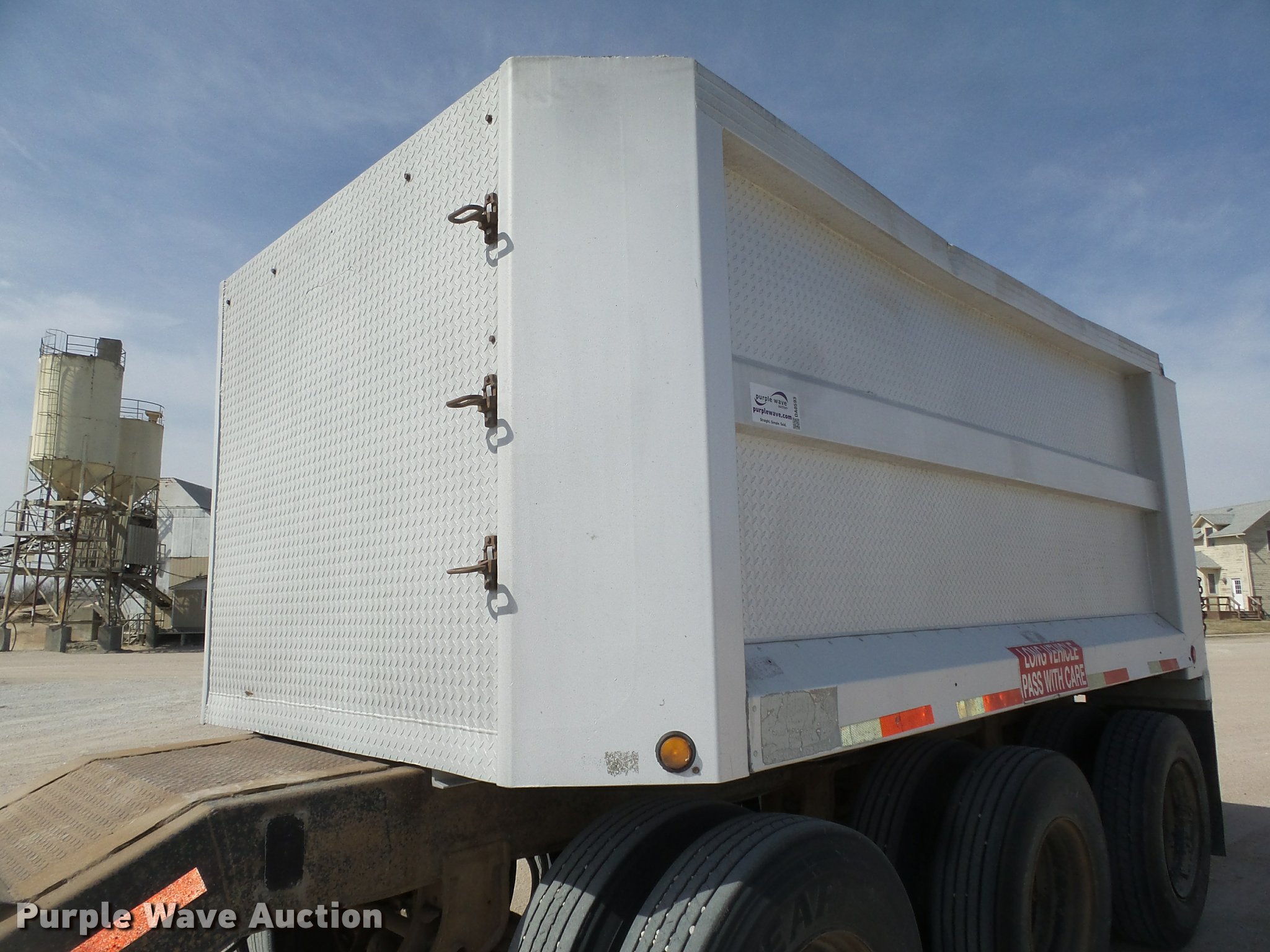 Purple Wave is selling a used End Dump Rock Trailer in Nebraska. This item is a 1992 Cornhusker 800 end dump pup trailer with the following: 32'7" overall length, 14'L x 96"W box, Model AD14-6060, 58" side height, 112" from ground to top of sides, Aluminum construction, Single hydraulic cylinder, Air operated grain door end gate, Poly liner, Tarp, Single leg landing gear, Bumper pull, Triple axle, Air over spring suspension, Air brakes, Steel wheels, 11R22.5 tires, Serial 93126