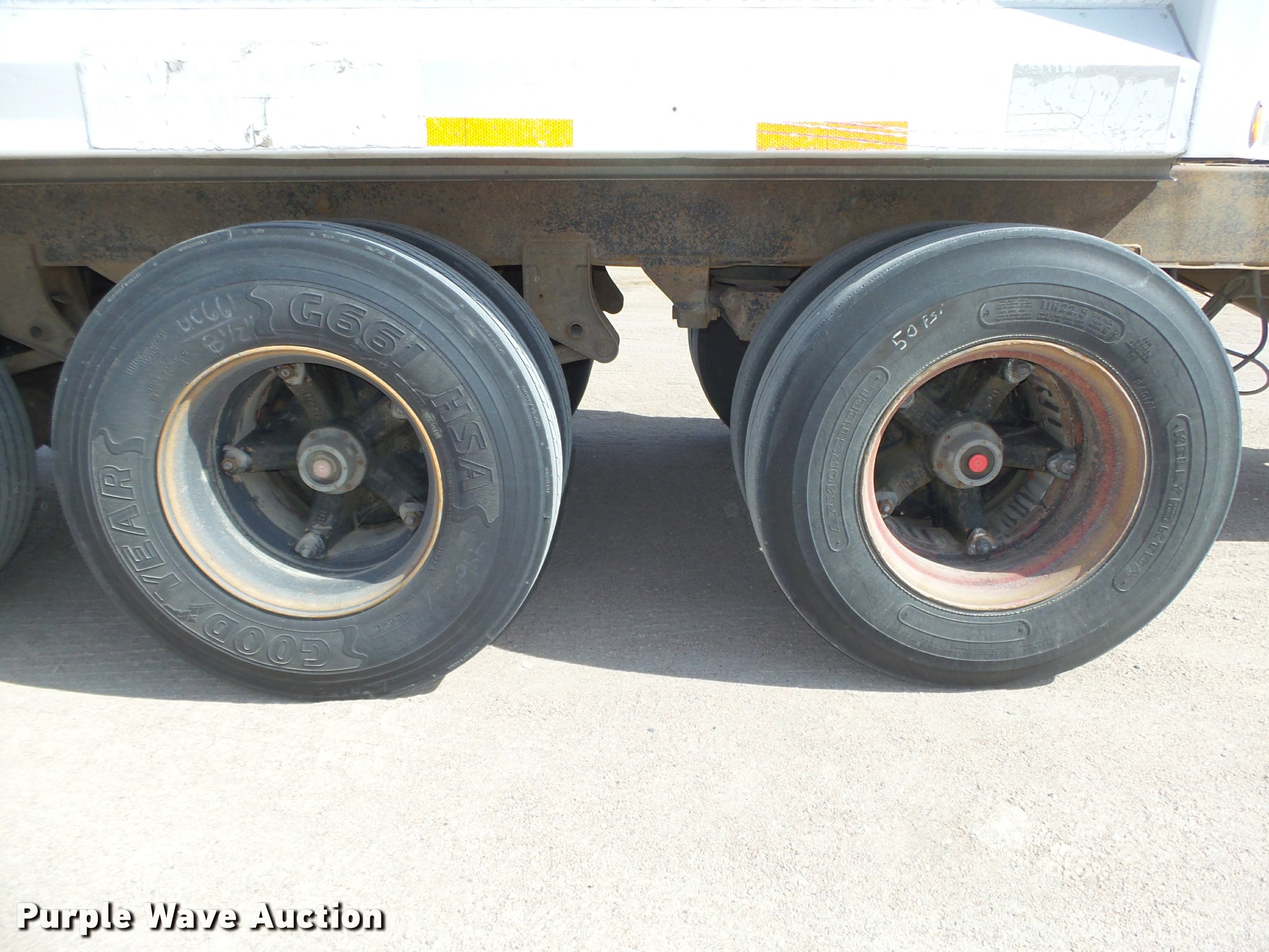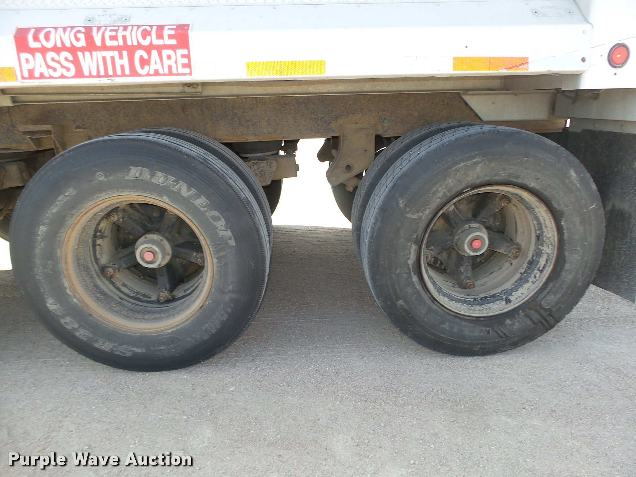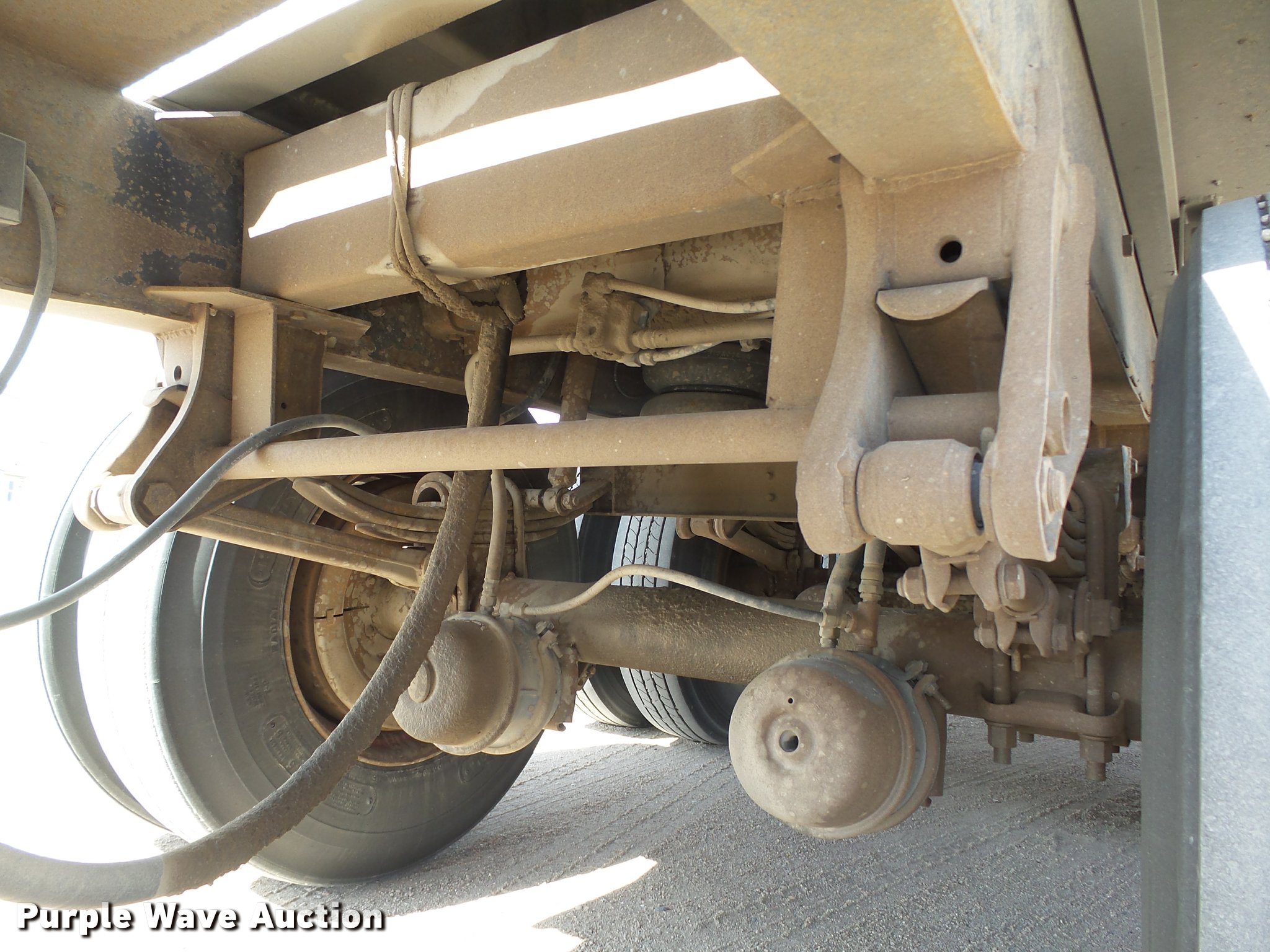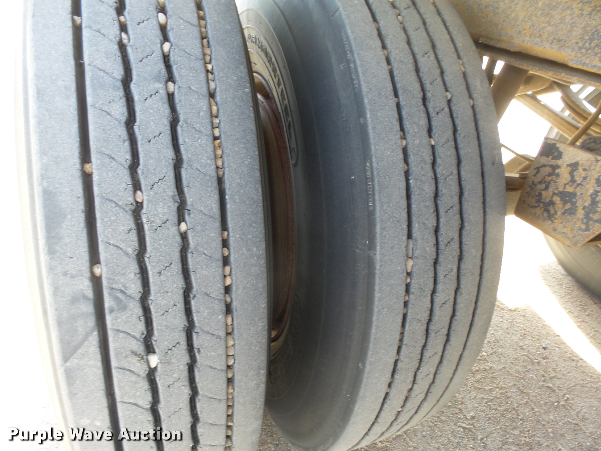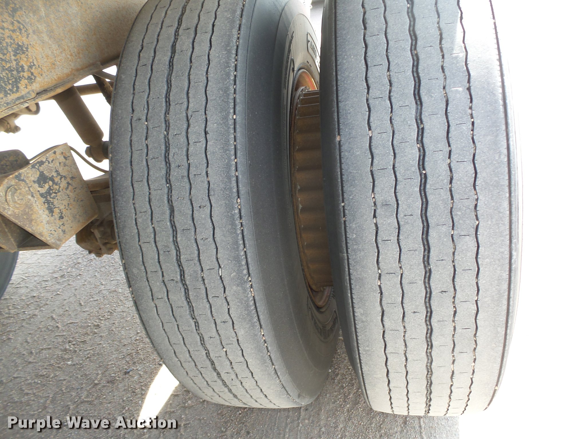 Purple Wave is selling a used End Dump Rock Trailer in Nebraska. This item is a 1992 Cornhusker 800 end dump pup trailer with the following: 32'7" overall length, 14'L x 96"W box, Model AD14-6060, 58" side height, 112" from ground to top of sides, Aluminum construction, Single hydraulic cylinder, Air operated grain door end gate, Poly liner, Tarp, Single leg landing gear, Bumper pull, Triple axle, Air over spring suspension, Air brakes, Steel wheels, 11R22.5 tires, Serial 93126
