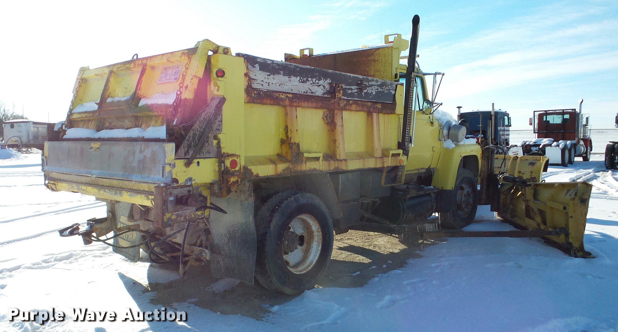 Purple Wave is selling a used Construction Dump Truck in Minnesota. This item is a 1991 Ford L8000 dump truck with the following: 156,793 miles on odometer, Ford 7.8L L6 diesel engine, Automatic transmission, Single axle, Heat, AM/FM, Air suspension seat, Front mounted PTO, 11'L x 8'W steel dump bed, 24" side height, 10" side board height, Air operated end gate, 11'W snow plow, 9'W wing plow, Spreader, Single fuel tank, Spring suspension, Air brakes, 11R22.5 tires, GVWR 35,000 lbs