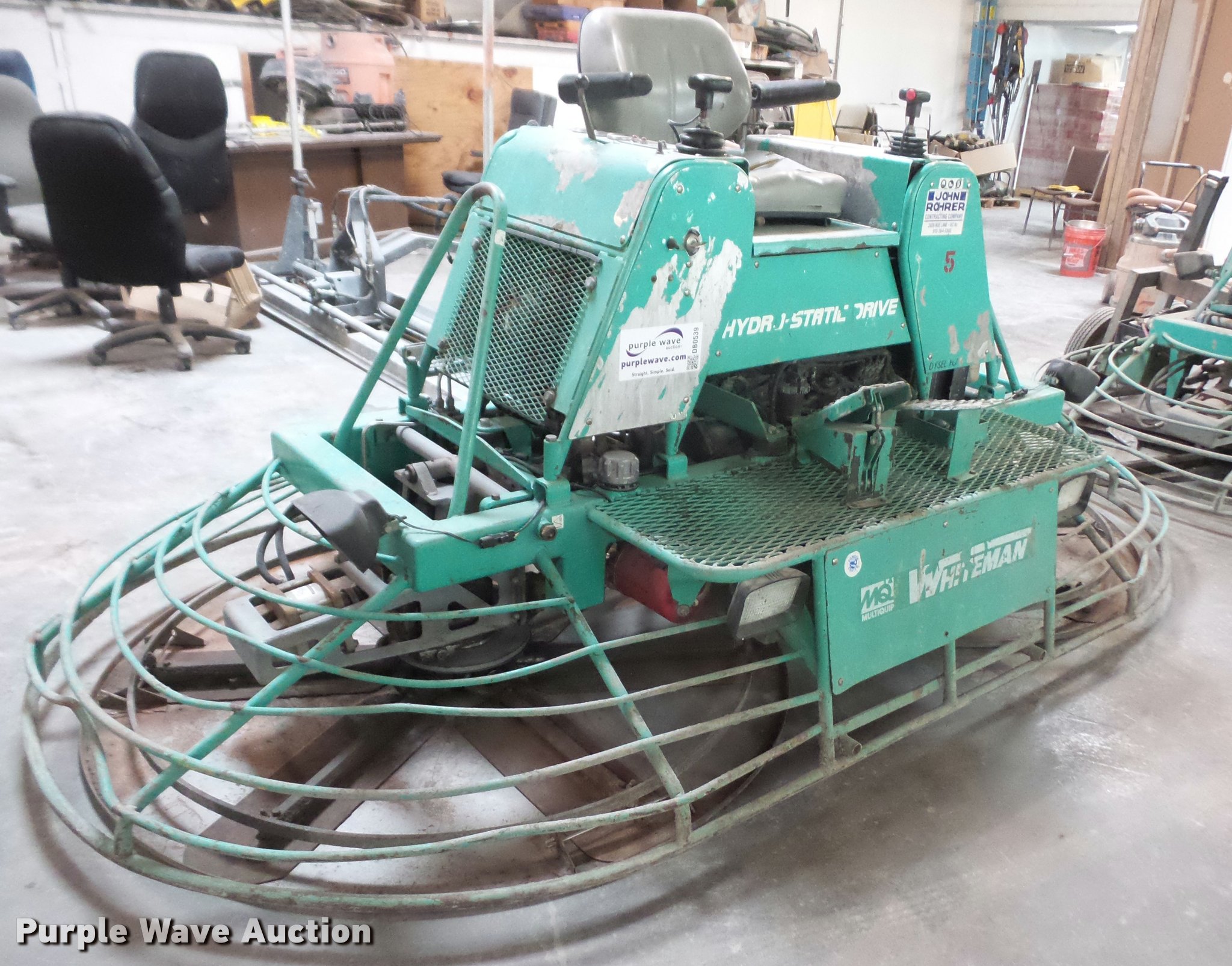 Purple Wave is selling a used Concrete Equip. or Acces. in Kansas. This item is a 1999 Whiteman STH55JDTCSL power trowel with the following: 592 hours on meter, John Deere Series 220 four cylinder diesel engine, Hydrostatic transmission, 10'W, Work lights, Float pans included, Serial 60423