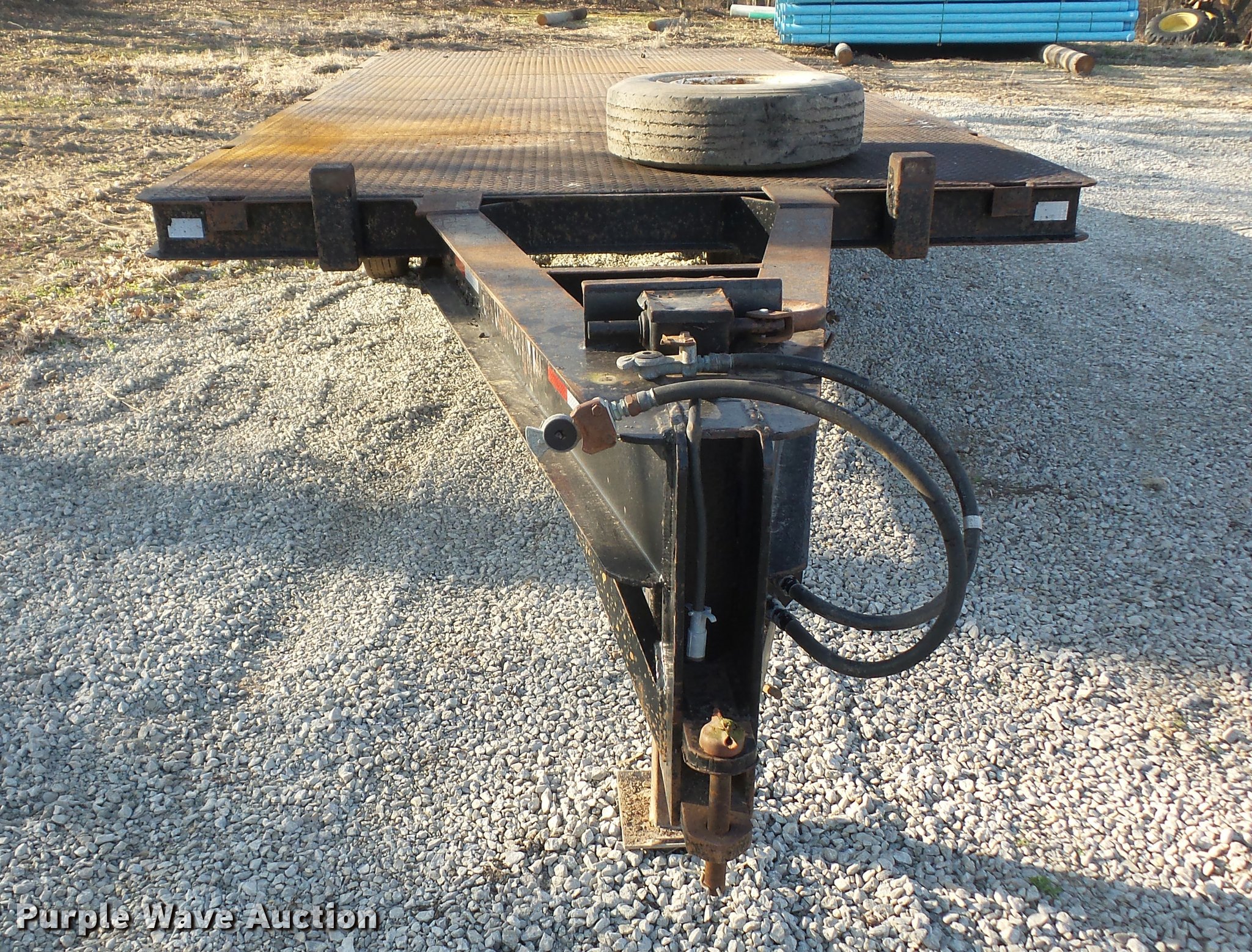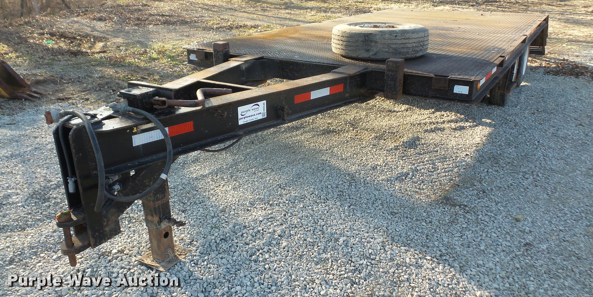 Purple Wave is selling a used Equip. Trailer in Missouri. This item is a 1995 shop built equipment trailer with the following: 22'L x 101"W, 18'L steel deck, Dovetail, 4'L ramps, Stake pockets, Bumper pull, Spring suspension, Air brakes, Tandem axle, 215/75R17.5 tires