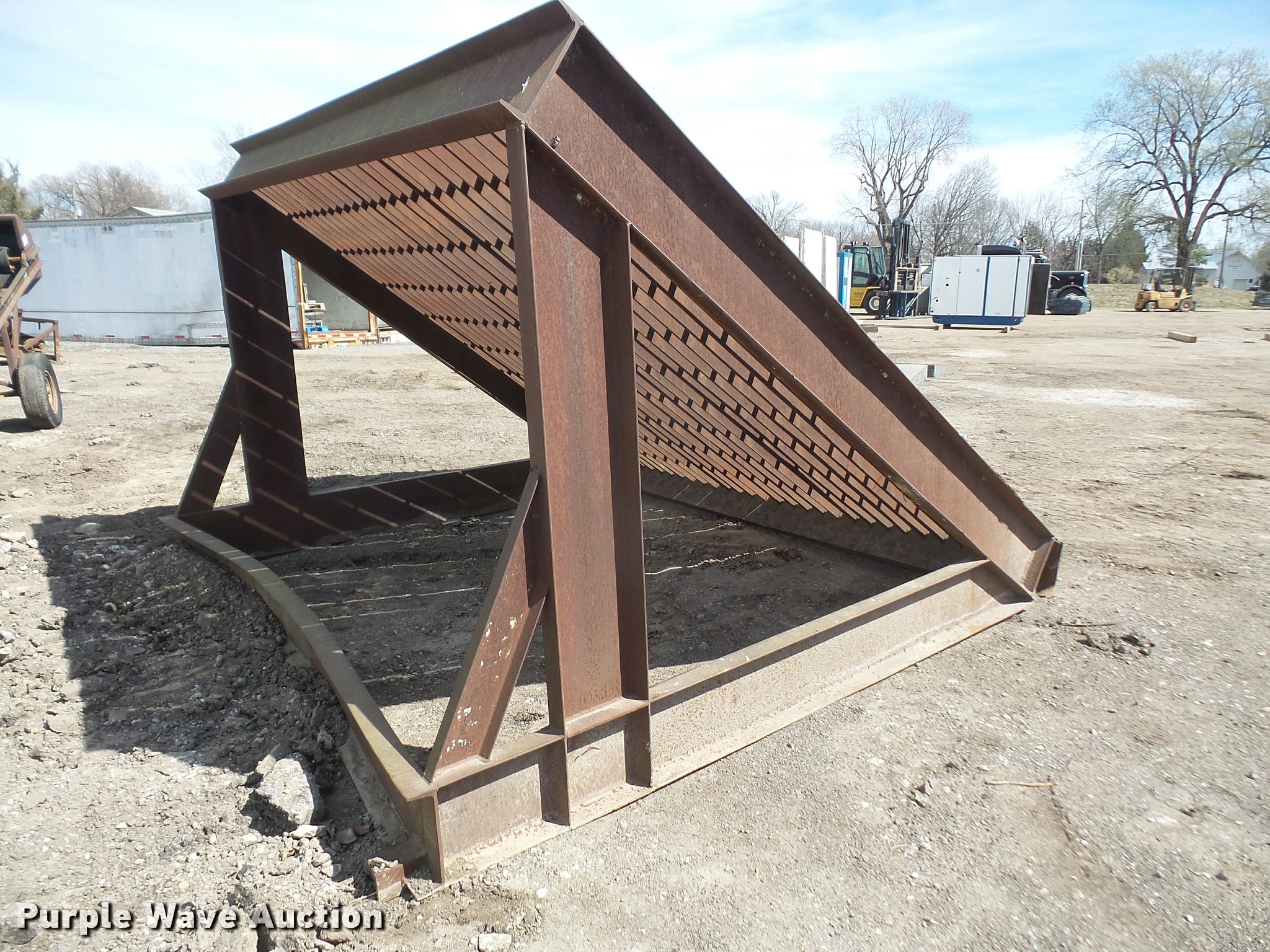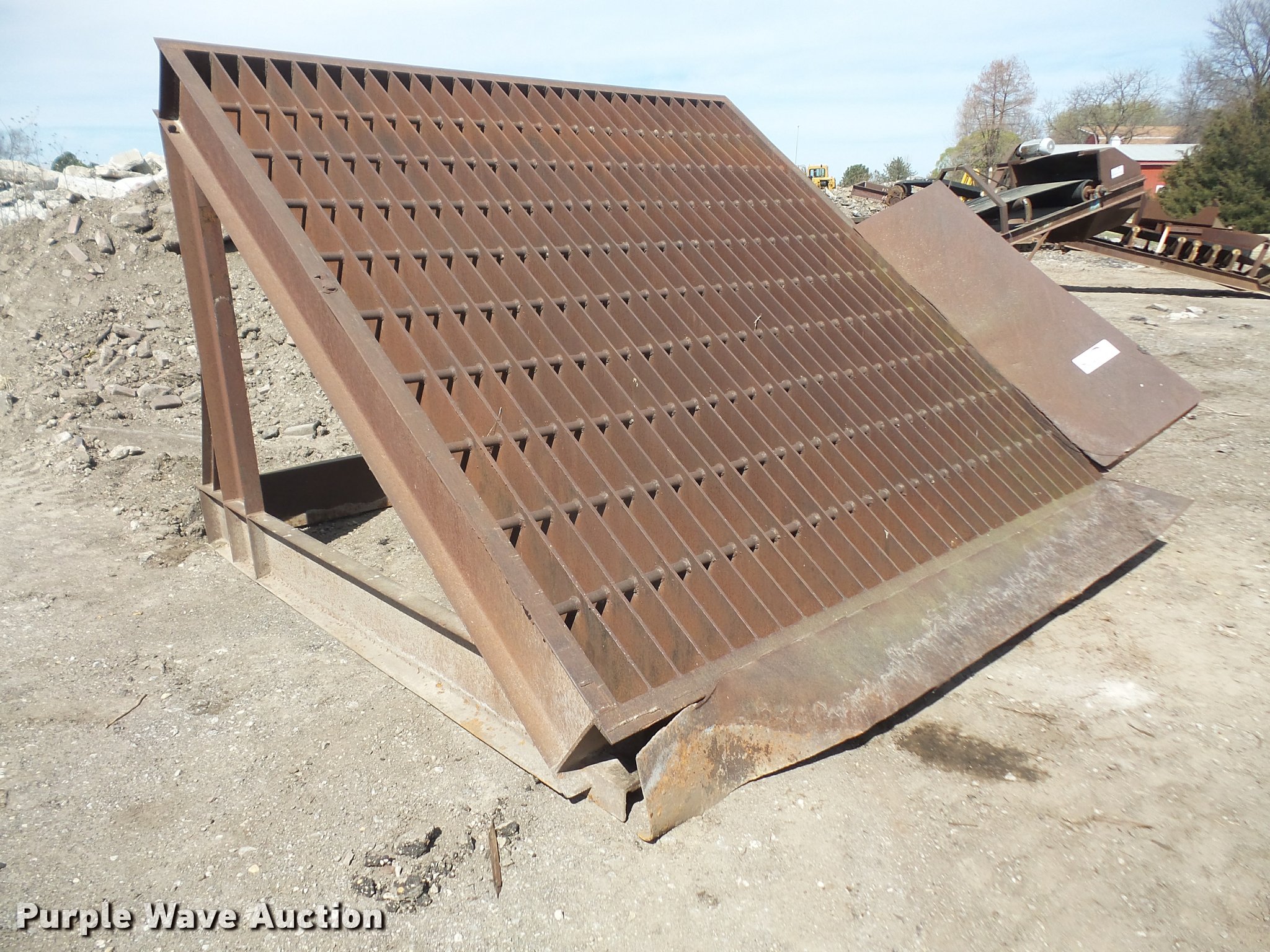 Grizzley screen. 10.5'L x 10.5'W x 7'3"H, 3.5" bar spacing. American Equipment. 1723 E 1500 Rd. Lawrence, KS 66044