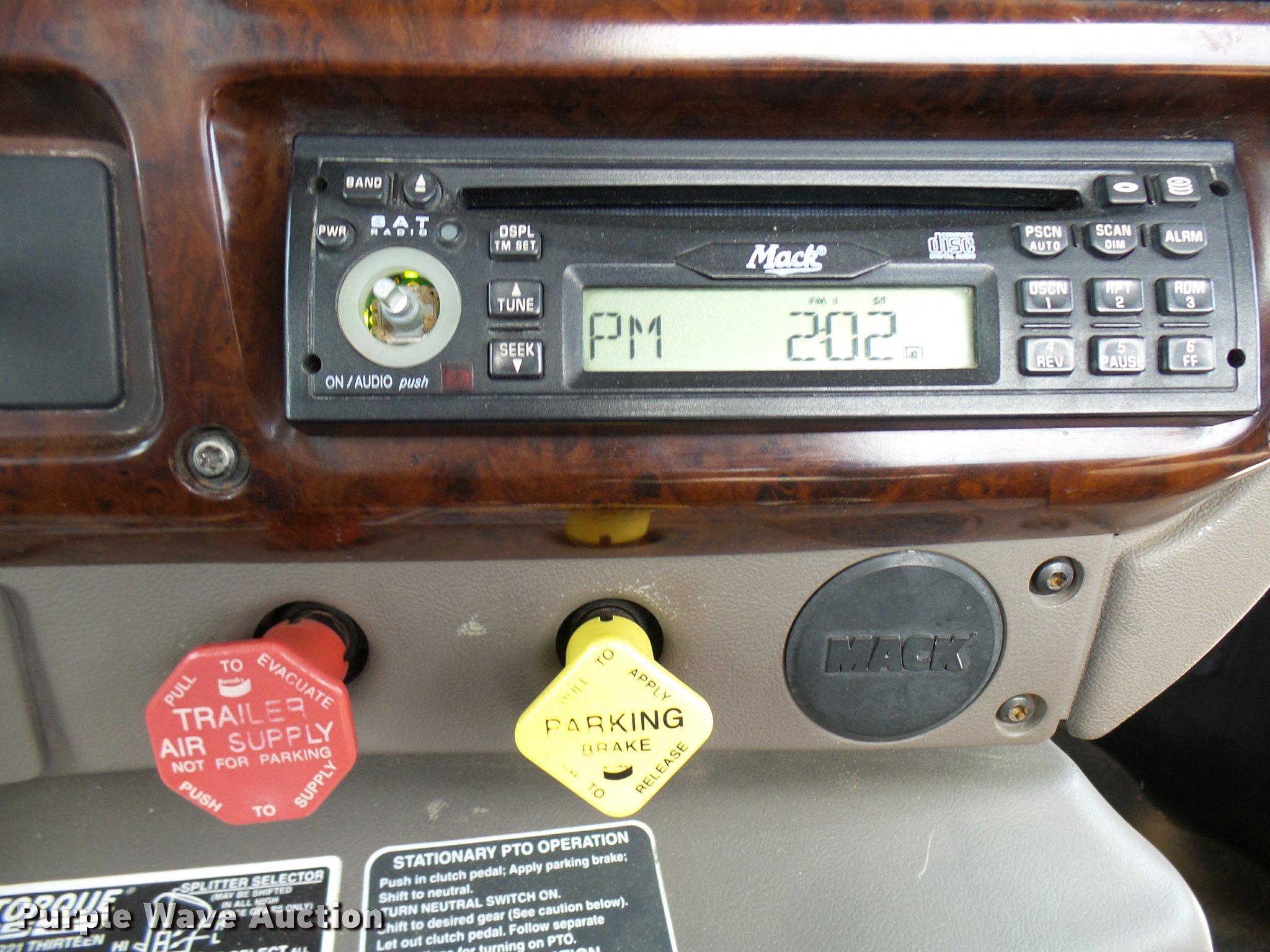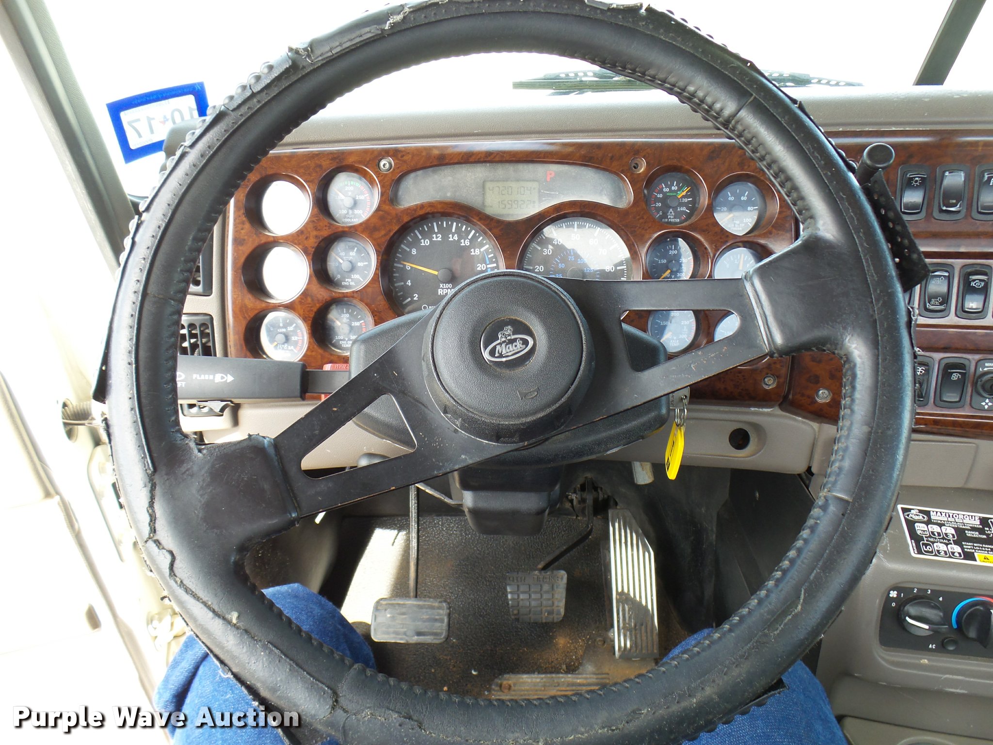 Purple Wave is selling a used Truck Tractor in Texas. This item is a 2006 Mack CHN613 semi truck with the following: 472,010 miles on odometer, 15,992 hours on meter, Mack E7 12.0L L6 turbo diesel engine, Mack Maxitorque eight speed manual transmission, Tandem axle, Inter-axle differential lock, AC and heat, Tilt, Cruise, AM/FM/CD, Air suspension seat, Air ride cab, Fog lights, Backup alarm, Front tow hooks, Dual rear exhaust stacks, Aluminum deck plate, Air operated sliding fifth wheel plate, Dual fuel tanks, Plastic half fenders, Mud flaps, Air suspension, Air brakes, 222" wheelbase, 11R24.5 tires, GVWR 52,000 lbs, FAWR 12,000 lbs, IAWR 20,000 lbs, RAWR 20,000 lbs