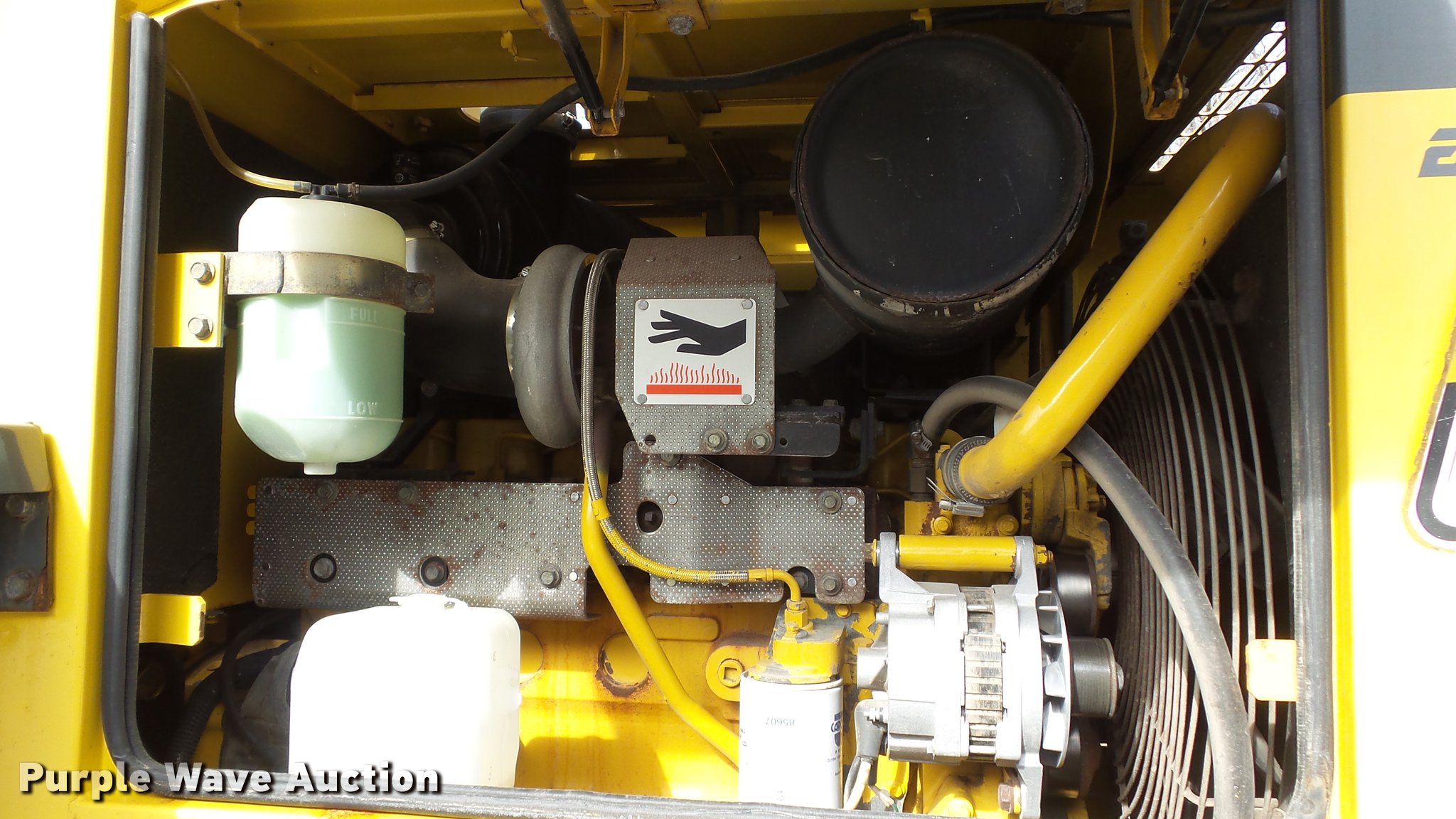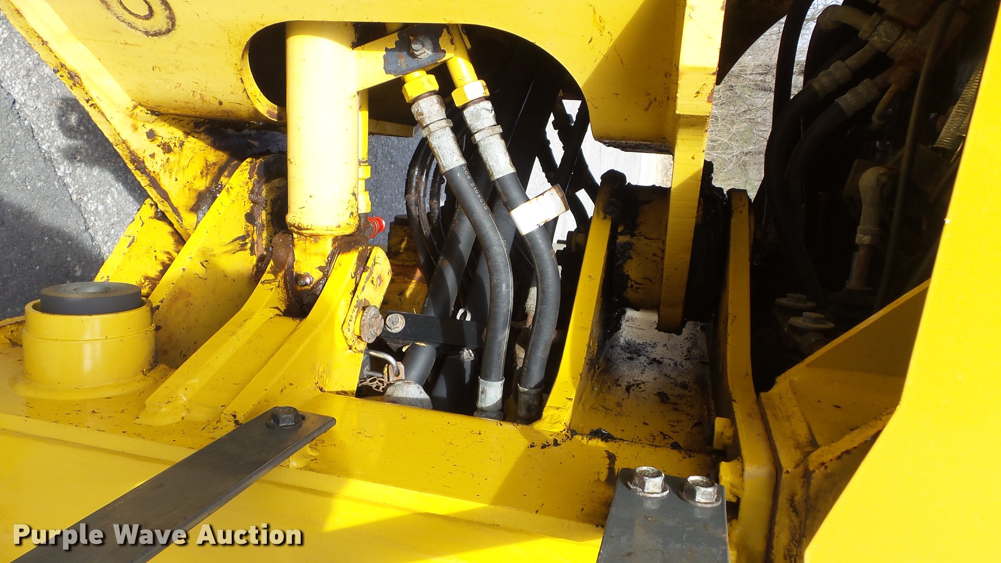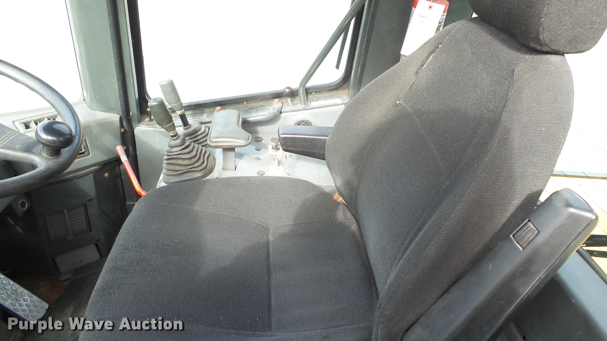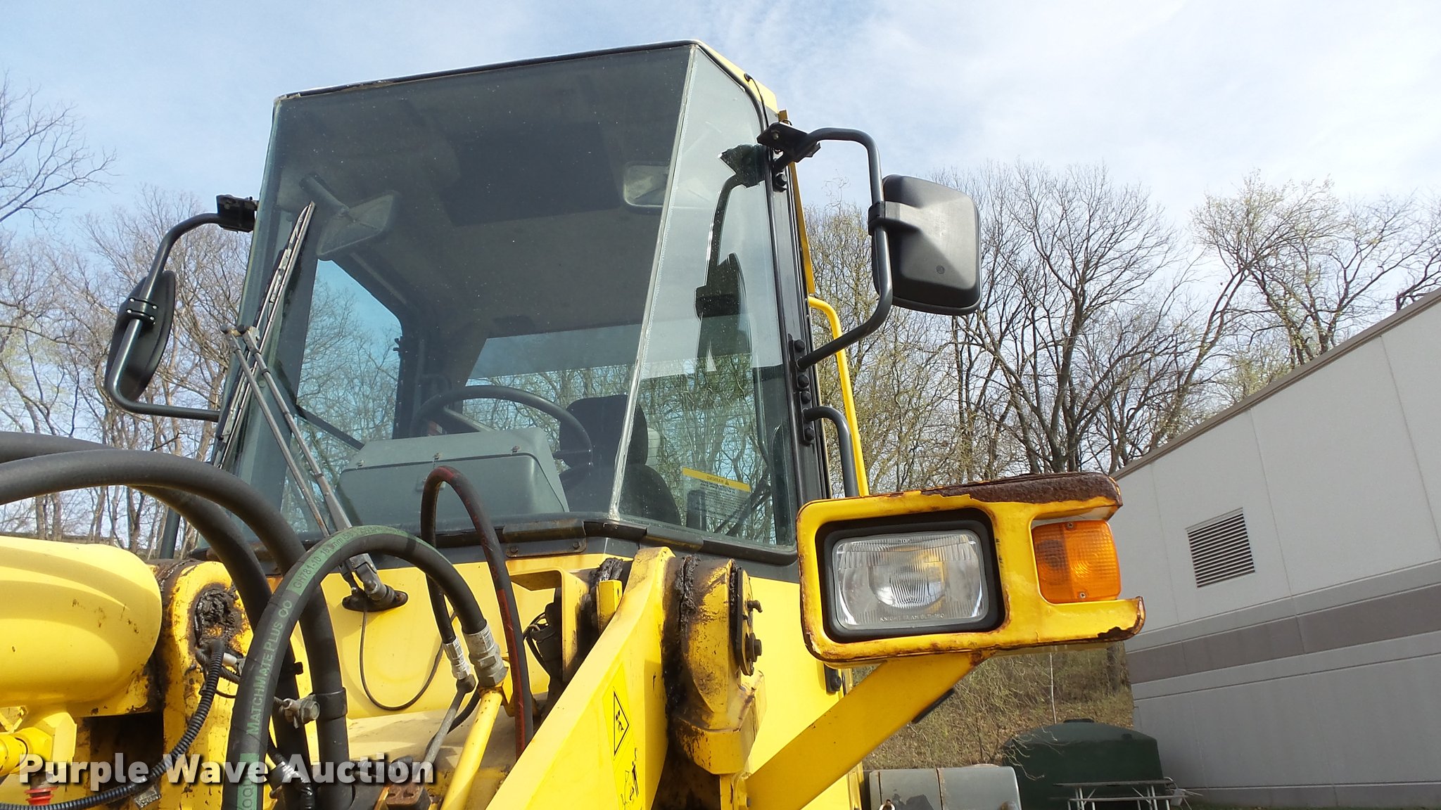 Purple Wave is selling a used Wheel Loader in Kansas. This item is a 2003 Komatsu WA180-3MC wheel loader with the following: 4,372 hours on meter, Komatsu S6D102E-1 5.9L six cylinder turbo diesel engine, 128 HP, Serial 46265927, 4F-4R gears, Enclosed cab, AC and heat, Rear window defrost, Suspension seat, Hand steering controls, Two-lever bucket controls, Wipers, Front and rear work lights, Backup alarm, JRB WA180-3 general purpose bucket, 8'W, 2.5 cu. yd. capacity, Bolt-on cutting edge, Self-leveling, JRB WA250-3 pallet forks, 60"L x 6"W x 2.5" thick, Hydraulic quick coupler, Counterweights, Firestone 7.50-25L-2 tires, Operator manual, Filters, Sluggish on forward side, Rust, Serial A81346, Unit# 346