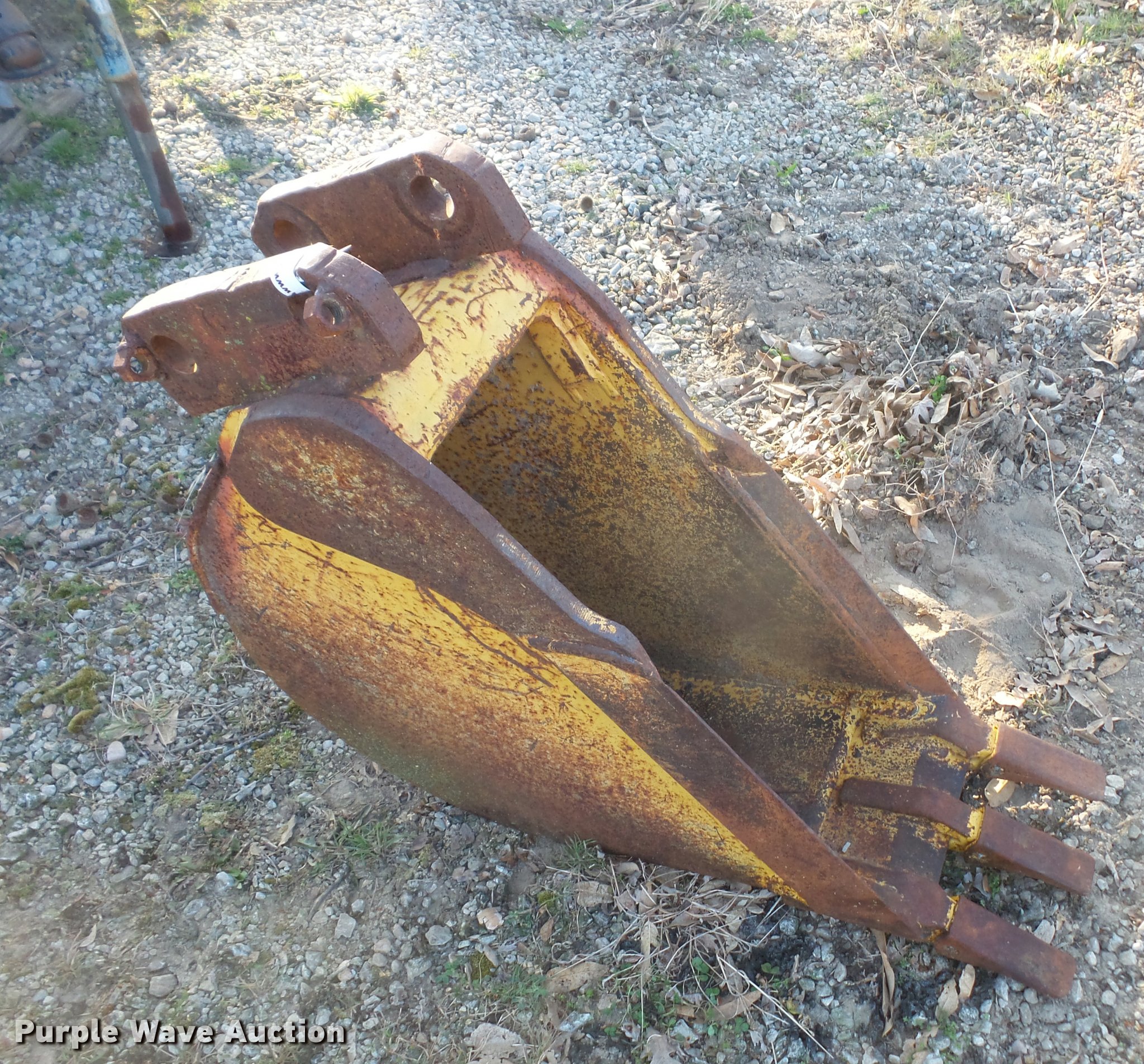 Purple Wave is selling a used Backhoe Attach. in Missouri. This item is a Backhoe bucket with the following: 12"W, 7.5" holes on center, 5.5"W bracket, 1.5" hole diameter
