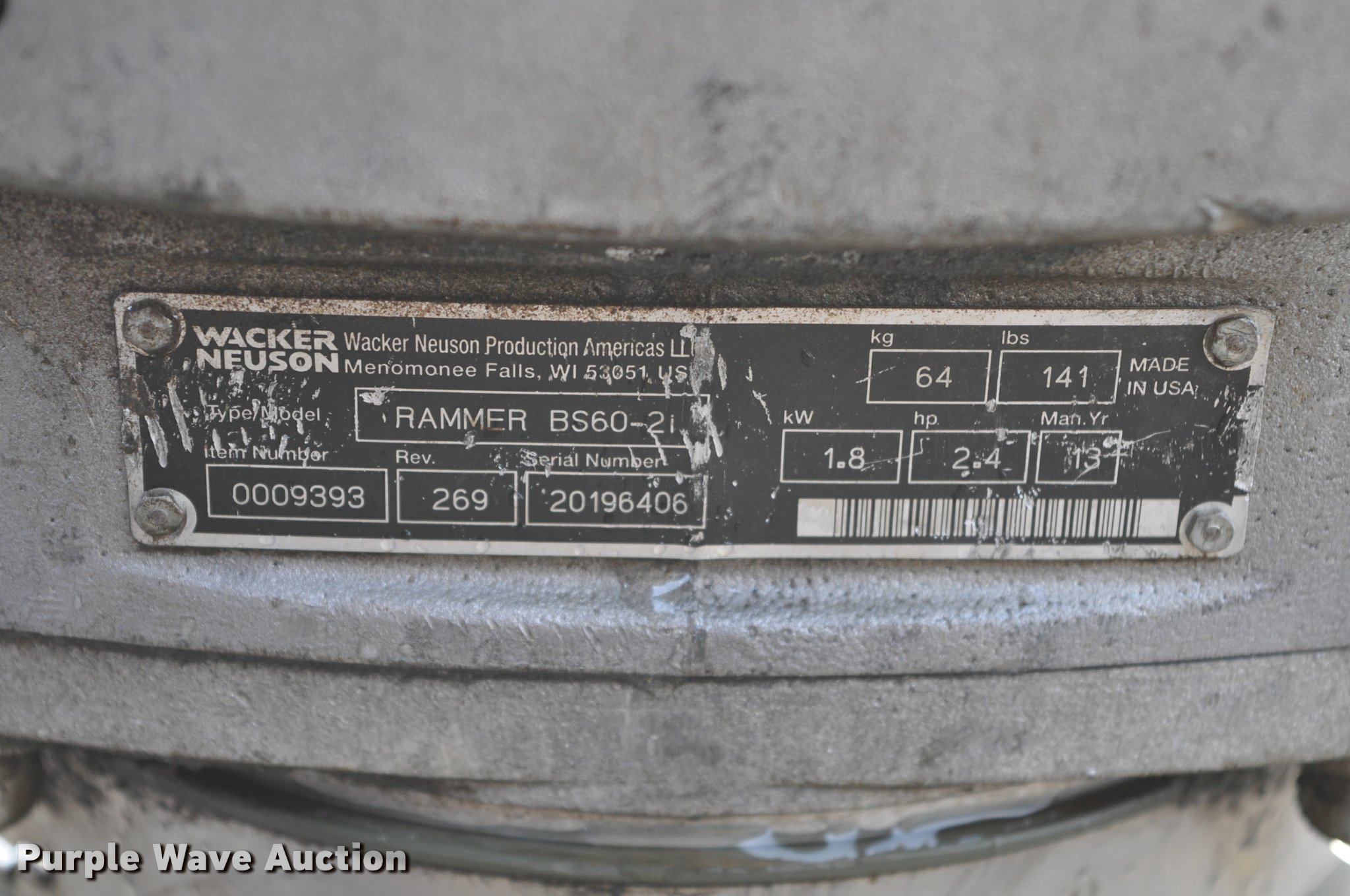 Wacker Neuson BS60-2i plate compactor has sold in Colorado Springs, Colorado for $577.50. Item L5162 sold on April 13th, 2017.