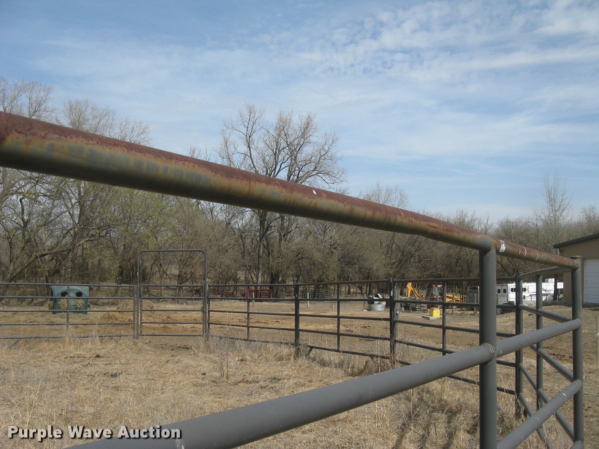 Purple Wave is selling a used Livestock Equip. in Kansas. This item is a Behlen Horseman's Choice round pen with the following: (13) 12'L panels, 69"H, Five bar, Tethered pins, Footed, 6'W bow gate