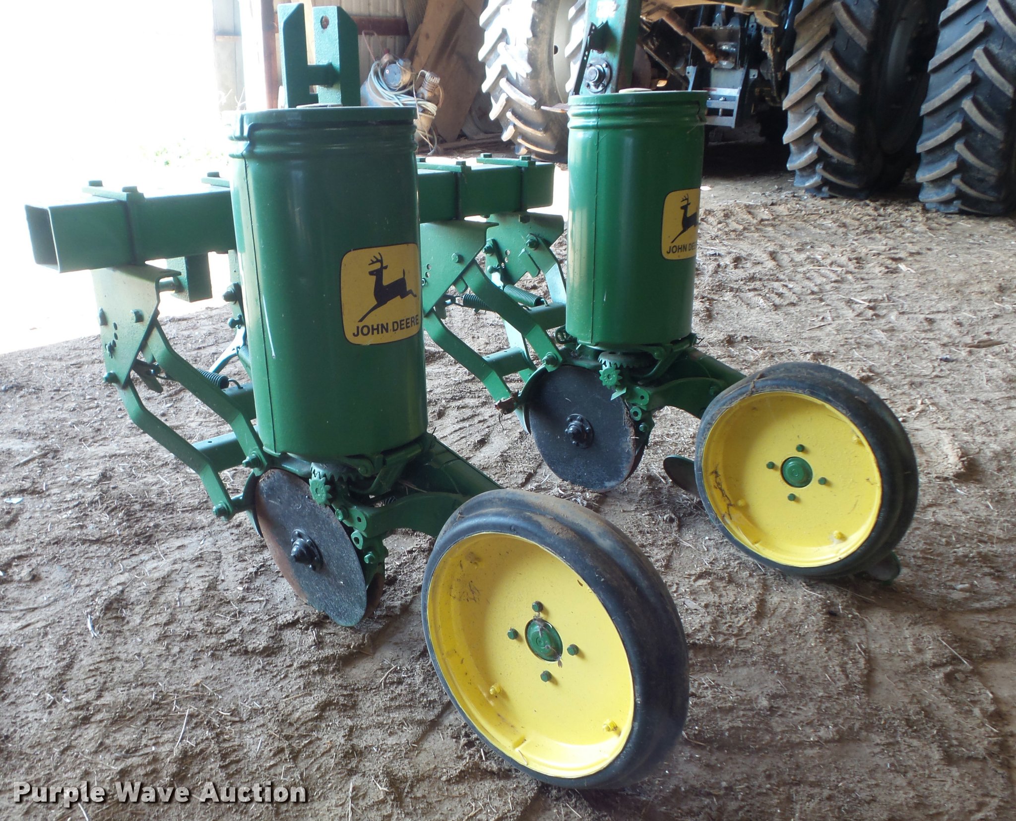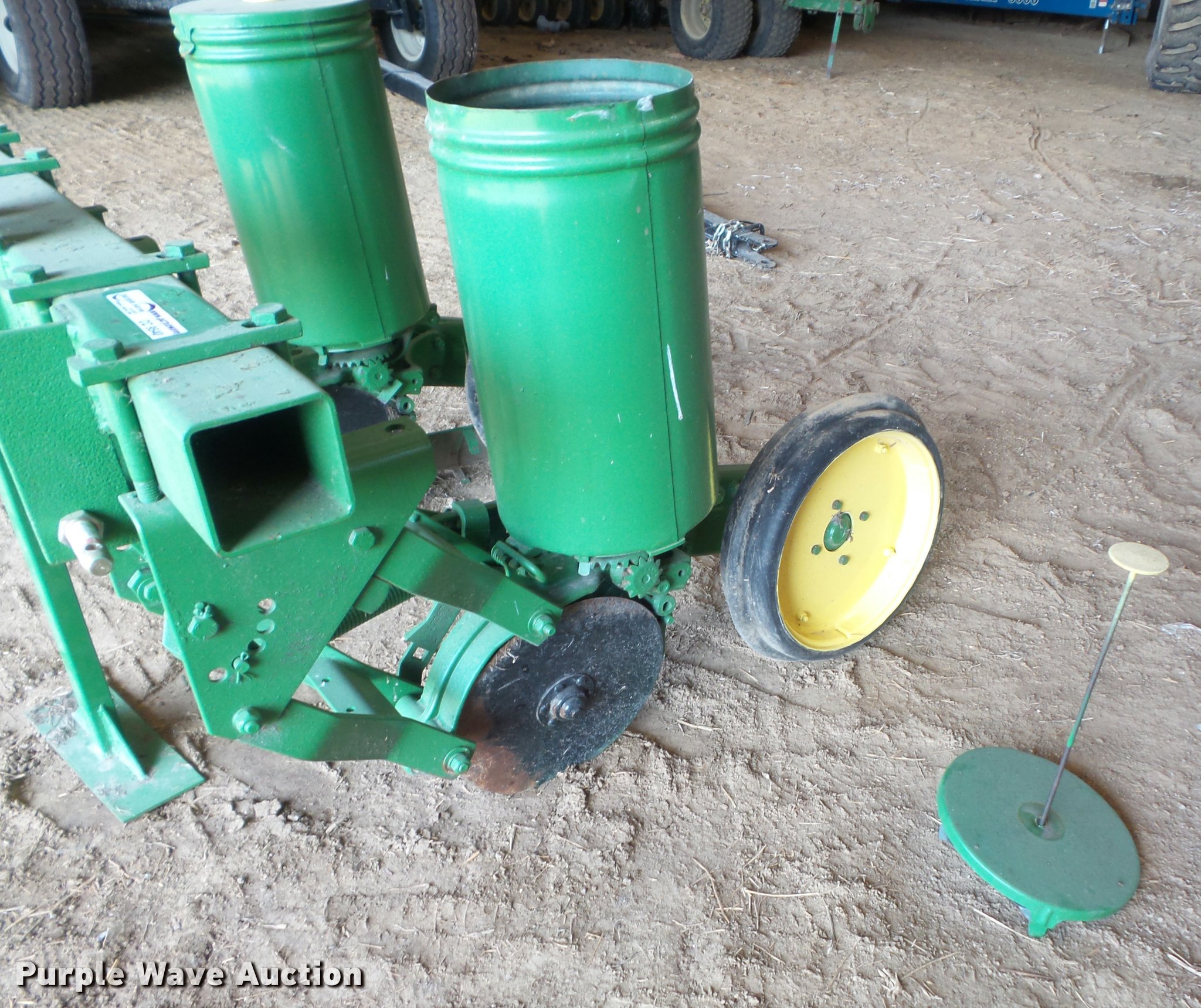 John Deere 71 planter. Two row units, 30" row spacing, Individual seed hoppers, Ground meter drive, Corn and soybean seed meters, Double disk openers, Single rubber closing system, Three point, Serial 070411. Matt Kash Farms. 621 N Hwy 37. Ina, IL 62846