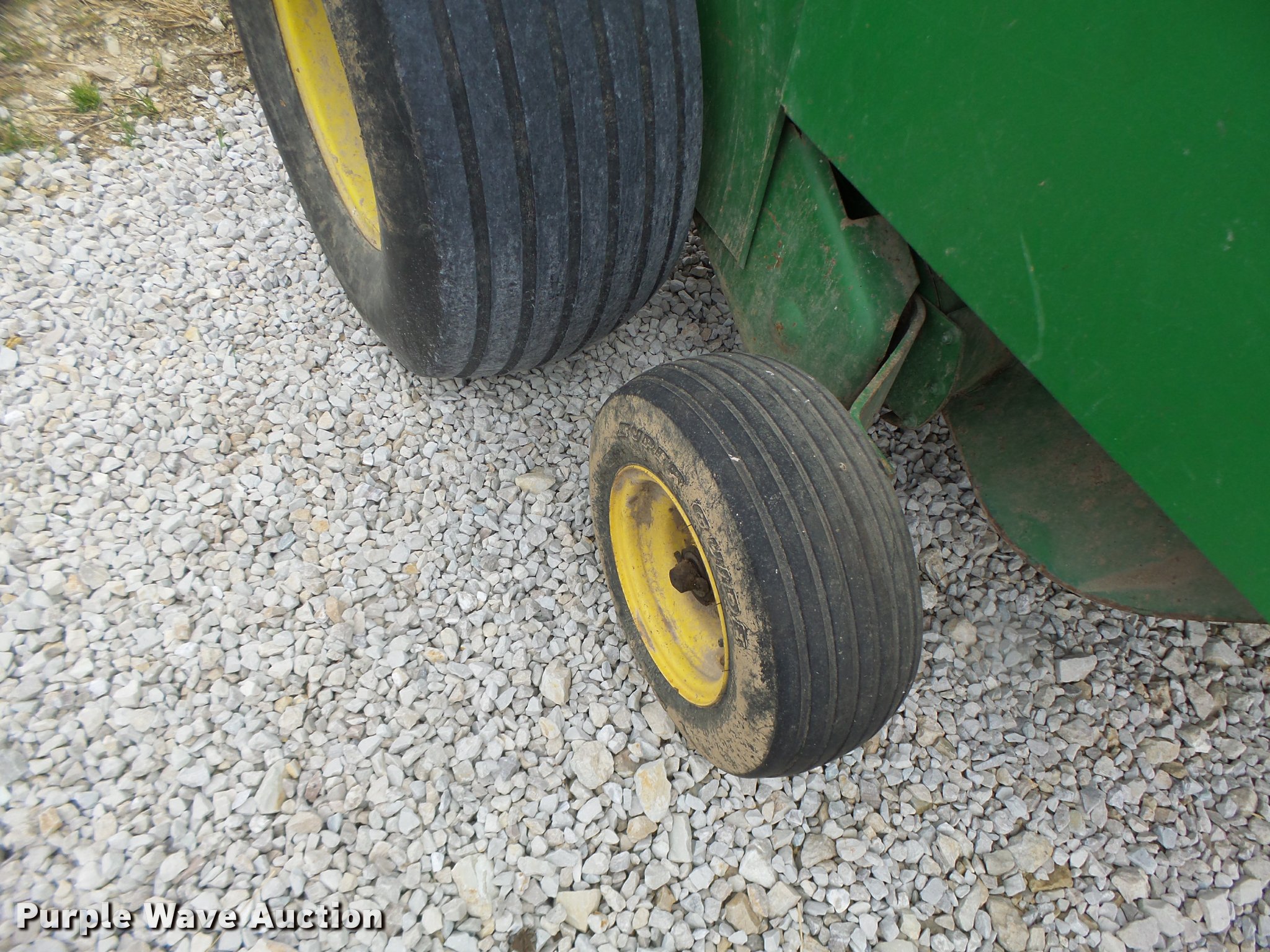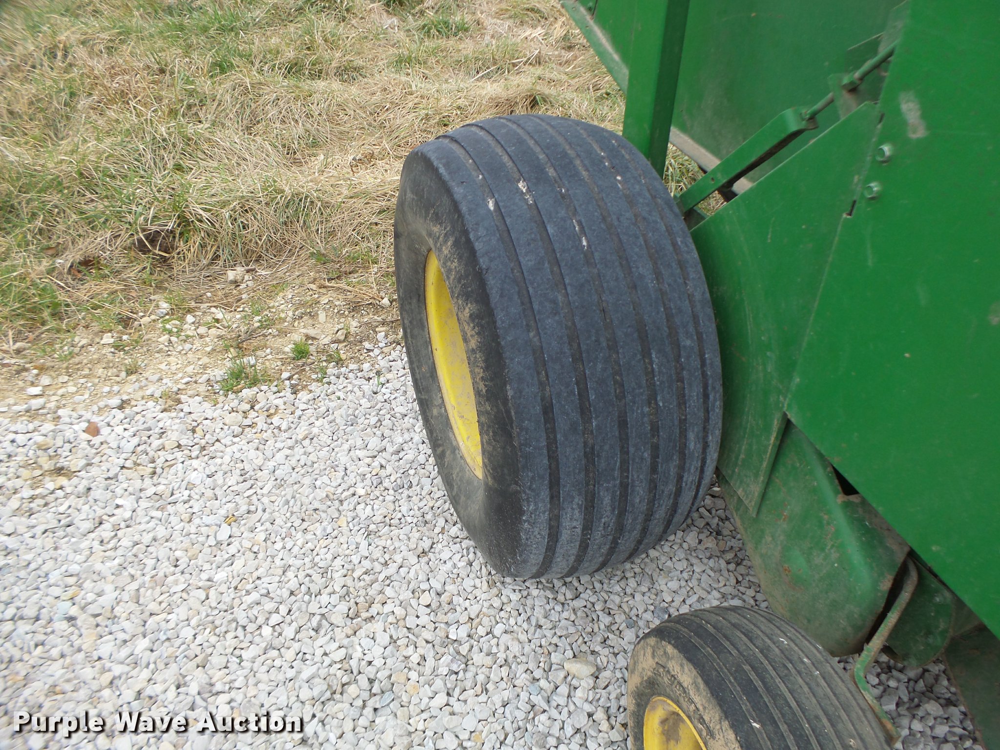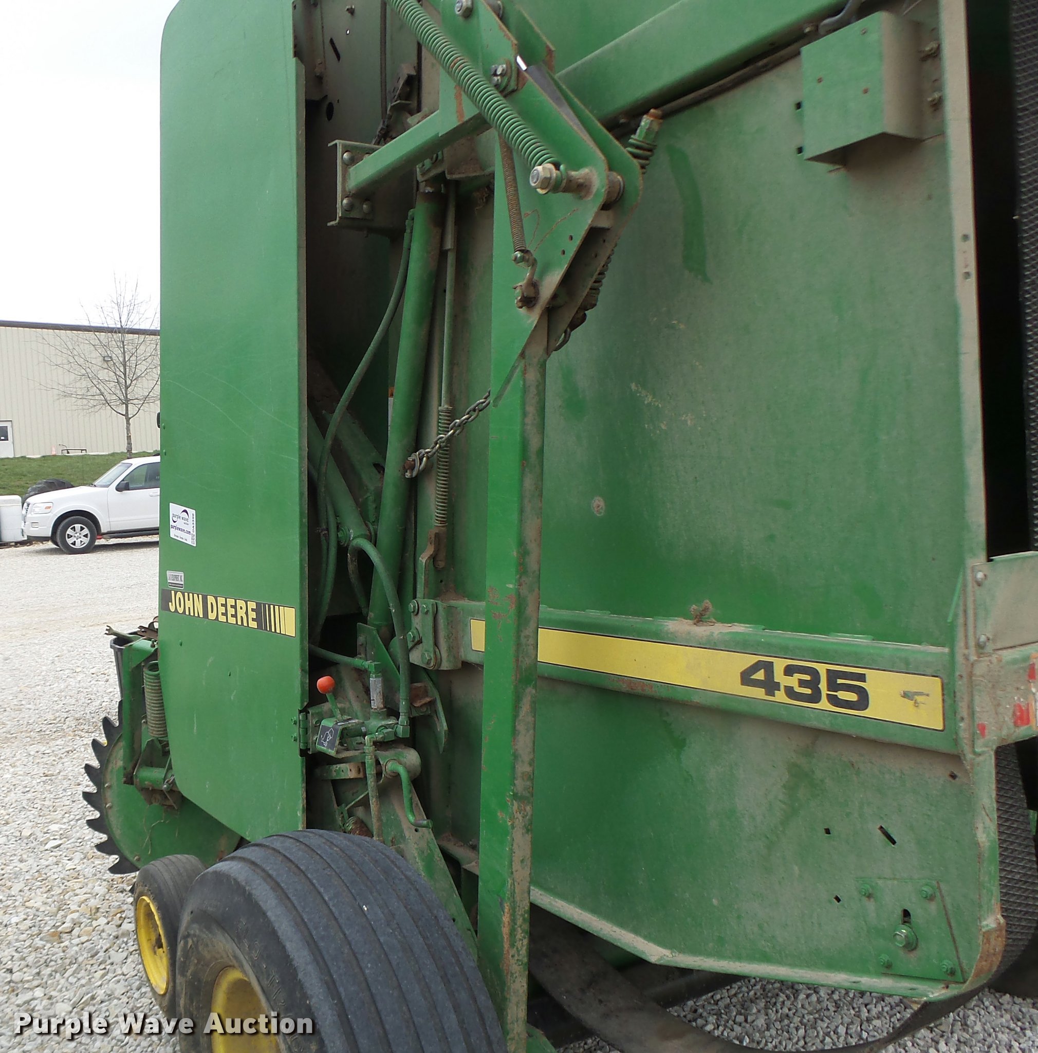 Purple Wave is selling a used Round Baler in Missouri. This item is a 1995 John Deere 435 round baler with the following: 4' x 6' bale capacity, Twine tie, Large 1000 PTO, Pin hitch, 31x13.50-15 NHS tires, Fire damage, Serial E00435X986050