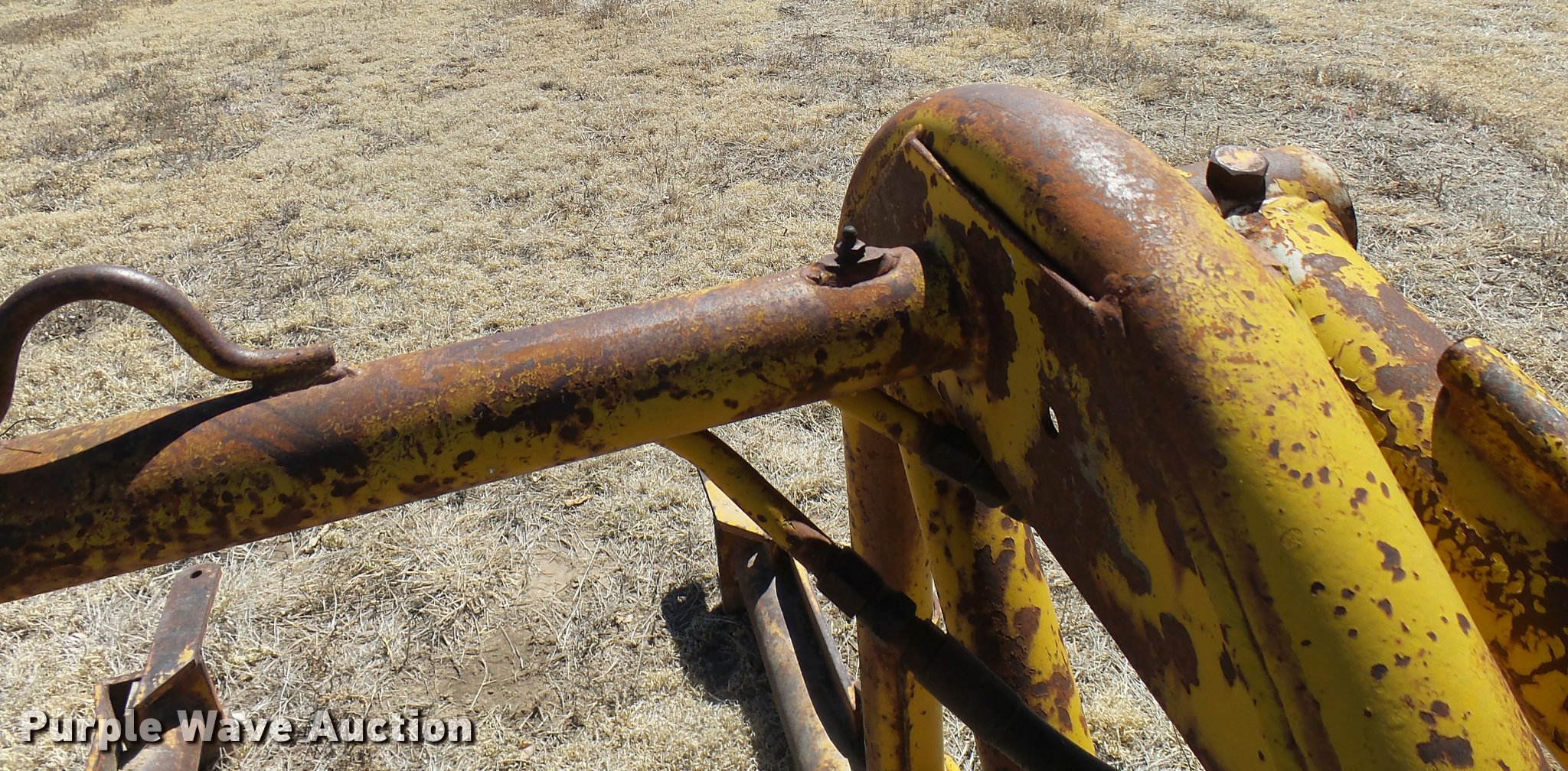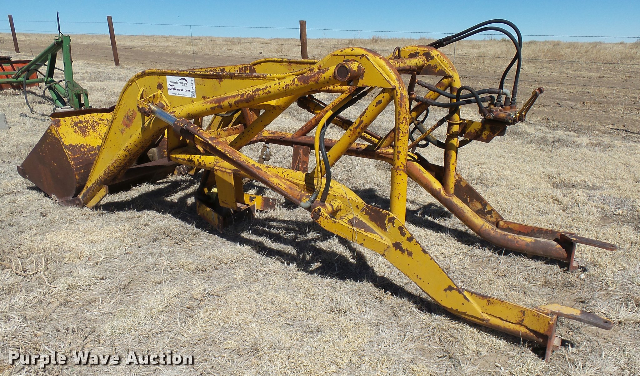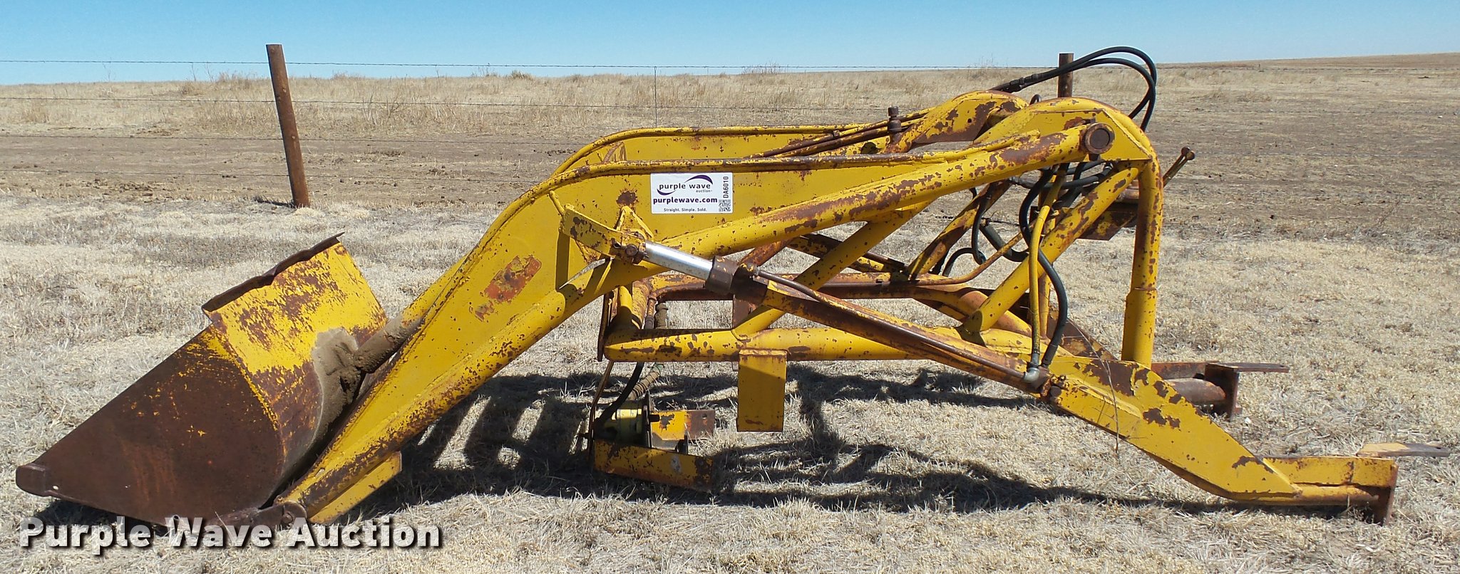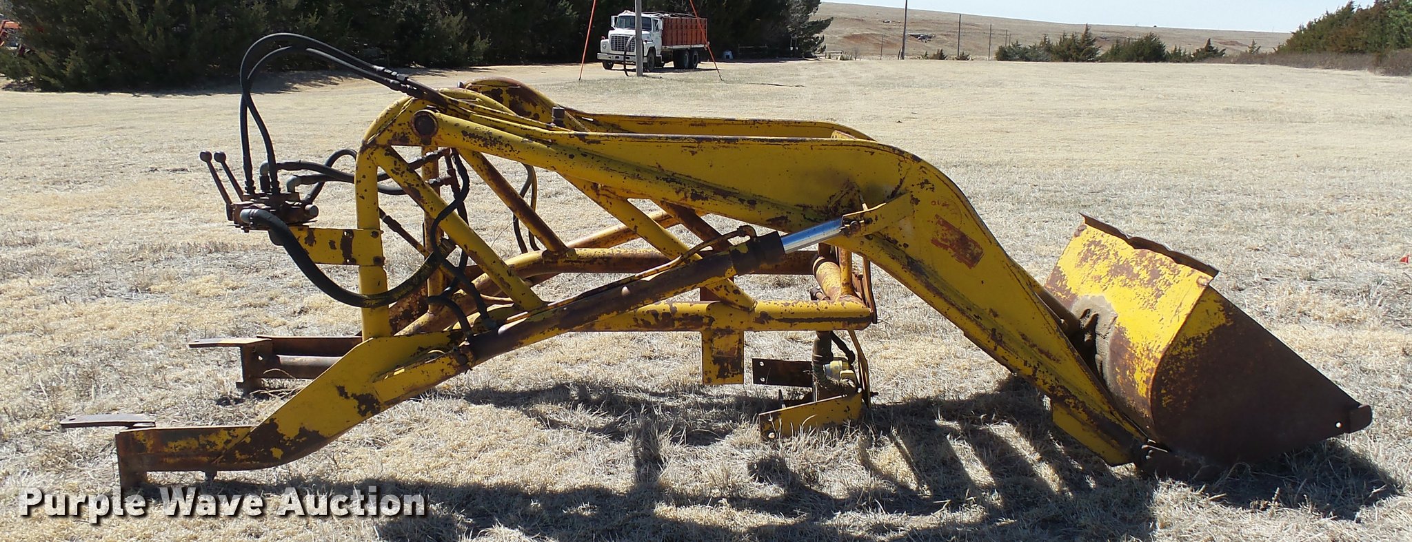 Purple Wave is selling a used Ag Tractor Loader or Attach. in Kansas. This item is a Wagner loader with the following: 39"W x 28"H bucket, 90"L x 28.5"W I.D. frame, Front and rear mounting points, Two lever controls, Engine driven hydraulic pump