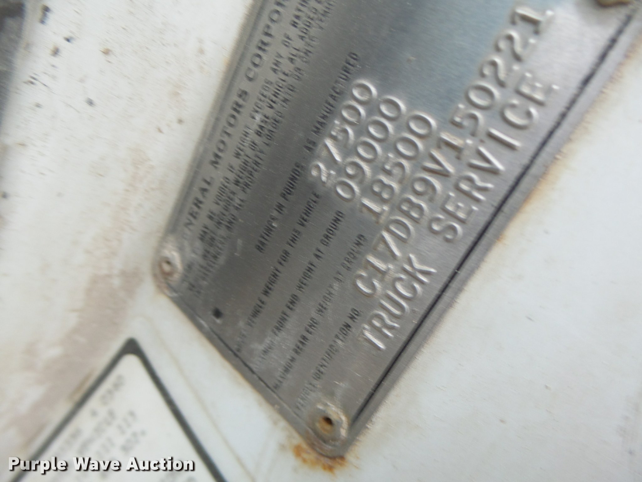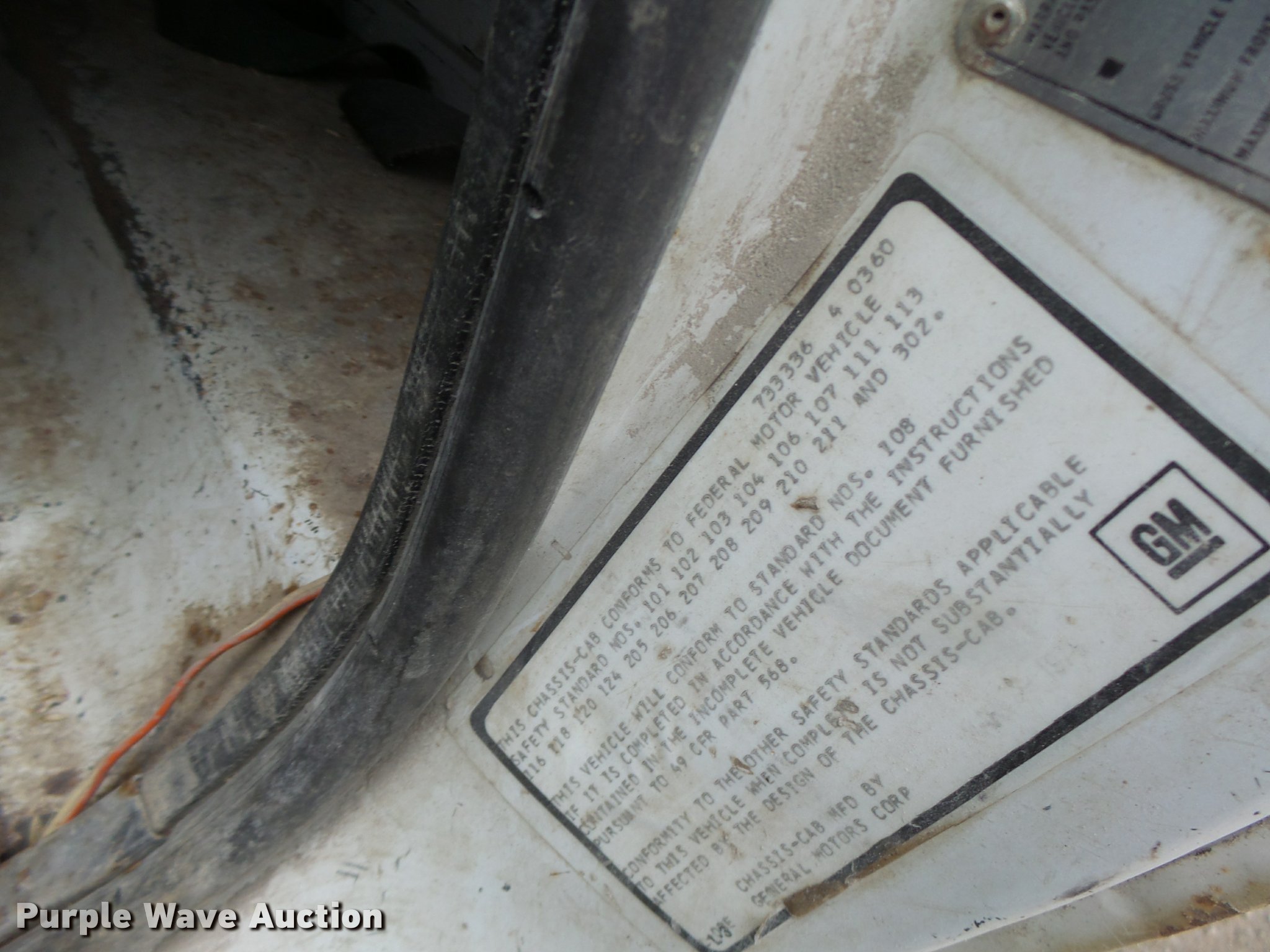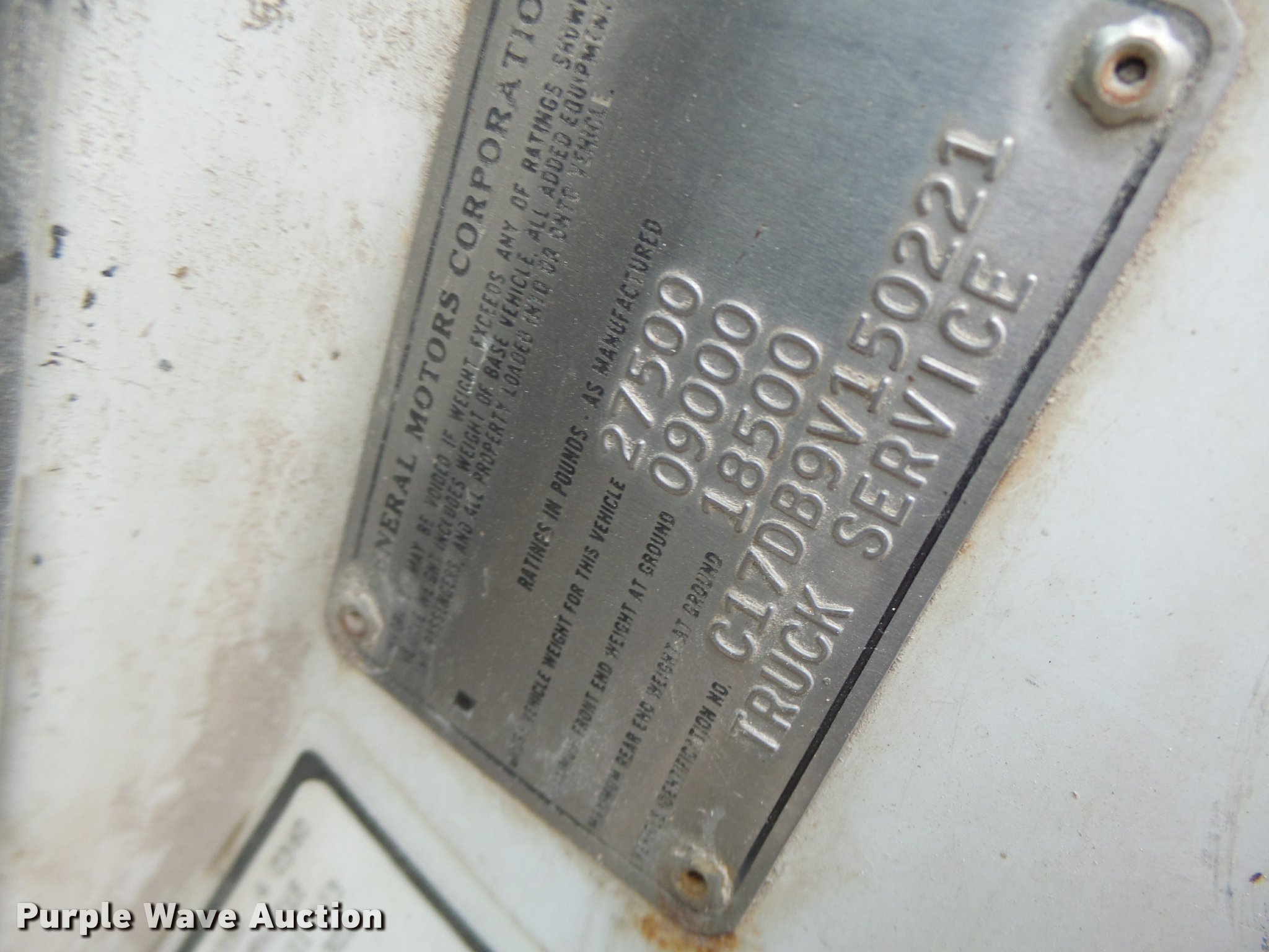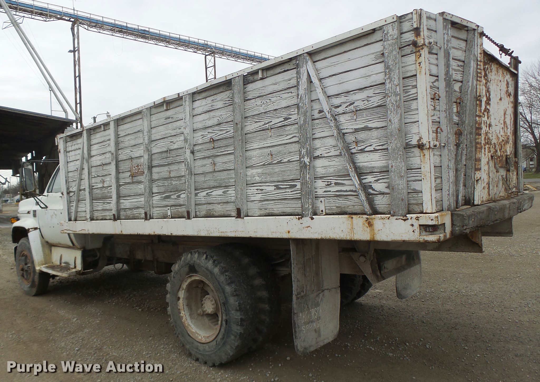 Purple Wave is selling a used Grain Truck in Missouri. This item is a 1979 Chevrolet C70 grain truck with the following: 19,595 miles on odometer, Eight cylinder gas engine, Five speed manual transmission, Single axle, Heat, Suspension seat, 15'L x 8'W grain bed, Single ram hoist, Single fuel tank, Spring suspension, Hydraulic brakes, 9.00-20 tires, Brakes inoperable