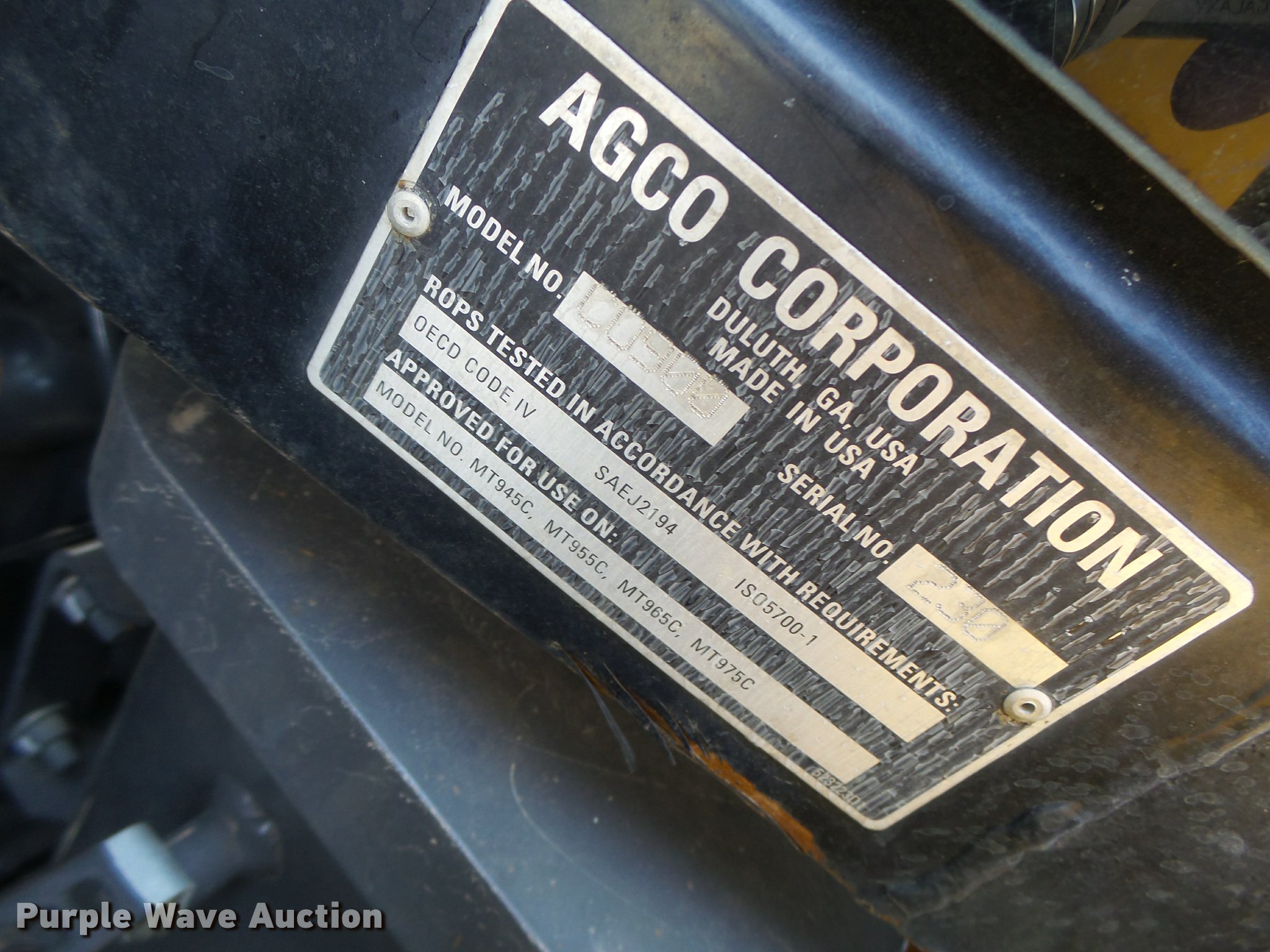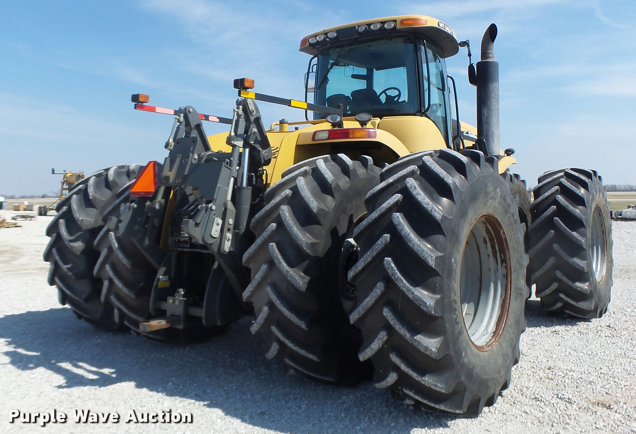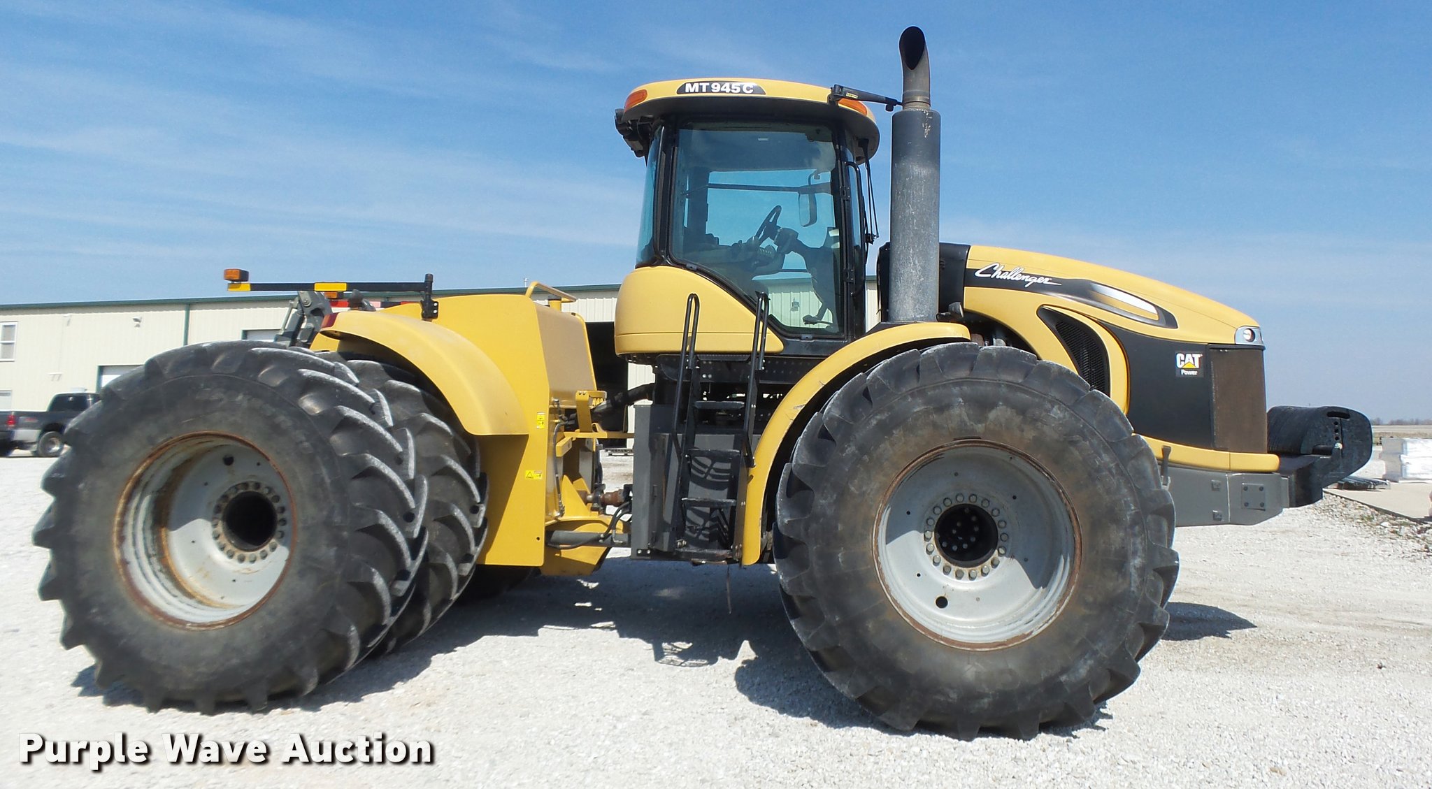 Purple Wave is selling a used Articulated 4-Wheel Drive Tractor in Missouri. This item is a 2011 Challenger MT945C 4WD tractor with the following: 2,358 hours on meter, Caterpillar C15 Acert six cylinder turbo diesel engine, Serial JKG00572, 440 HP, Powershift transmission, 16F-4R gears, AC and heat, Tilt steering wheel, AM/FM, Suspension seat, Instructor's seat, Shade, Visor, TMC color display ISOBUS monitor, Differential lock, Three point, Quick attach, Seven pin outlet, ISOBUS electrical outlet, (4) rear hydraulic remote sets, (20) suitcase weights, 650/85R38 dual tires, Serial AGCC0945LNWRG1015