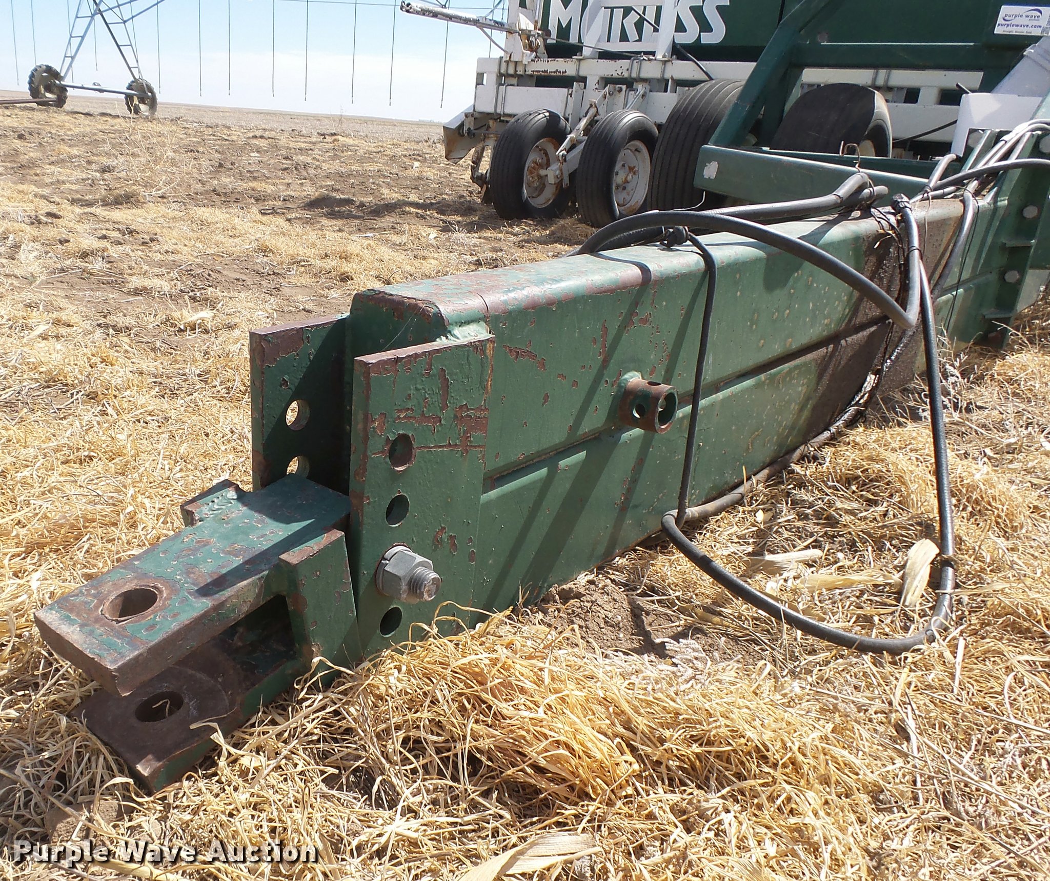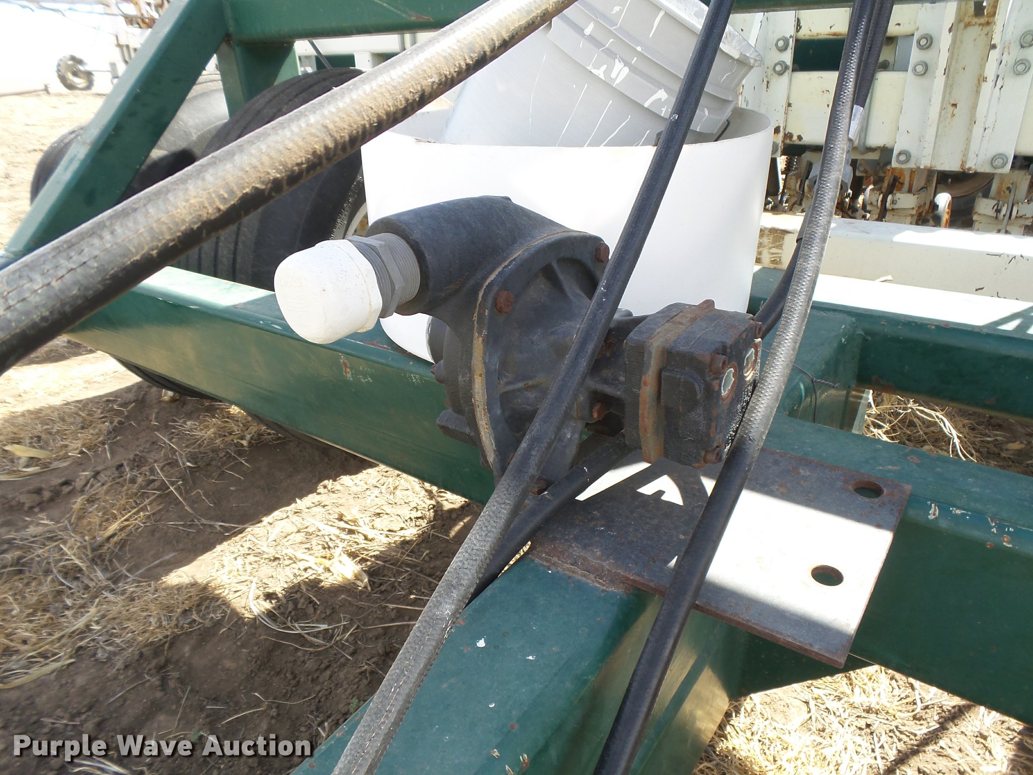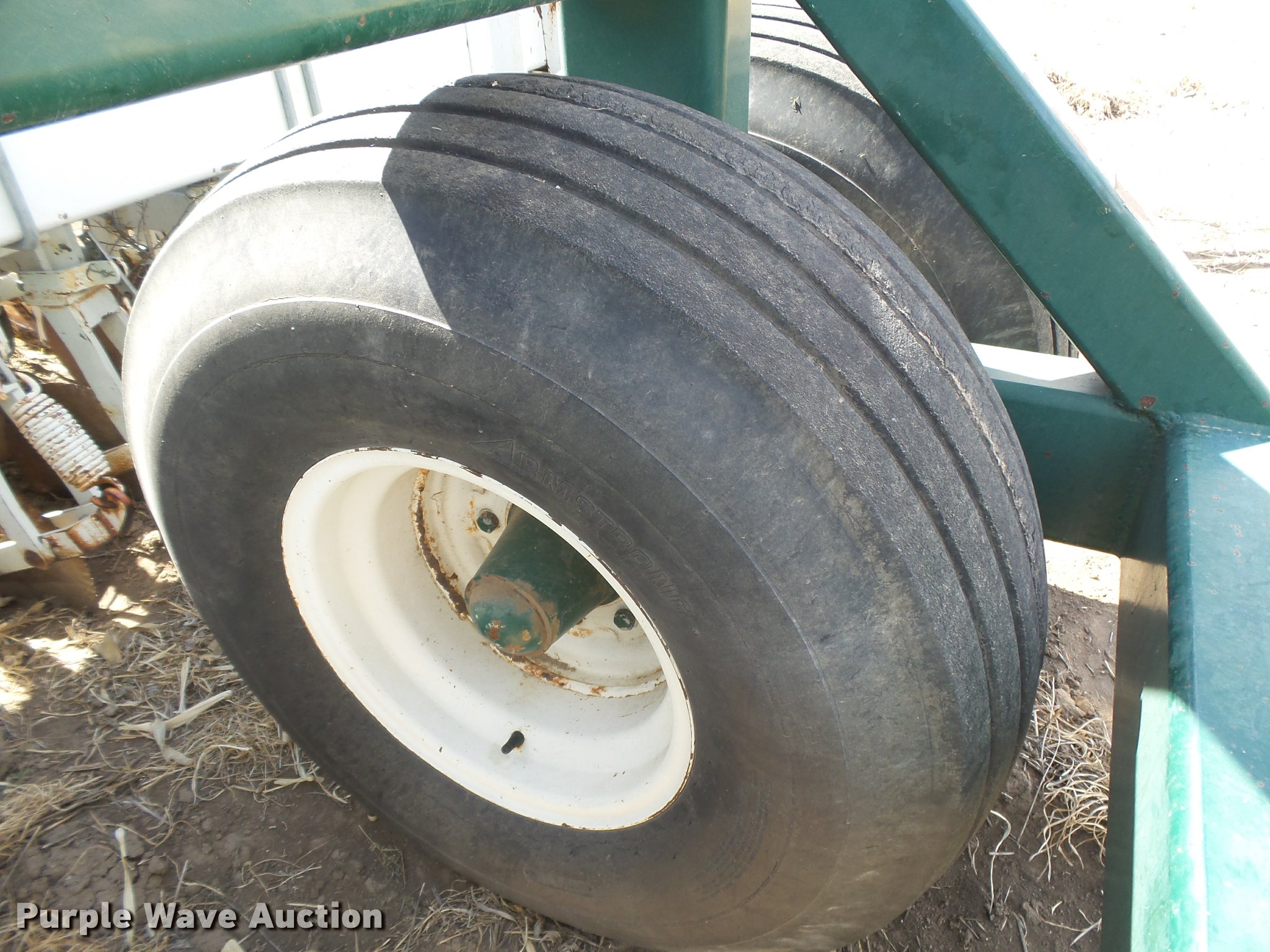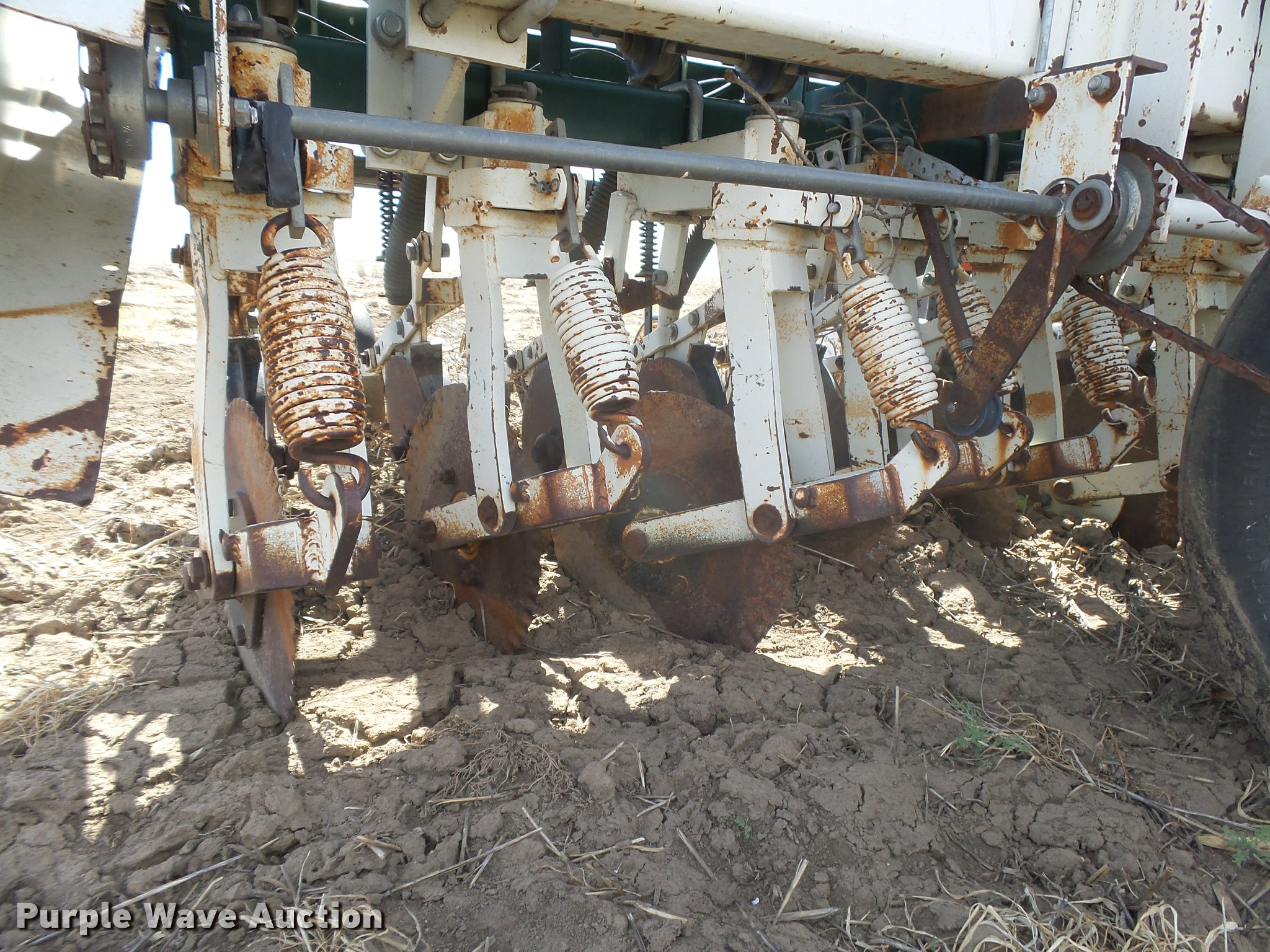 Purple Wave is selling a used Grain Drill or Seeder in Kansas. This item is a Marliss grain drill with the following: 26'W, 32 row units, 10" row spacing, Marker arms, Individual seed hoppers, HD spring down pressure, Double disk openers, Single rubber closing system, Hypro hydraulic driven pump, (4) 14L-16.1 transport tires, (4) 9.5L-15 drive/outside tires, Serial 3154