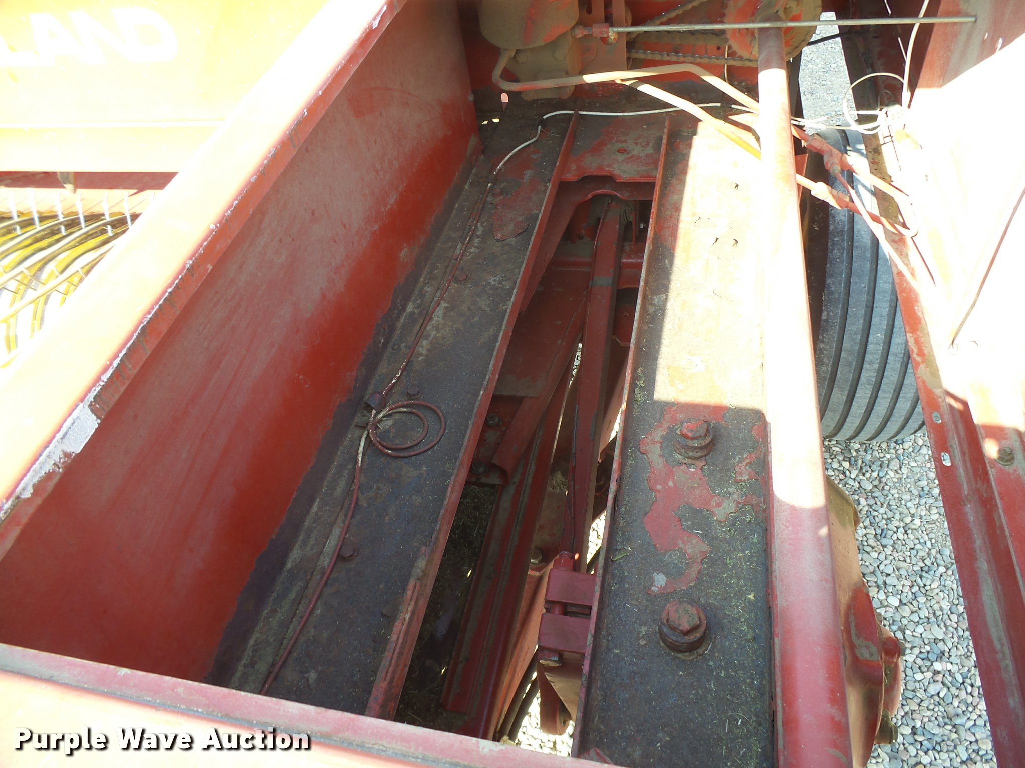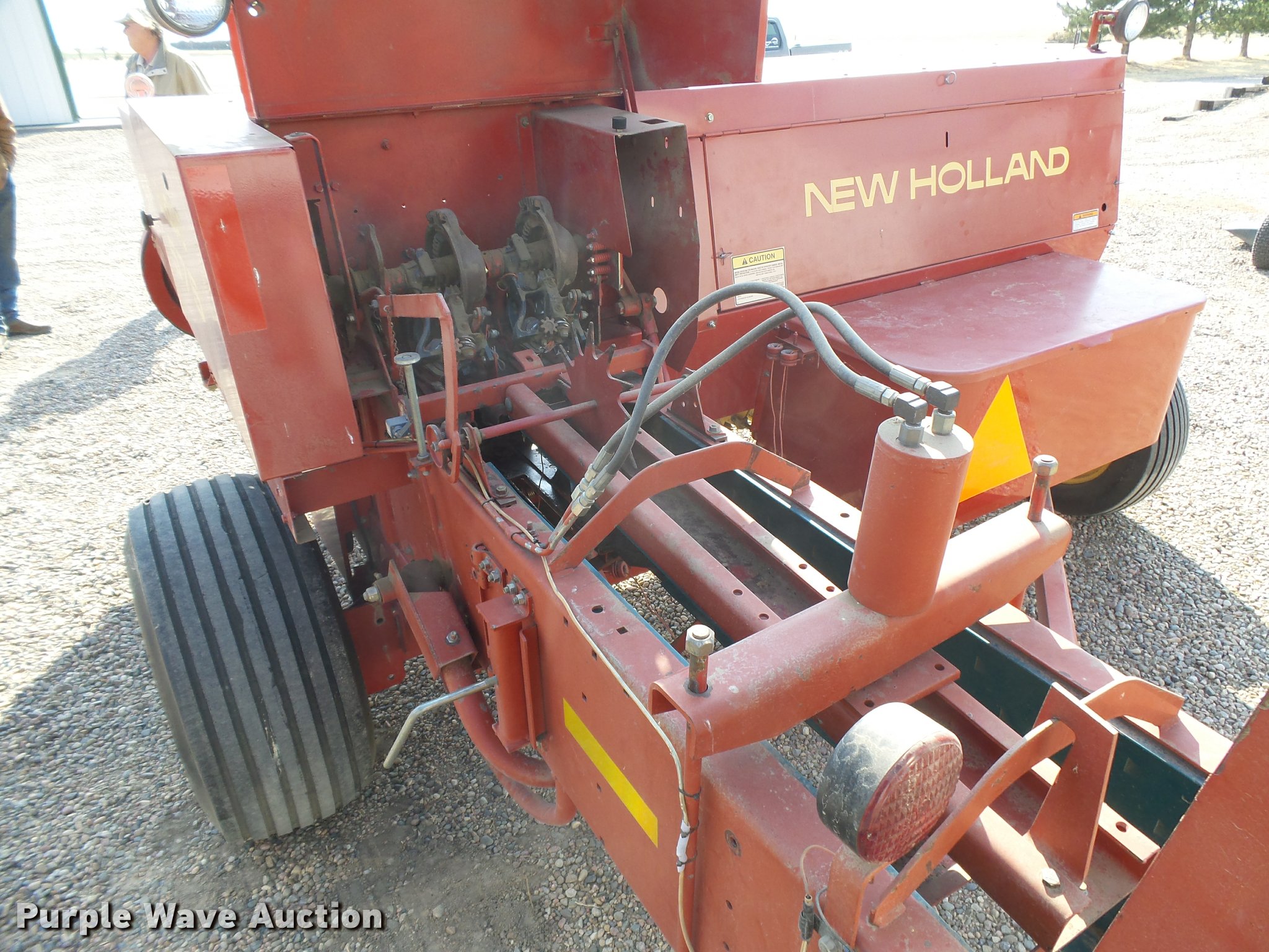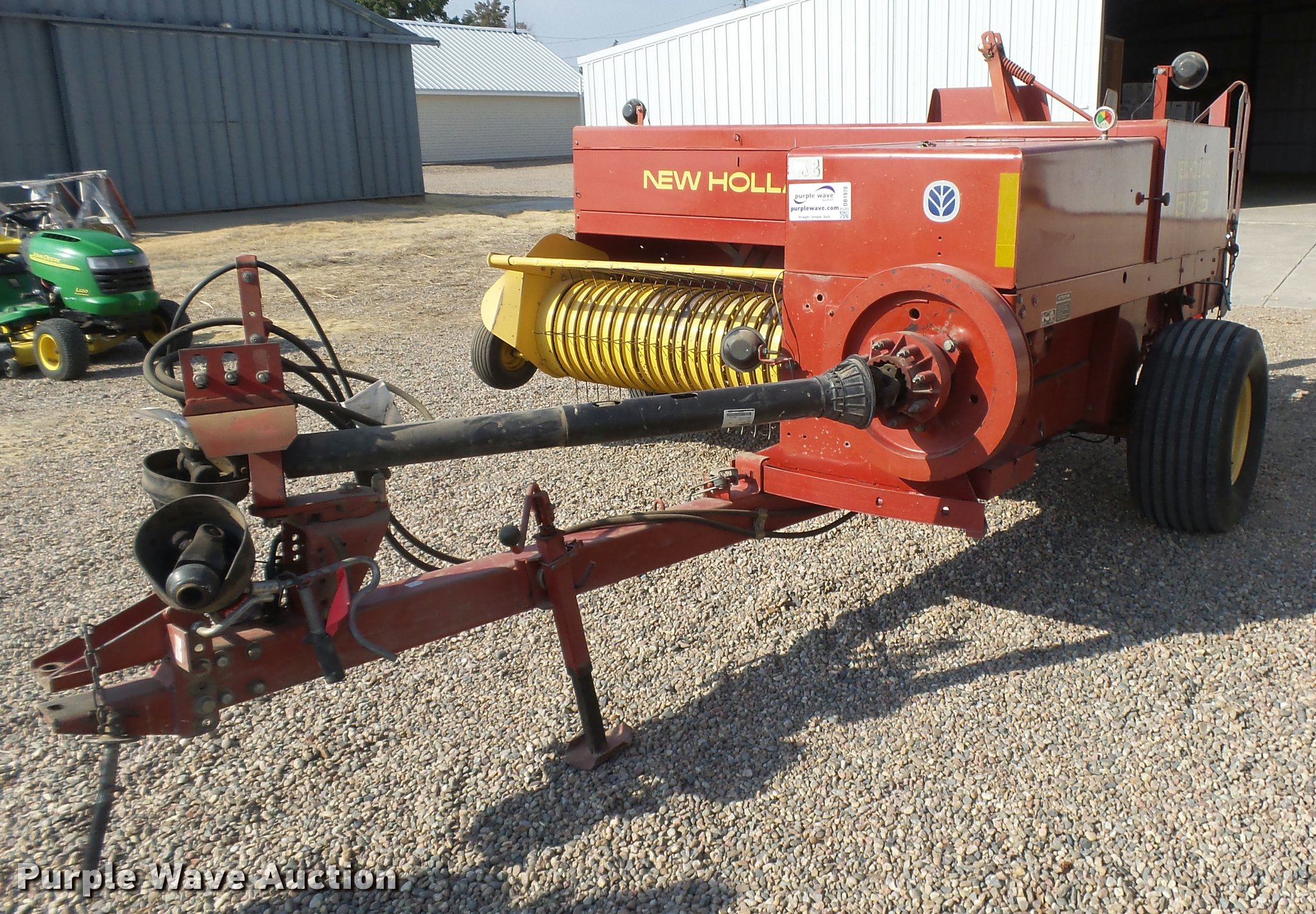 Purple Wave is selling a used Square Baler in Kansas. This item is a New Holland 575 square baler with the following: 746 bales on counter, 14" x 18" bale capacity, 75"W pickup, 15x6.00-6 gauge wheels, (2) knotters, Twine tie, Bale roller chute, Work lights, 540 PTO, Pin hitch, 27x9.50-15 tires, 31x13.50-15 tires, Stored inside, Serial 987101