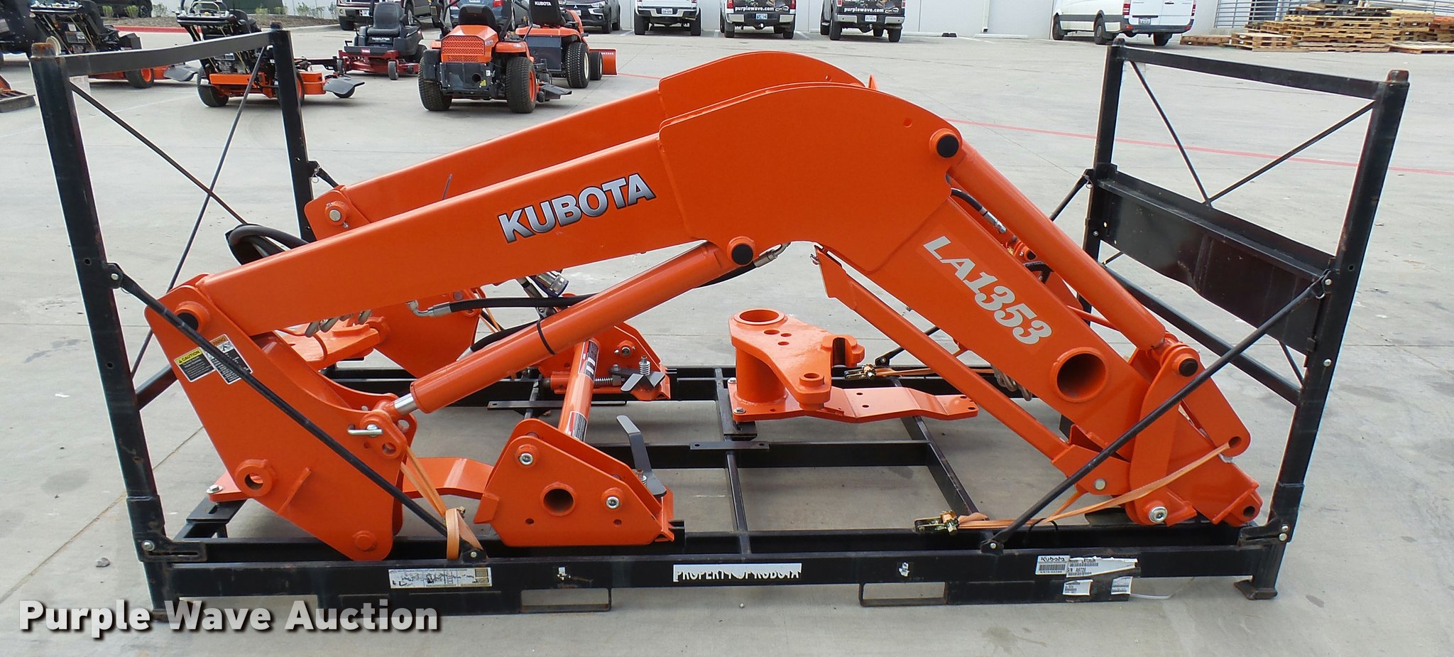 Purple Wave is selling a used Ag Tractor Loader or Attach. in Texas. This item is a Kubota LA1353 front end loader with the following: Two pin level quick attach, Pallet crate not included, Fits Kubota M8540 and M9540 tractors, Serial A9720