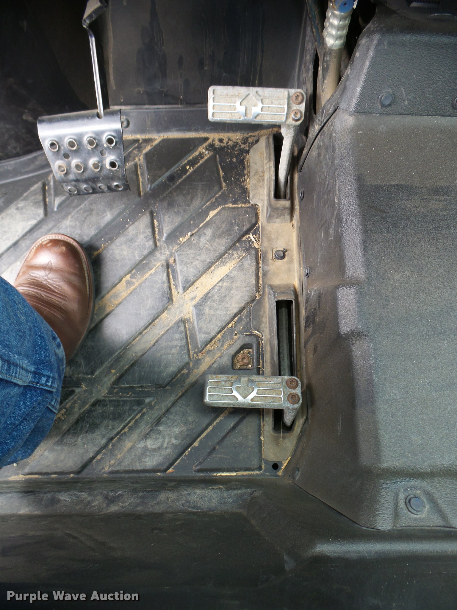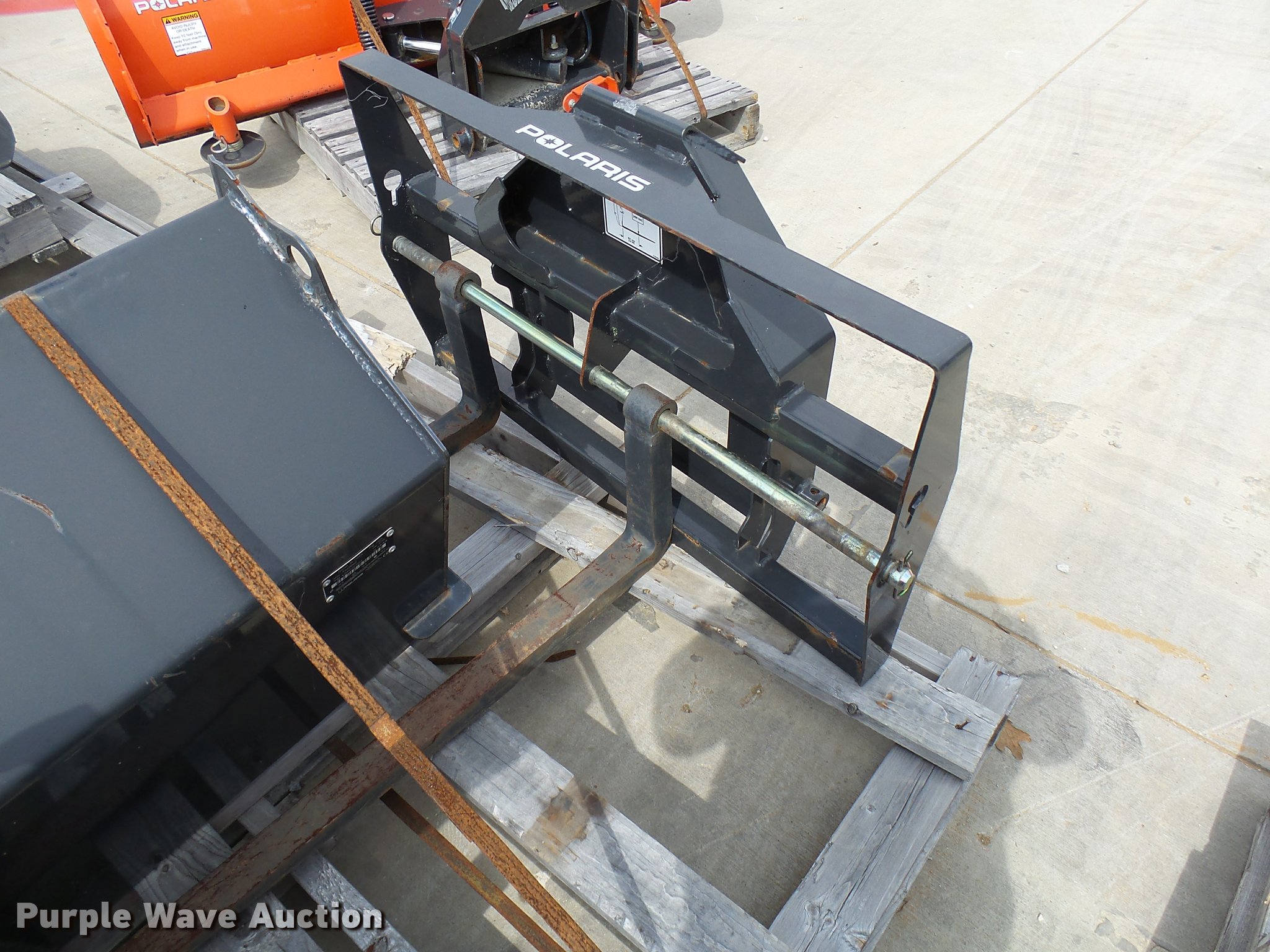 Purple Wave is selling a used Utility Vehicle in Texas. This item is a 2013 Polaris Brutus 900 utility vehicle with the following: 44 miles on odometer, 217 hours on meter, Yanmar 3TNM72-APB three cylinder diesel engine, 24 HP, Serial 025327, Hydrostatic transmission, 2F-2R gears, Four wheel drive, Enclosed cab, AC and heat, Windshield, Work lights, Wiper, Two person capacity, Electric PTO, Hydraulic dump bed, 5' x 4', ProTach attachment system, 2013 Polaris angle power broom, Model FMAB70, 72"W, Serial B1RR00182, Universal bucket, 62"W, Serial 7224662, 2013 snow blower, Model FMSB62, 62"W, Hydraulic rotating chute, Serial B1RS00139, Polaris pallet forks, 36" adjustable forks, 2013 Polaris mower, Model FMM66, 66" cut, 1000 PTO, Serial B156006159, 2013 Polaris snow blade, Model FMSB69, 69"W, Hydraulic angle, Serial B1PV00138,, Carlisle 25x9-12 front tires, Carlisle 25x11-12 rear tires