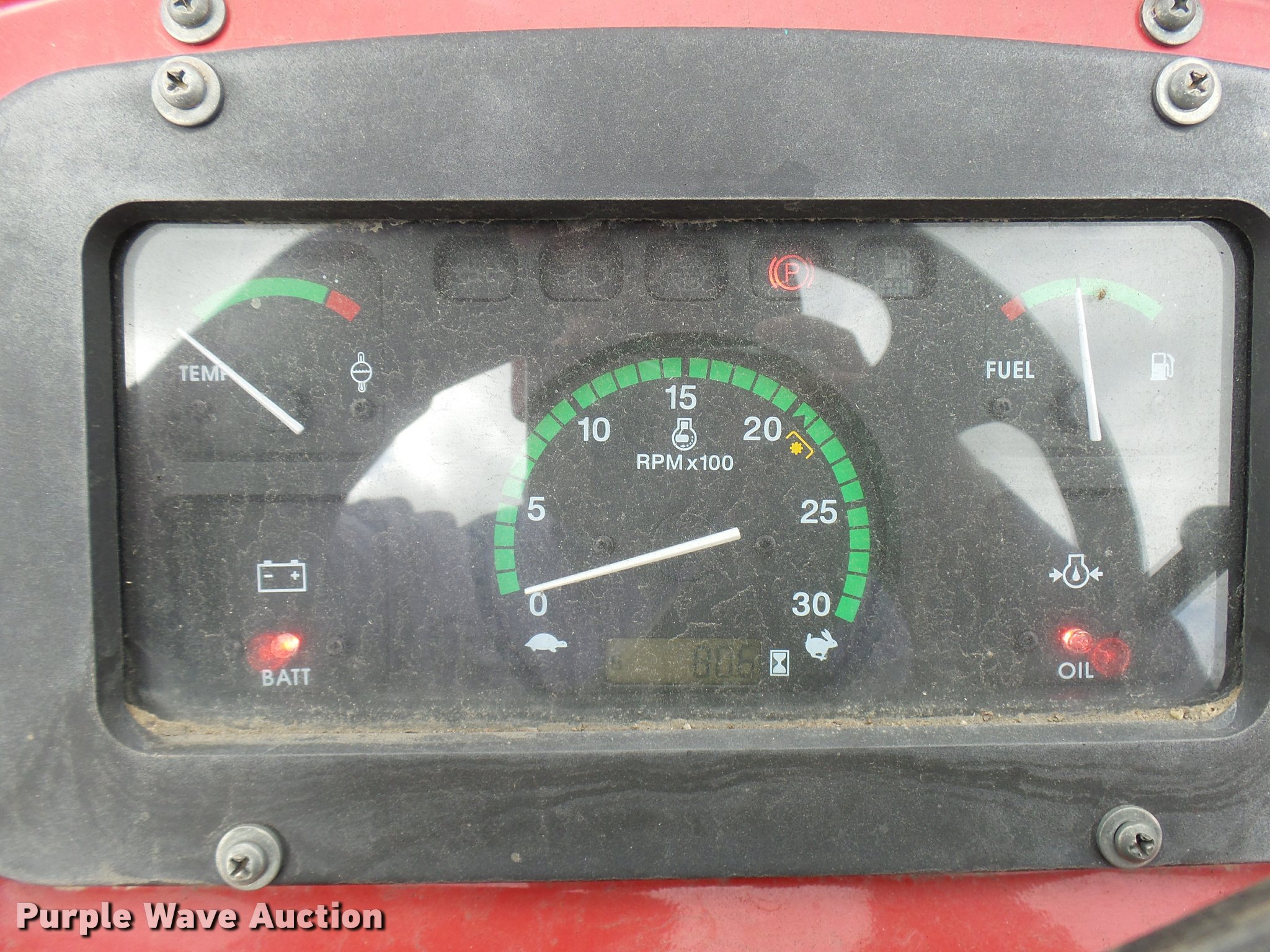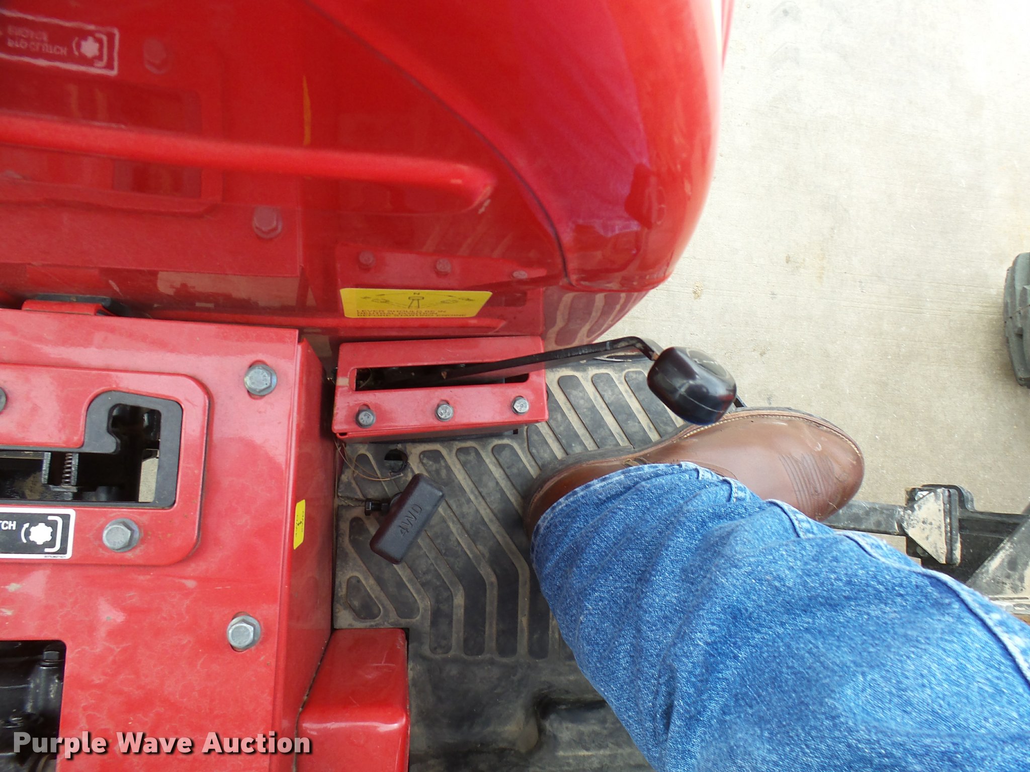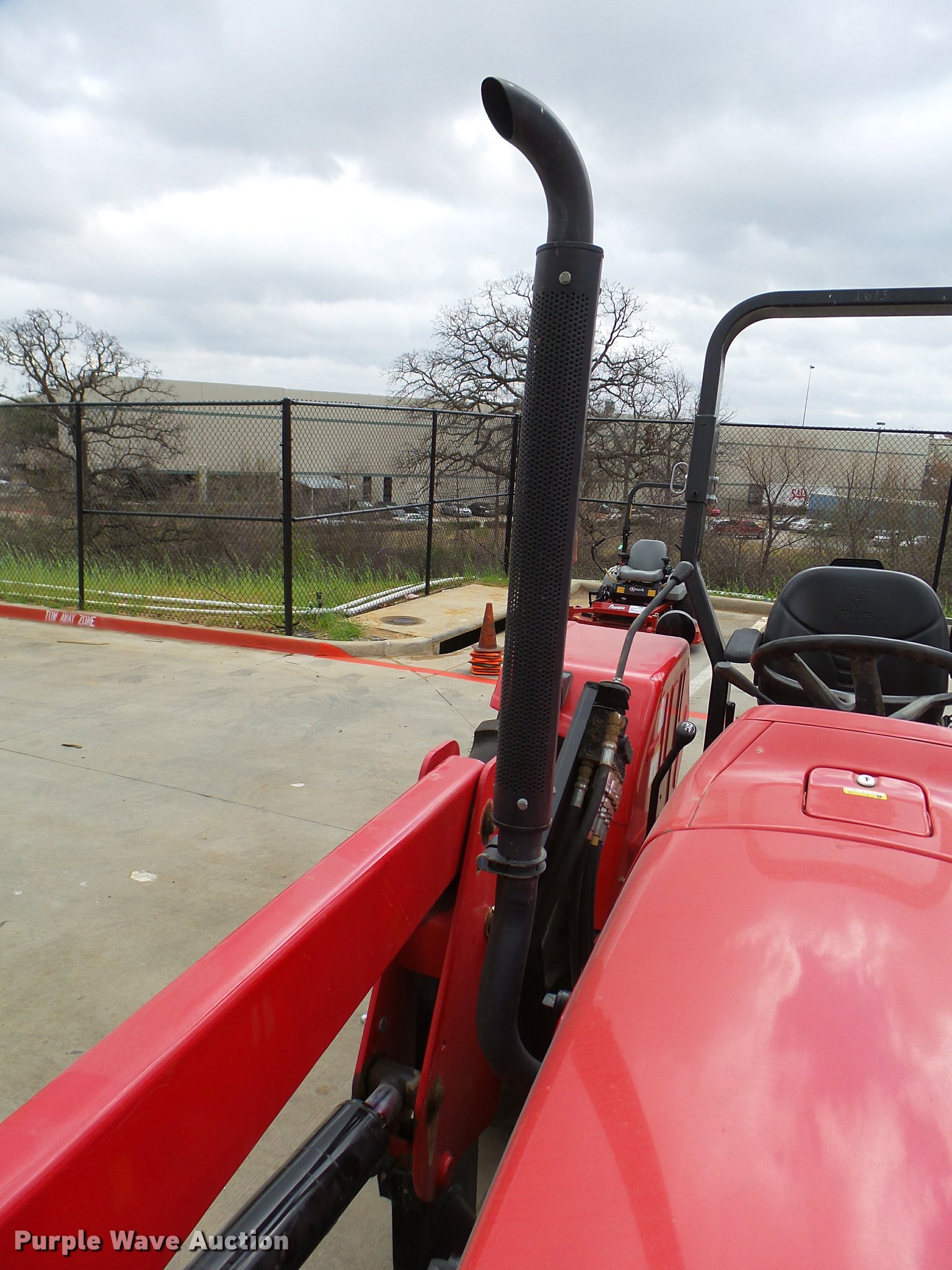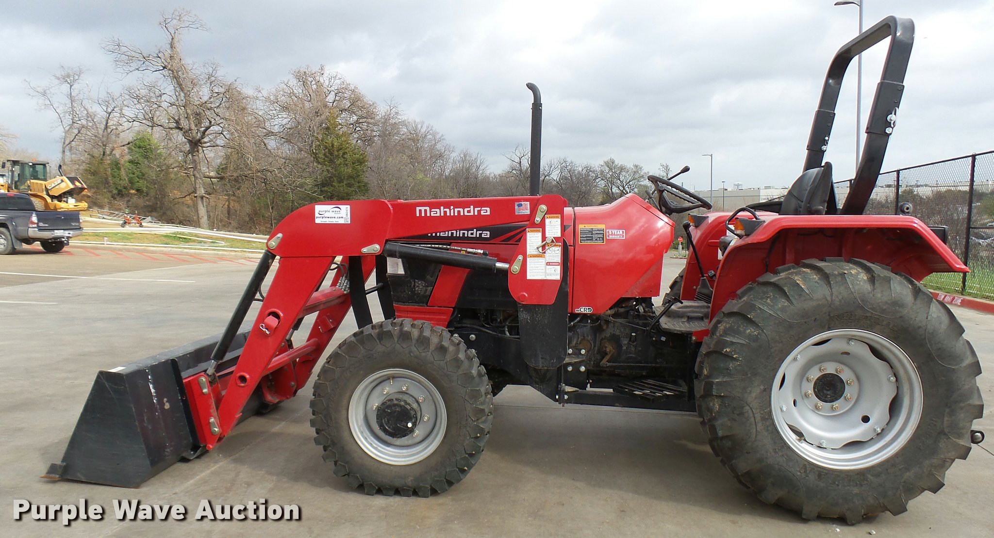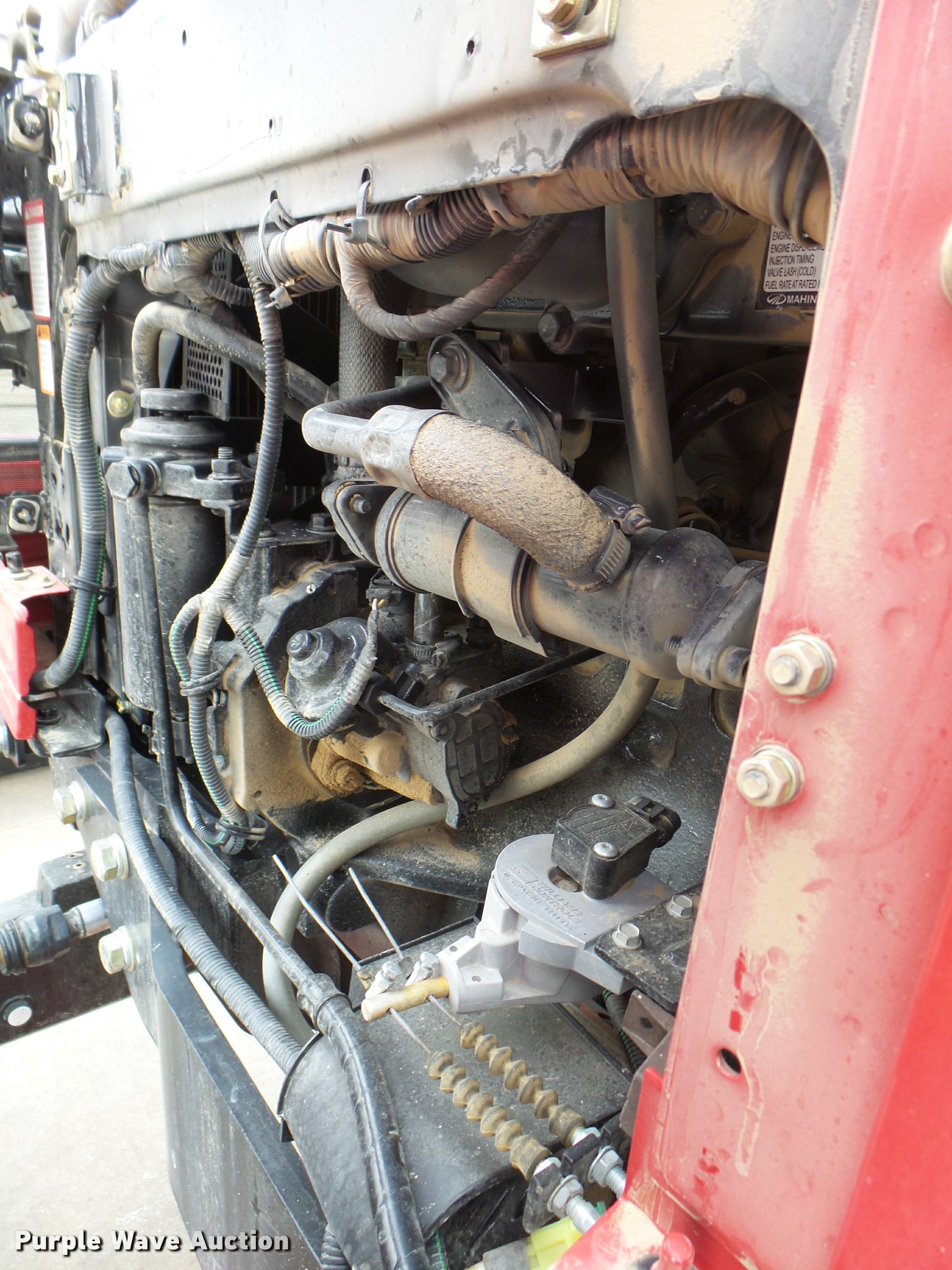 Purple Wave is selling a used Tractor in Texas. This item is a Mahindra 5555 MFWD tractor with the following: 81 hours on meter, 2.7L three cylinder turbo diesel engine, Synchro transmission, 8F-8R gears, Left-hand reverser, Four wheel drive, Suspension seat, Mahindra 5565-4L loader, 78"W bucket, Quick attach, Joystick controls, Serial 15248618, Three point, Top link, 540 PTO, Rear hydraulic remote, 12.5-80-18 front tires, 16.9-24 rear tires, Serial S30TY1613