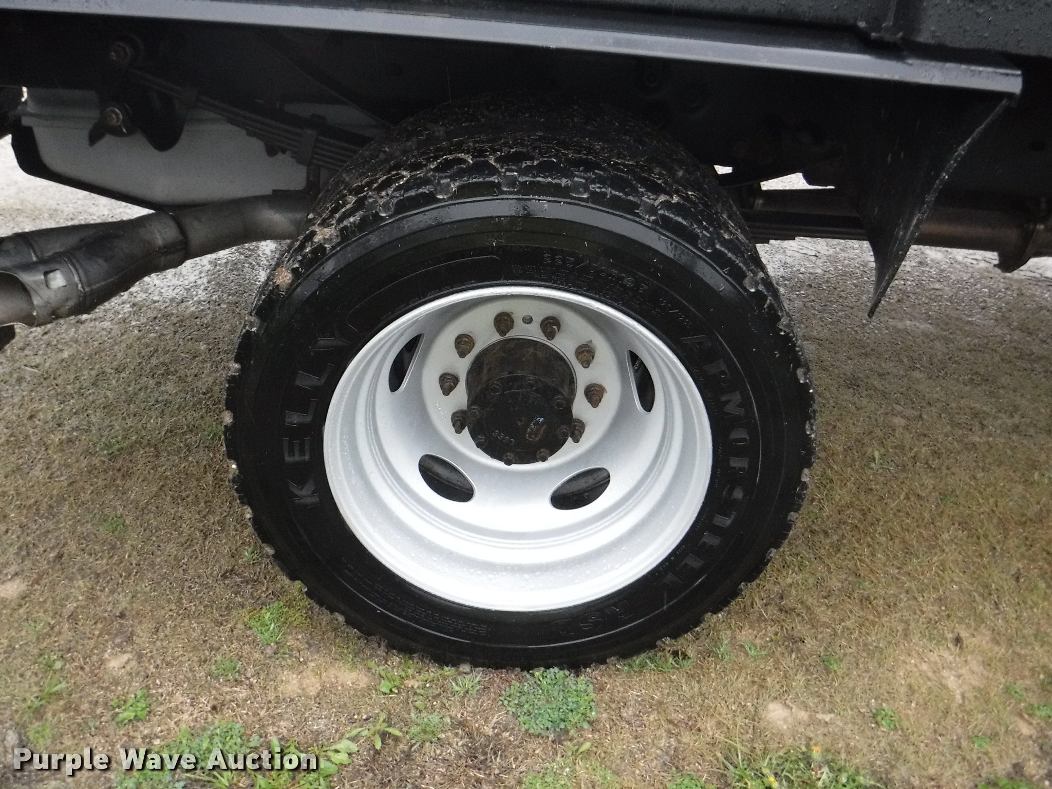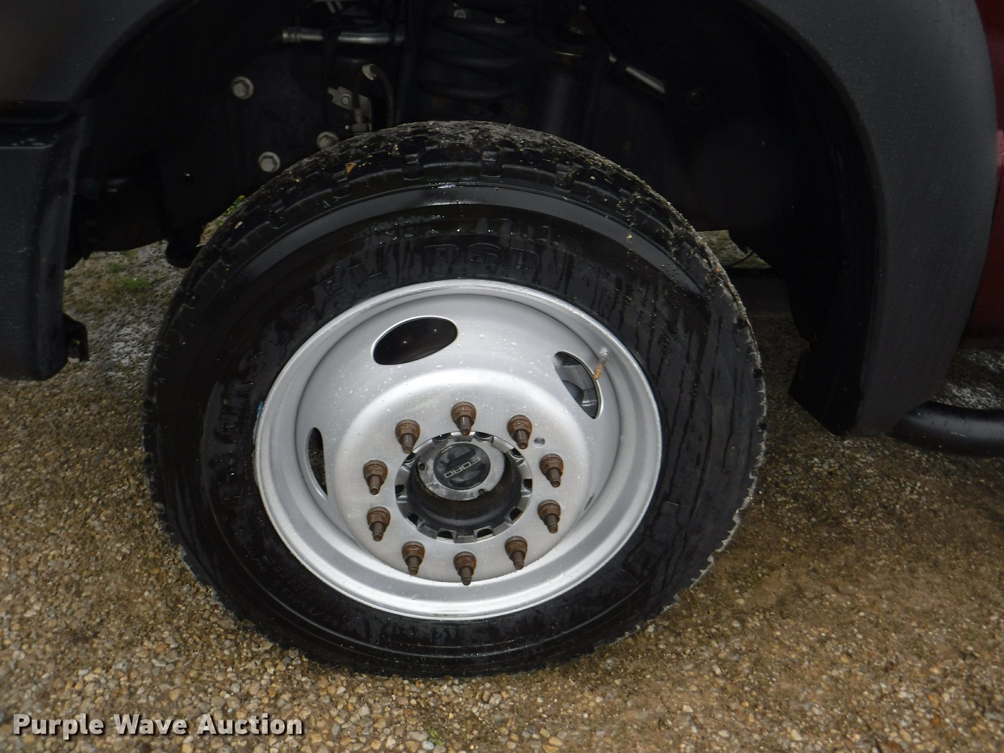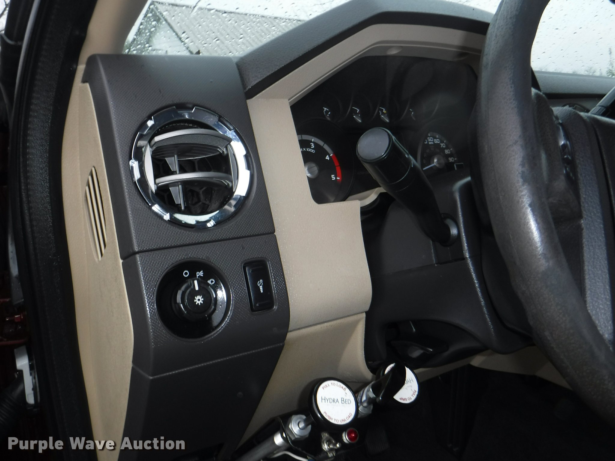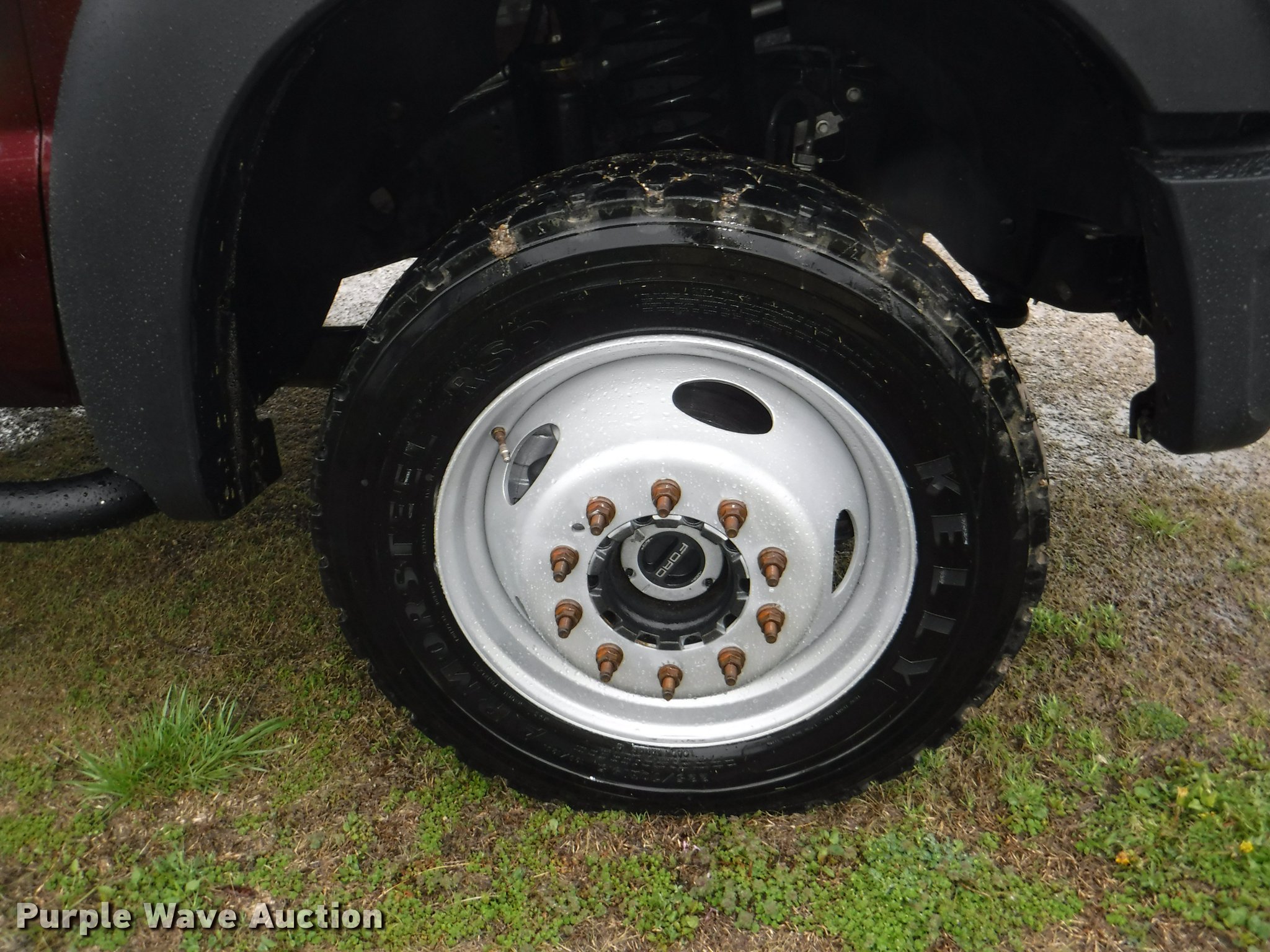 Purple Wave is selling a used Flat Bed Truck in Kansas. This item is a 2013 Ford F450 Super Duty XLT flatbed pickup truck with the following: 63,827 miles on odometer, 6.7L V8 OHV 16V turbo diesel engine, Automatic transmission, Four wheel drive, AC and heat, Tilt, Cruise, AM/FM/CD, Power windows, locks, and mirrors, Heated mirrors, Cloth interior, Block heater, Front tow hooks, Running boards, Grill guard, Auxiliary controls, Hydrabed flatbed, 130"L x 7'W, Cake feeder, Bale roller, Receiver hitch, Trailer wiring, 225/70R19.5 tires