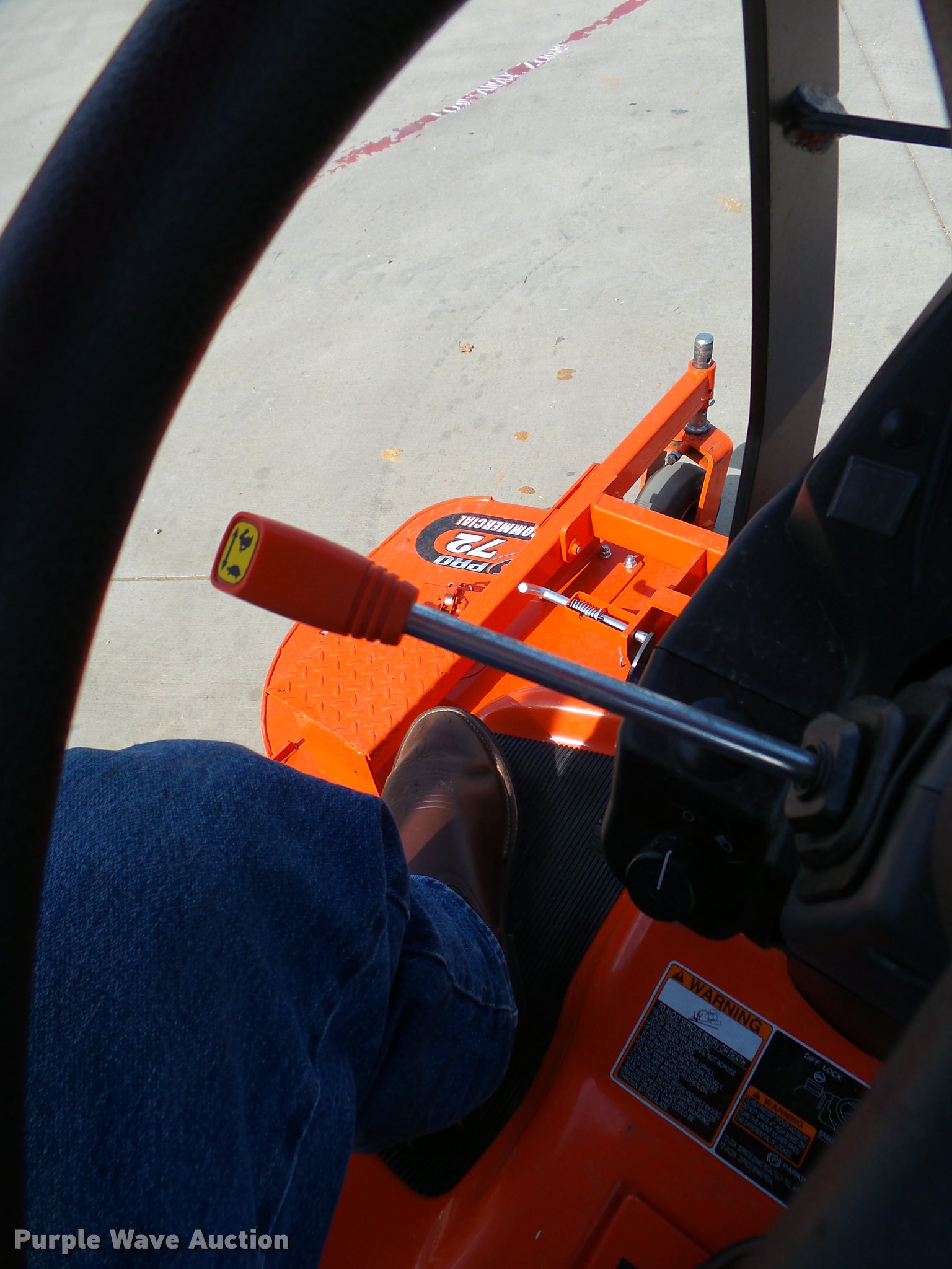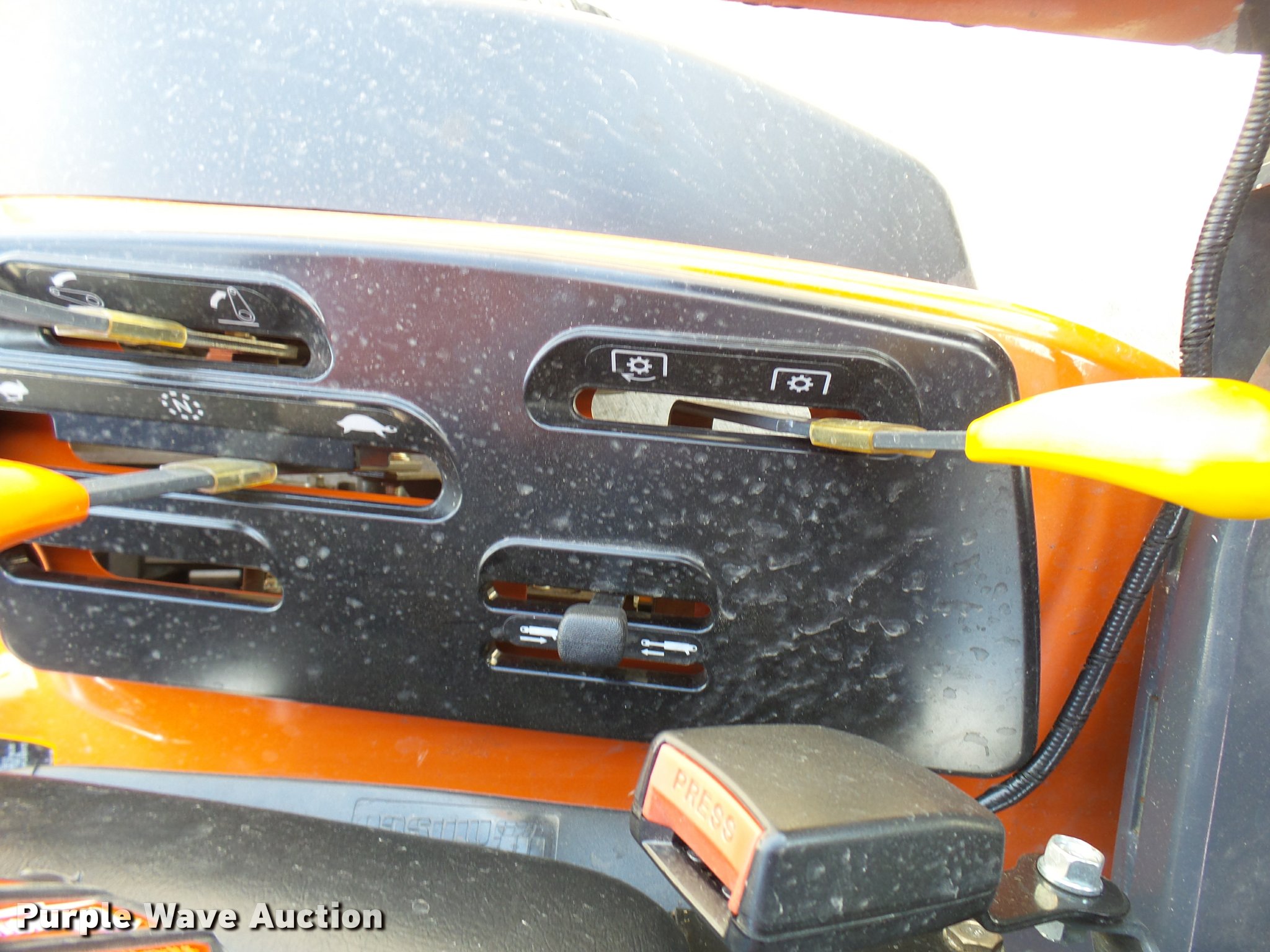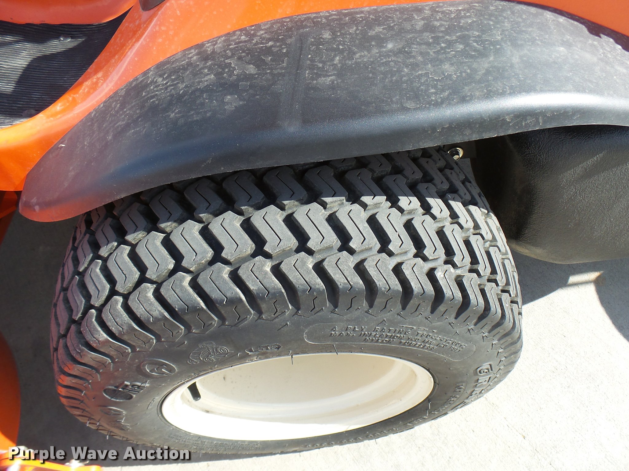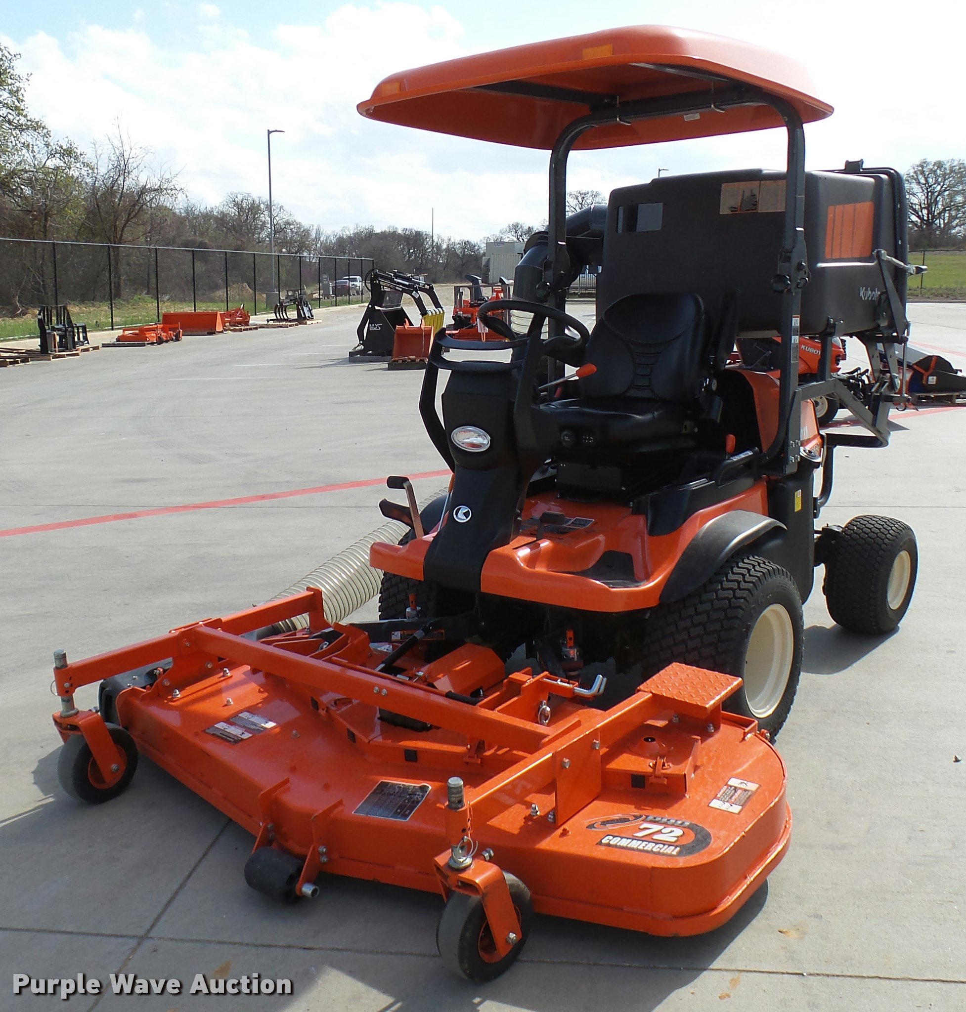 Purple Wave is selling a used Lawn Mower in Texas. This item is a Kubota F2690 lawn mower with the following: 68 hours on meter, 72" cut, Kubota three cylinder diesel engine, Hydrostatic transmission, All wheel drive, Grass catcher-vacuum powered, Mower deck, Model RCK72P-F39, Serial 11409, 24x12.00-12NHS front tires, 18x9.50-8 rear tires, Serial 10814