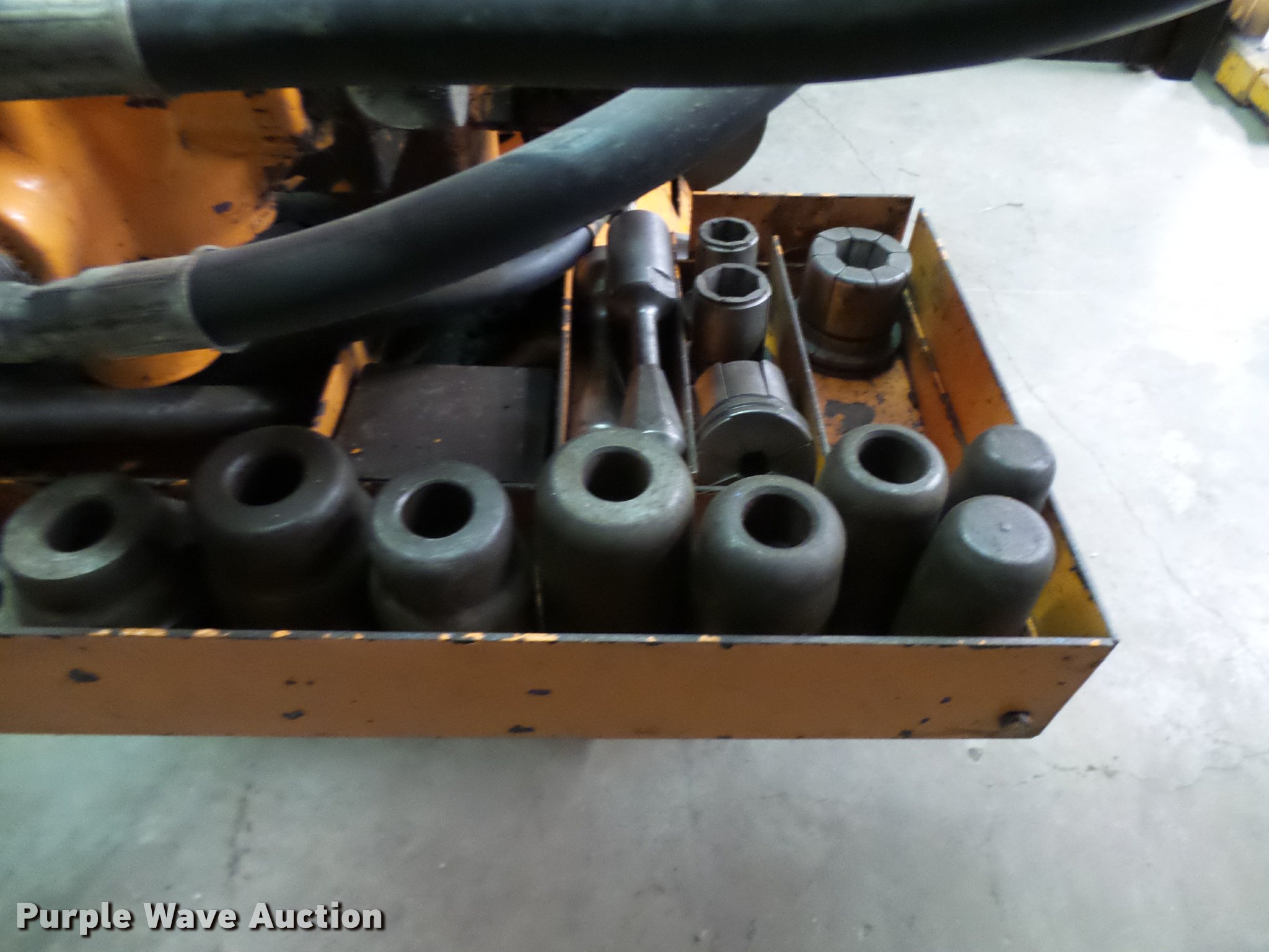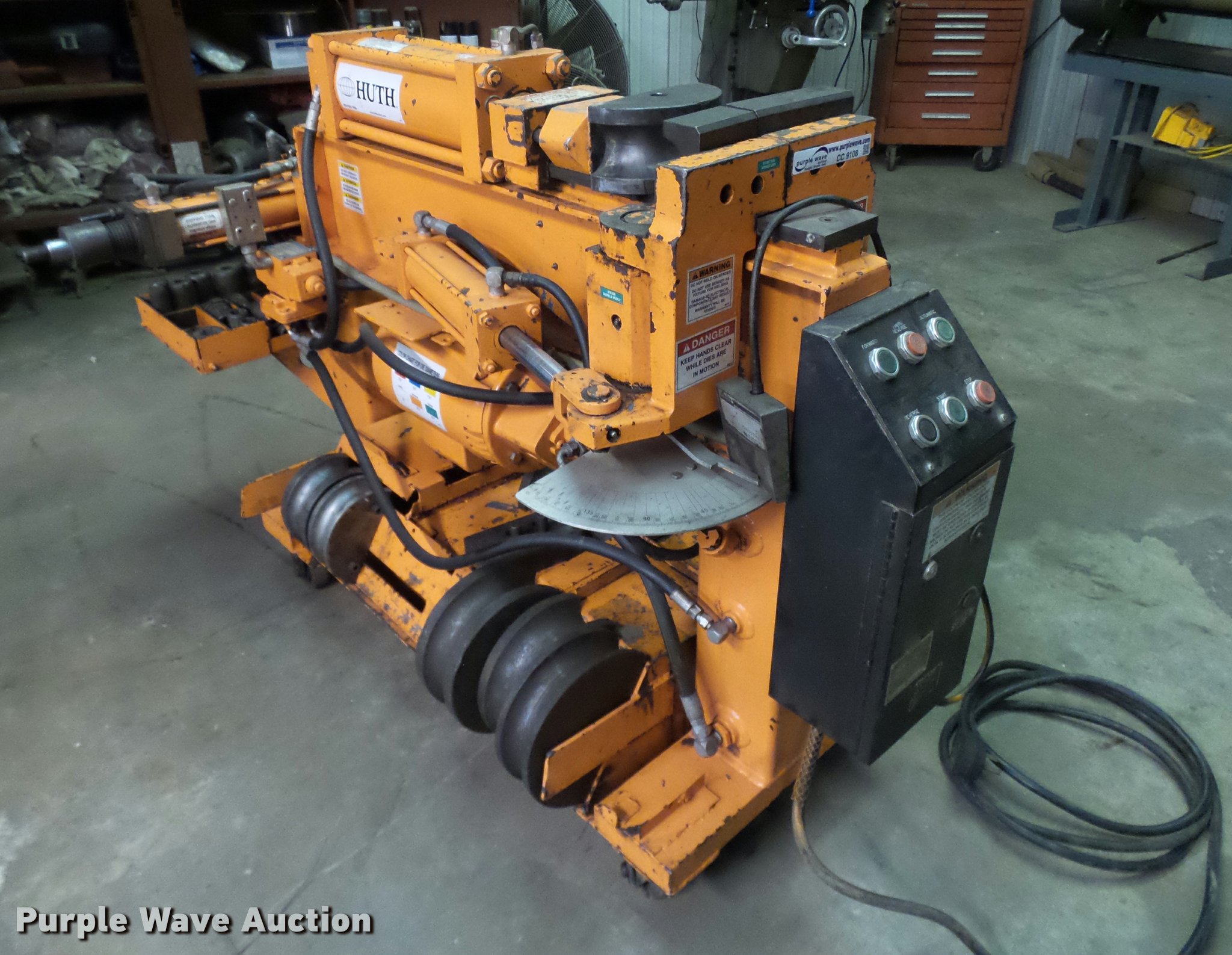 Purple Wave is selling a used Tools in Missouri. This item is a Huth 2007 horizontal pipe bender with the following: 220V, Push button controls, Auto depth of bend selector, 58,000 lbs of bending force, 3" max tubing capacity, Swager/expander, Swager tray, Tool tray, Tools included, Casters, Serial 7176