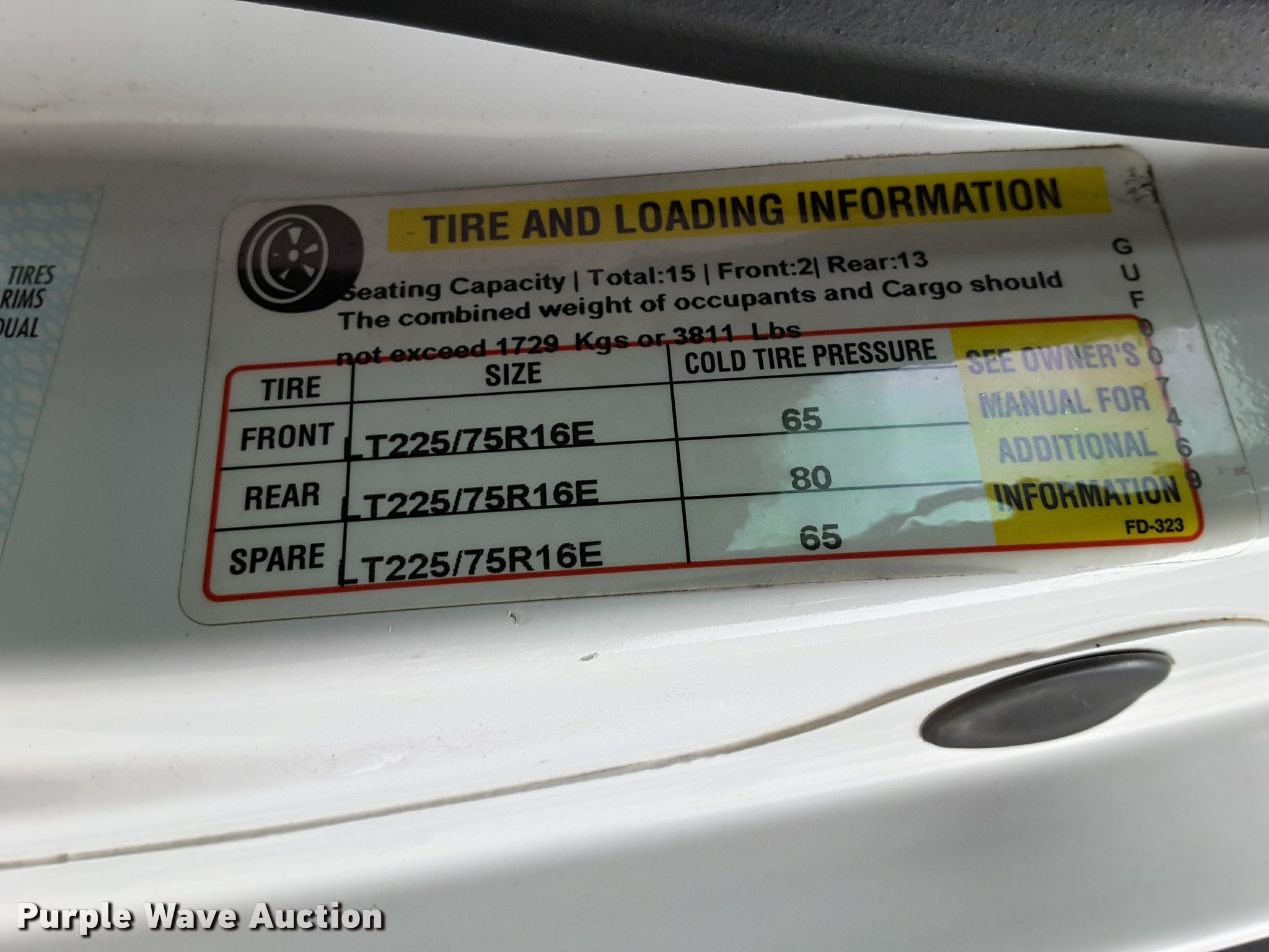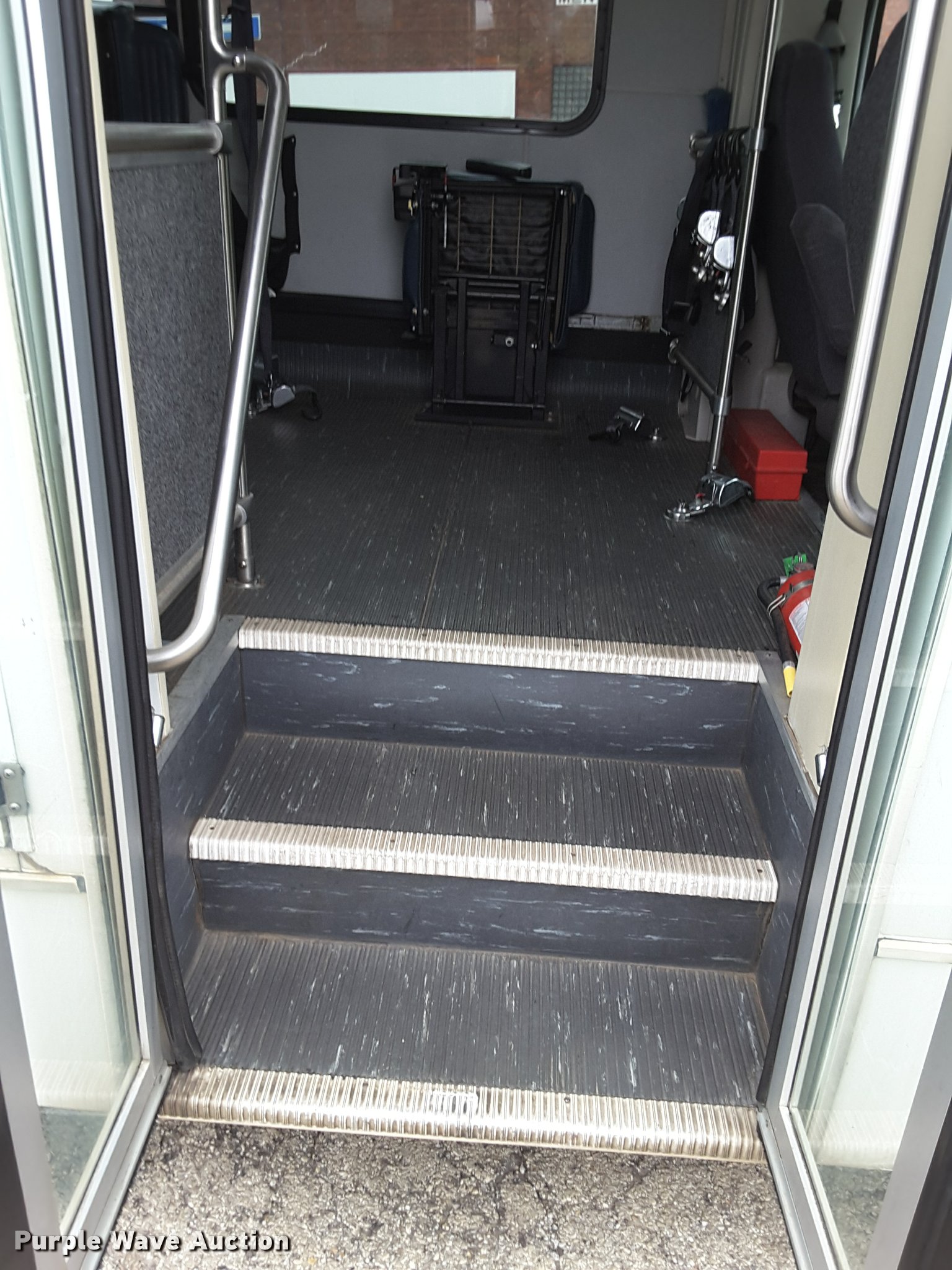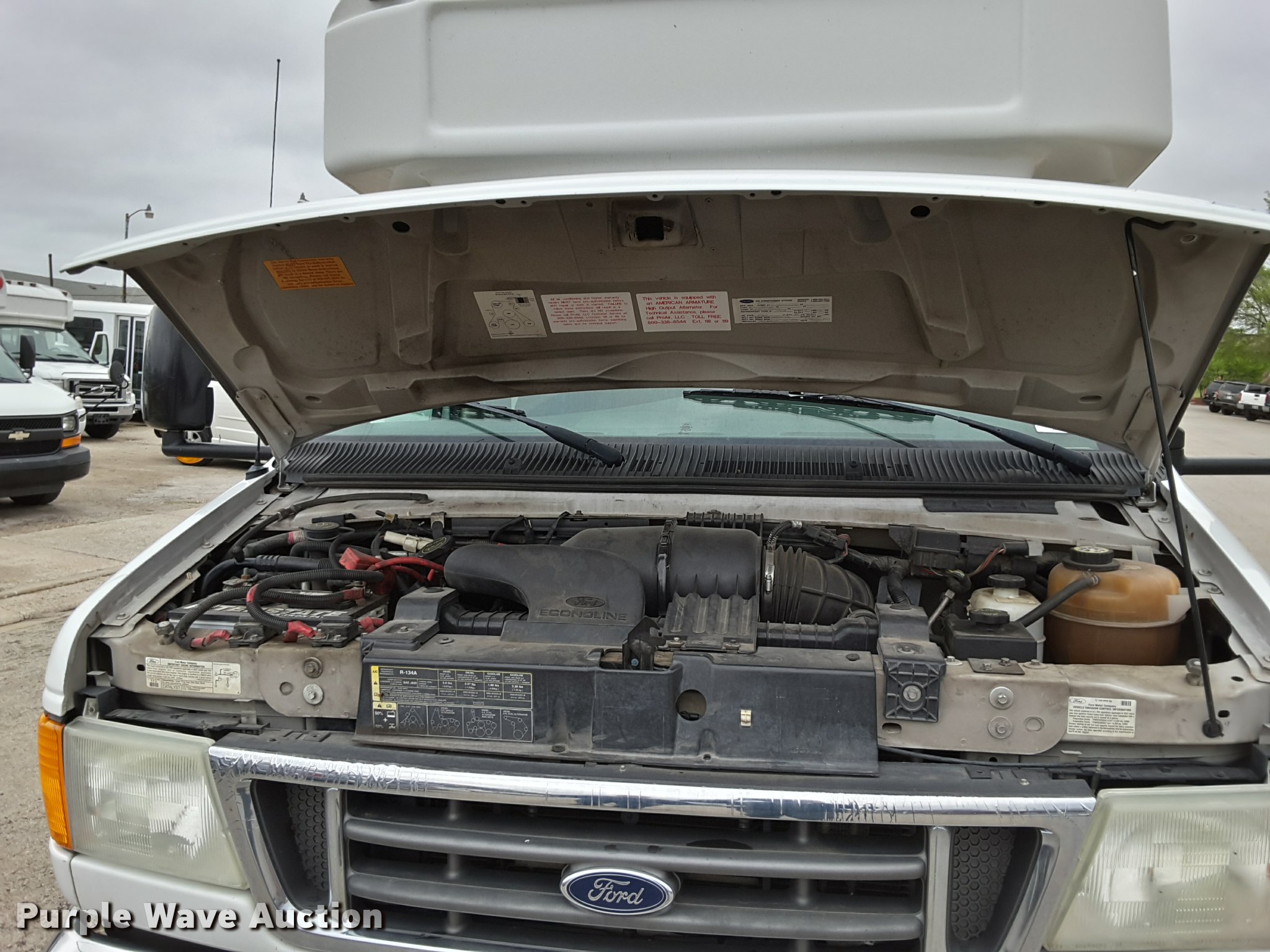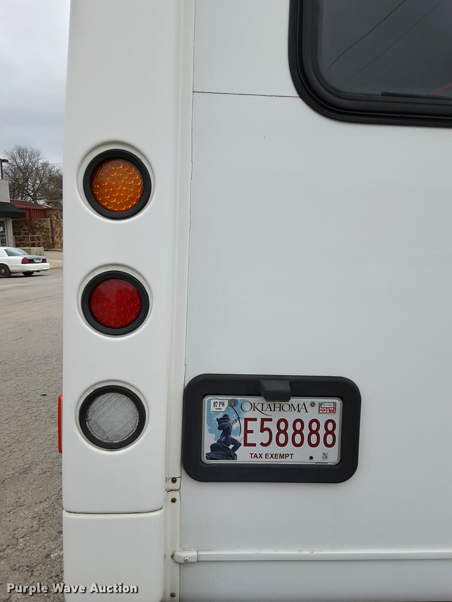 Purple Wave is selling a used Bus in Oklahoma. This item is a 2007 Ford Econoline E450 shuttle bus with the following: 210,846 miles on odometer, 6.8L V10 SOHC 20V gas engine, Automatic transmission, Single axle, AC and heat, AM/FM/CD, Power mirrors, Suspension seat, Auxiliary controls, Electric passenger sliding door, Ceiling handrail, 16 passenger capacity, (14) adult seats, Seat belts, Braun NC9191B wheelchair lift, Serial C5-02386, (2) wheelchair tie down areas, Side emergency exits, Lights, Carrier roof AC unit, Spring suspension, Hydraulic brakes, 192" wheelbase, 225/75R16 tires, GVWR 14,050 lbs