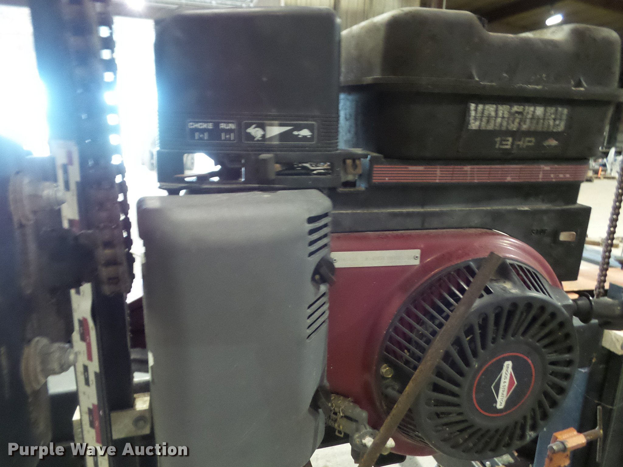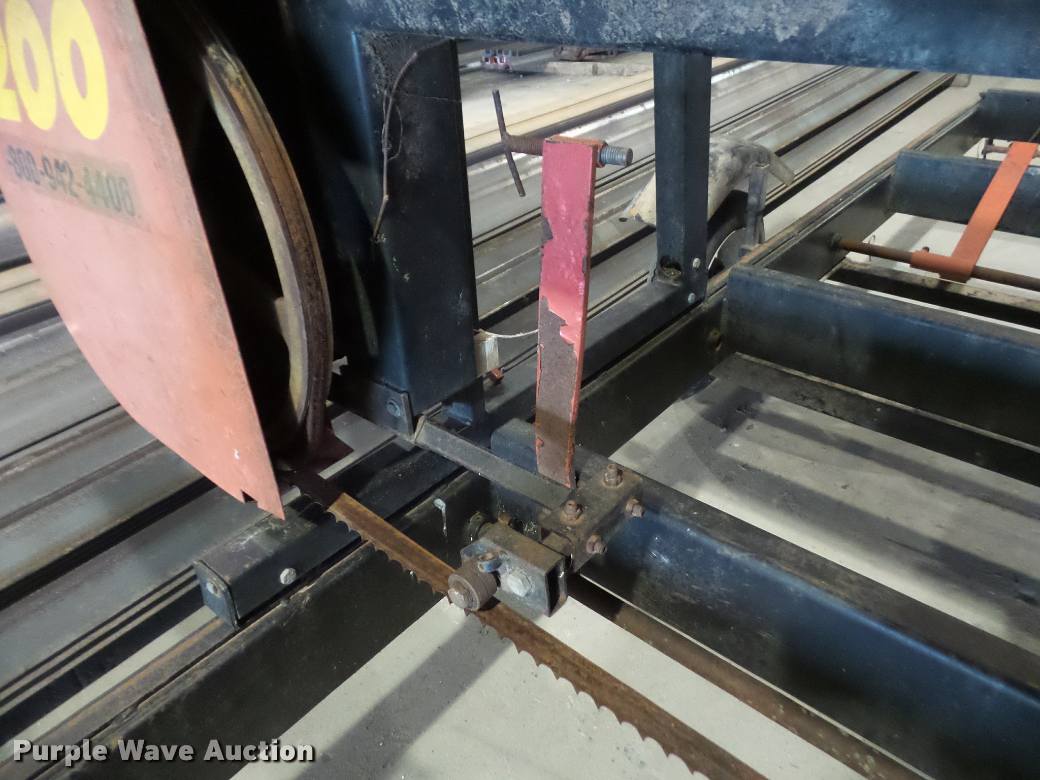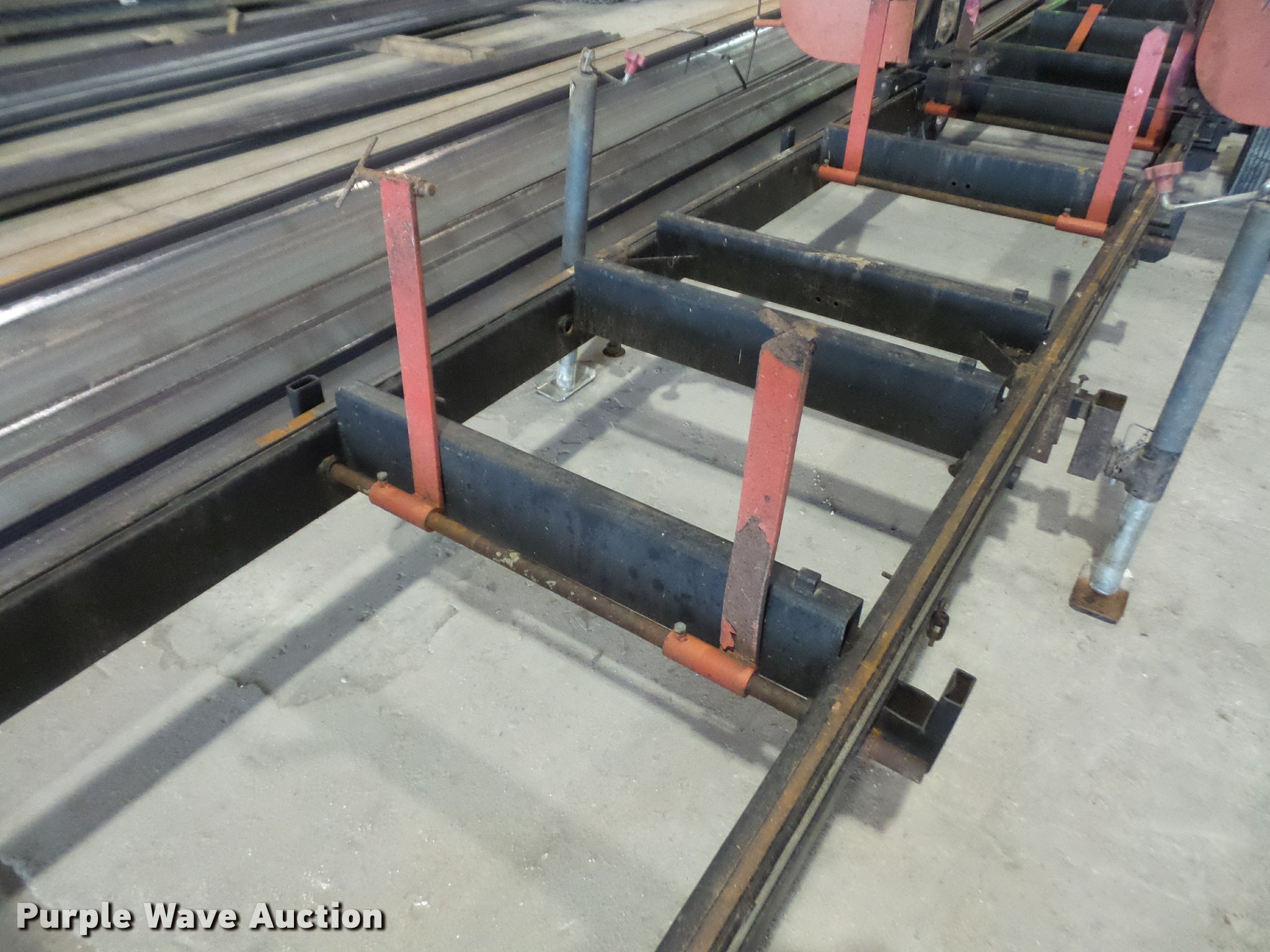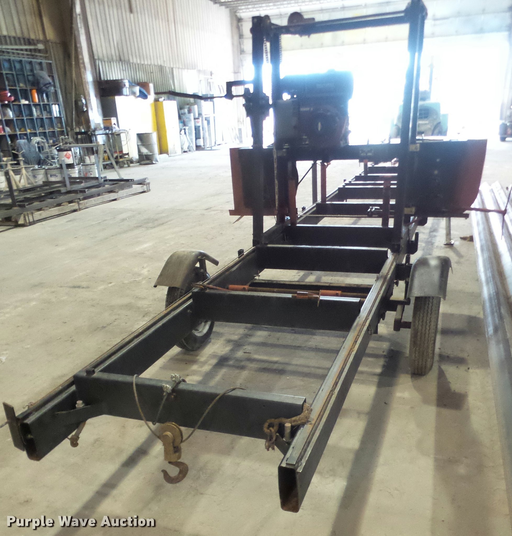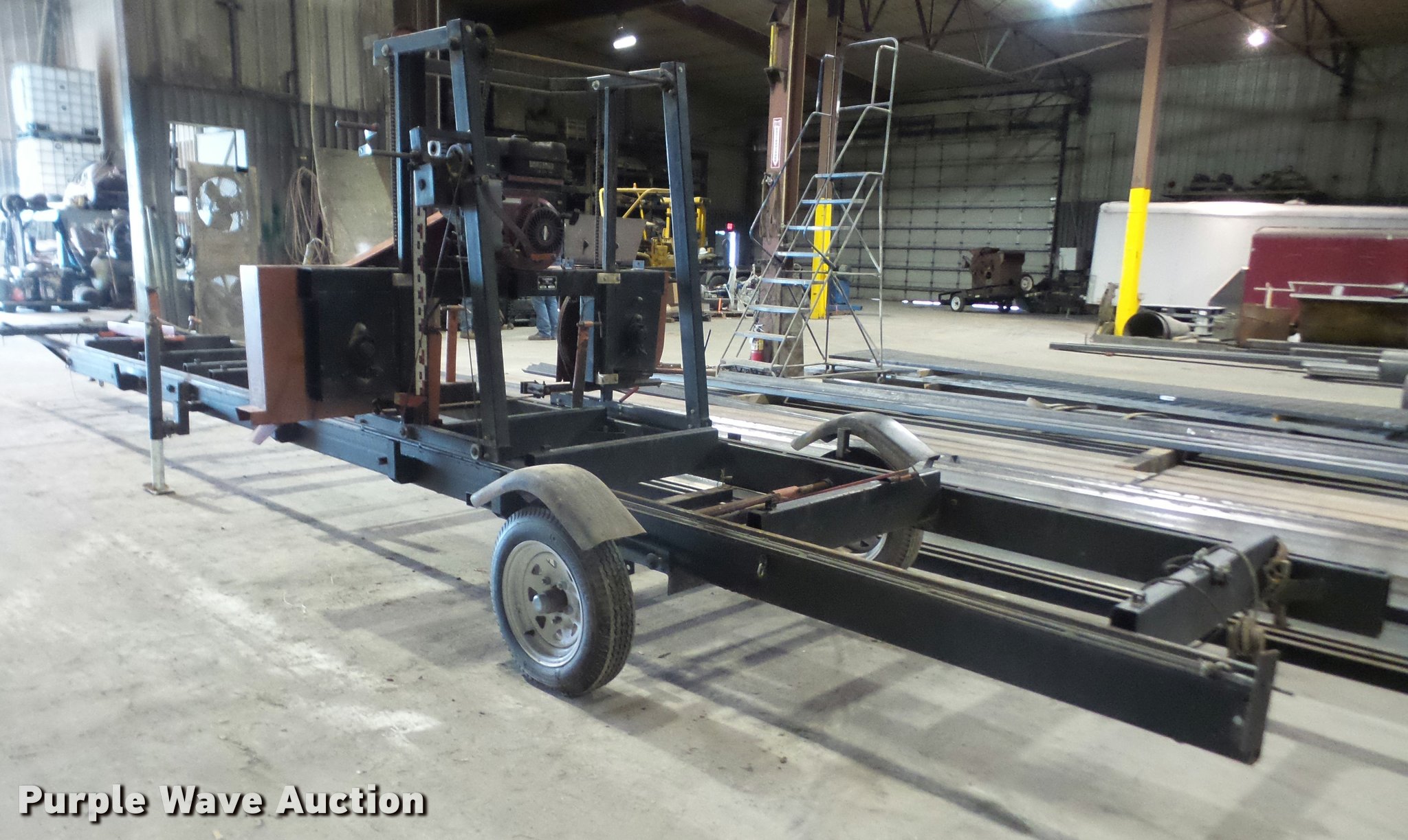 Purple Wave is selling a used Sawmill in Kansas. This item is a Timberking 1200 saw mill with the following: Vanguard 13 HP gas engine, 24'L, Manual operation, Pin hitch, 4.00-12 tires, Serial 1162