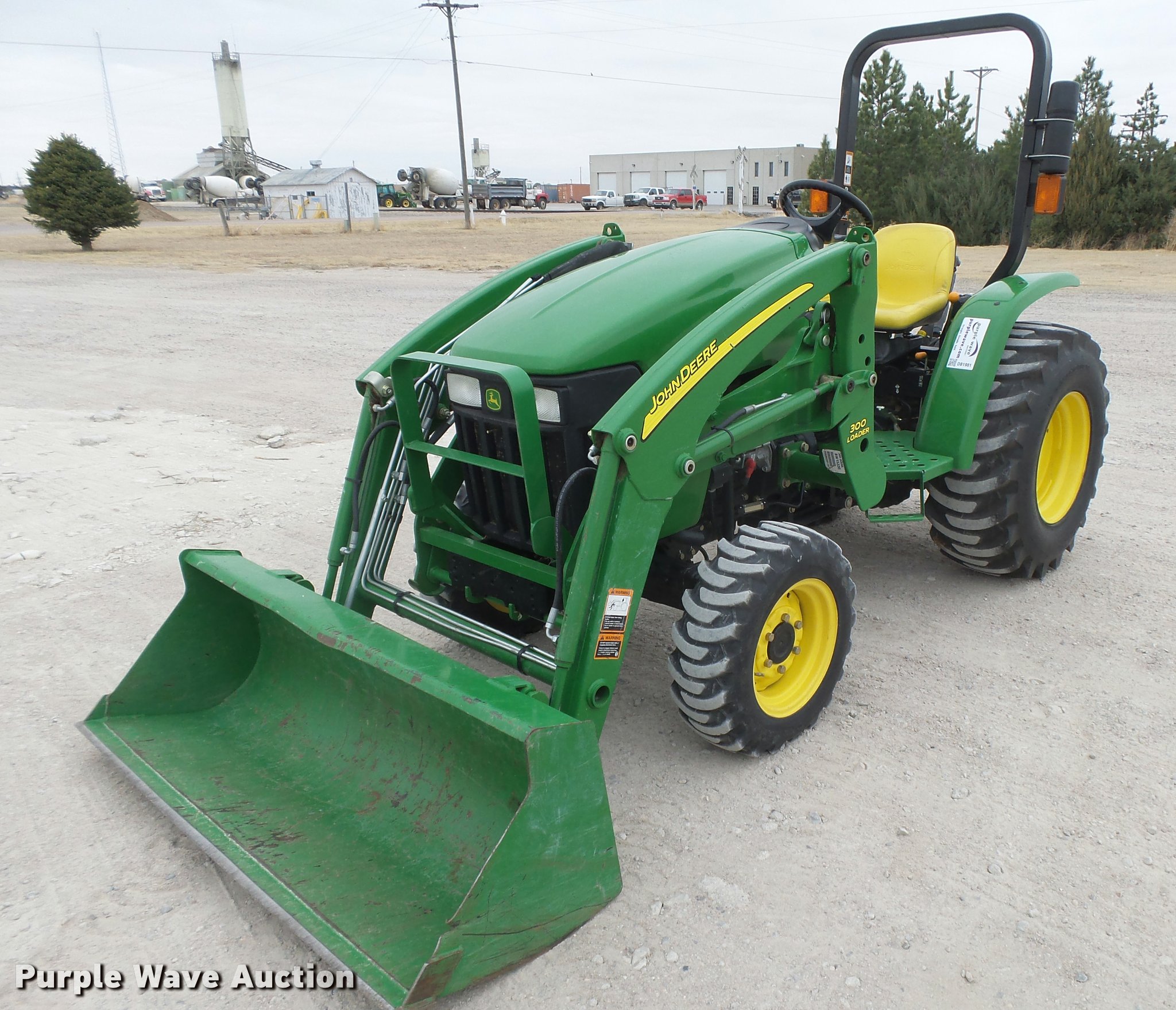 Purple Wave is selling a used Tractor in Kansas. This item is a 2008 John Deere 3203 MFWD tractor with the following: 733 hours on meter, Yanmar 3TNV84-K 1.496L three cylinder diesel engine, Hydrostatic transmission, Two range, Spring suspension seat, John Deere 300 loader, 62" bucket, Quick attach, Serial W00300X21162, Three point, Top link, 540 PTO, Front hydraulics, 25x8.50-14 front tires, 15-19.5 rear tires, 69" wheel base, Serial LV3203H497487