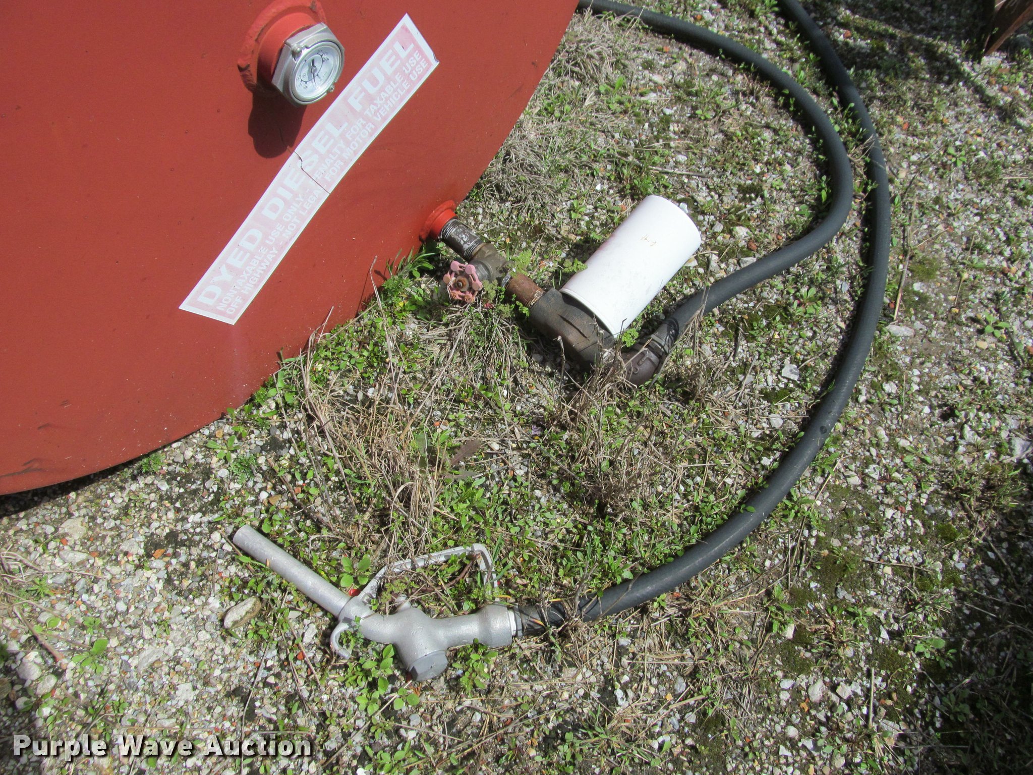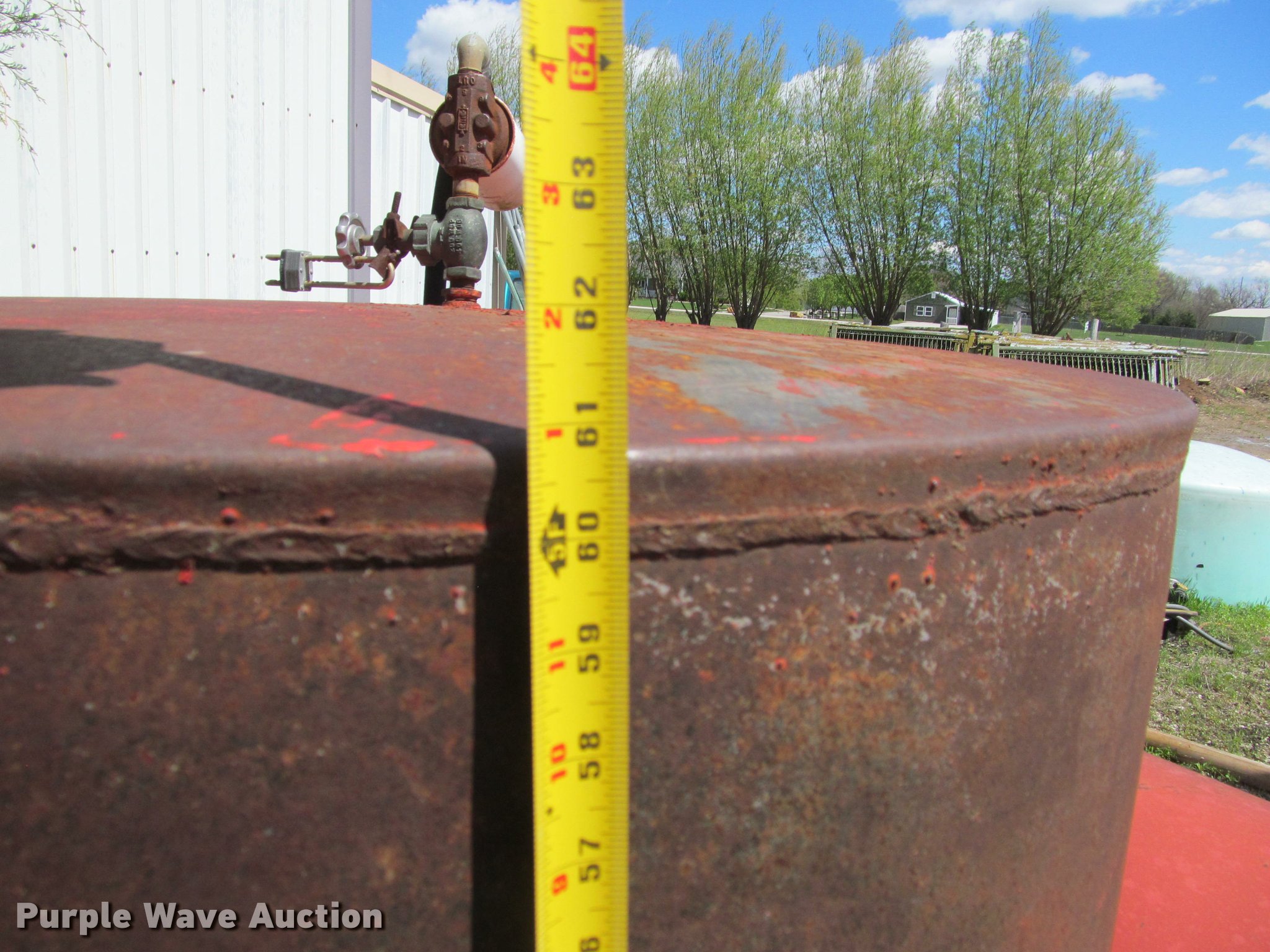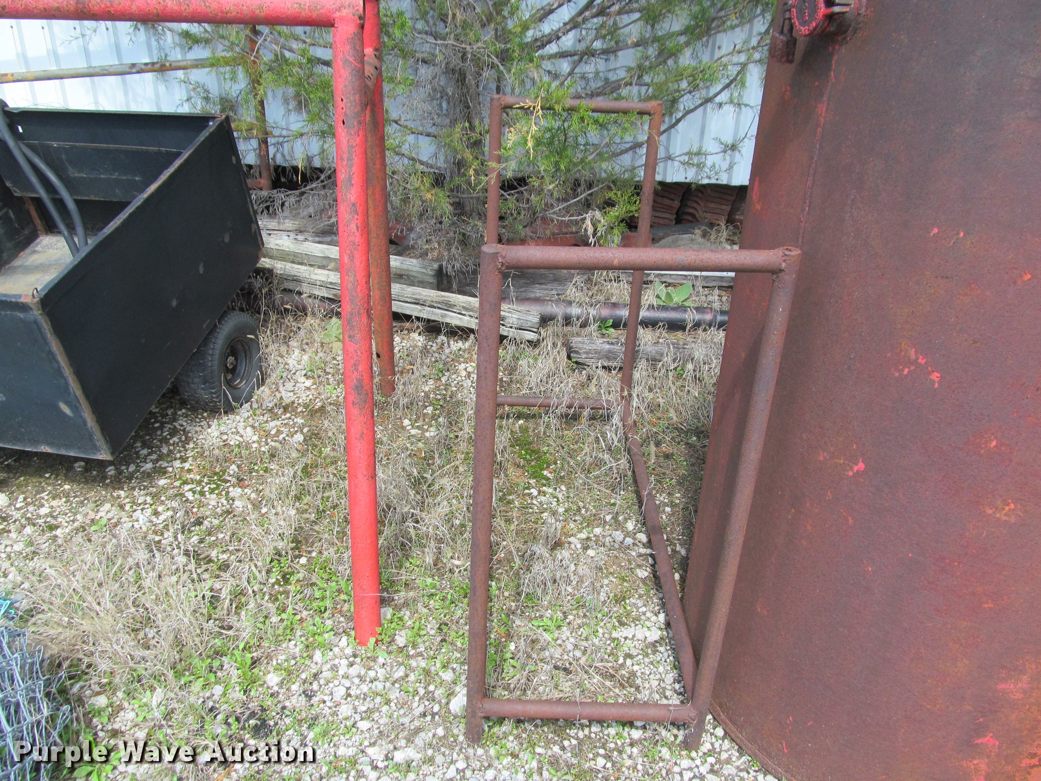 Purple Wave is selling a used Fuel and Lube in Kansas. This item is a (2) steel fuel tanks with the following: 61.5" x 36.5", 61" x 37", Hoses, Fill handles, (3) stands, Wagon not included