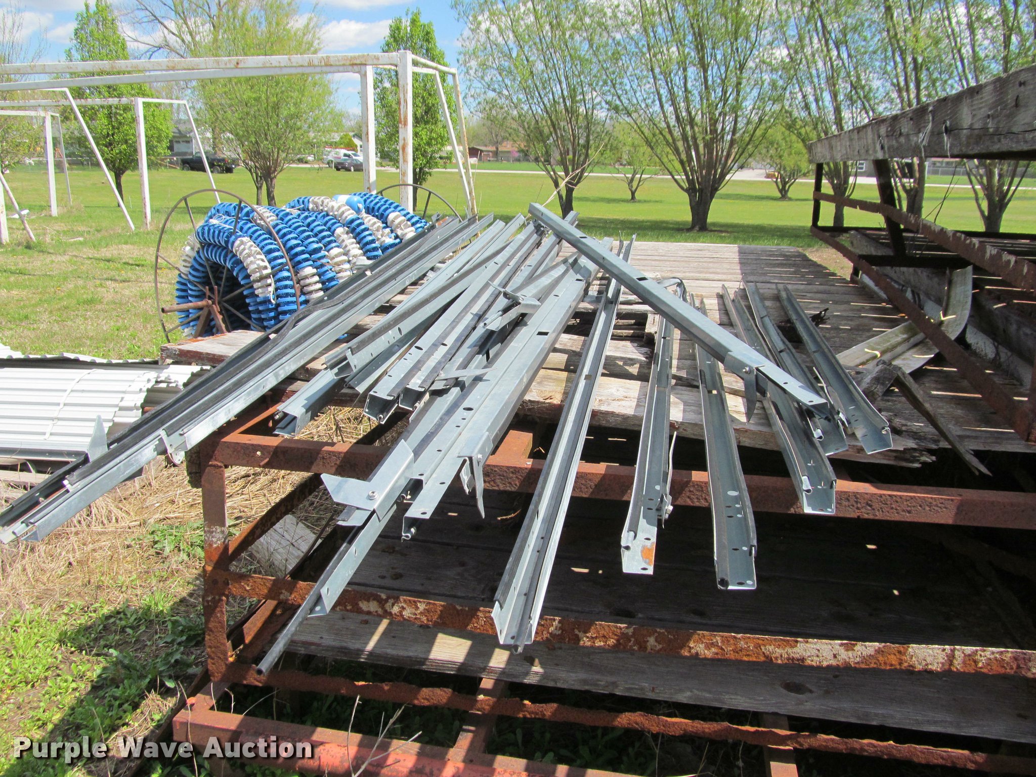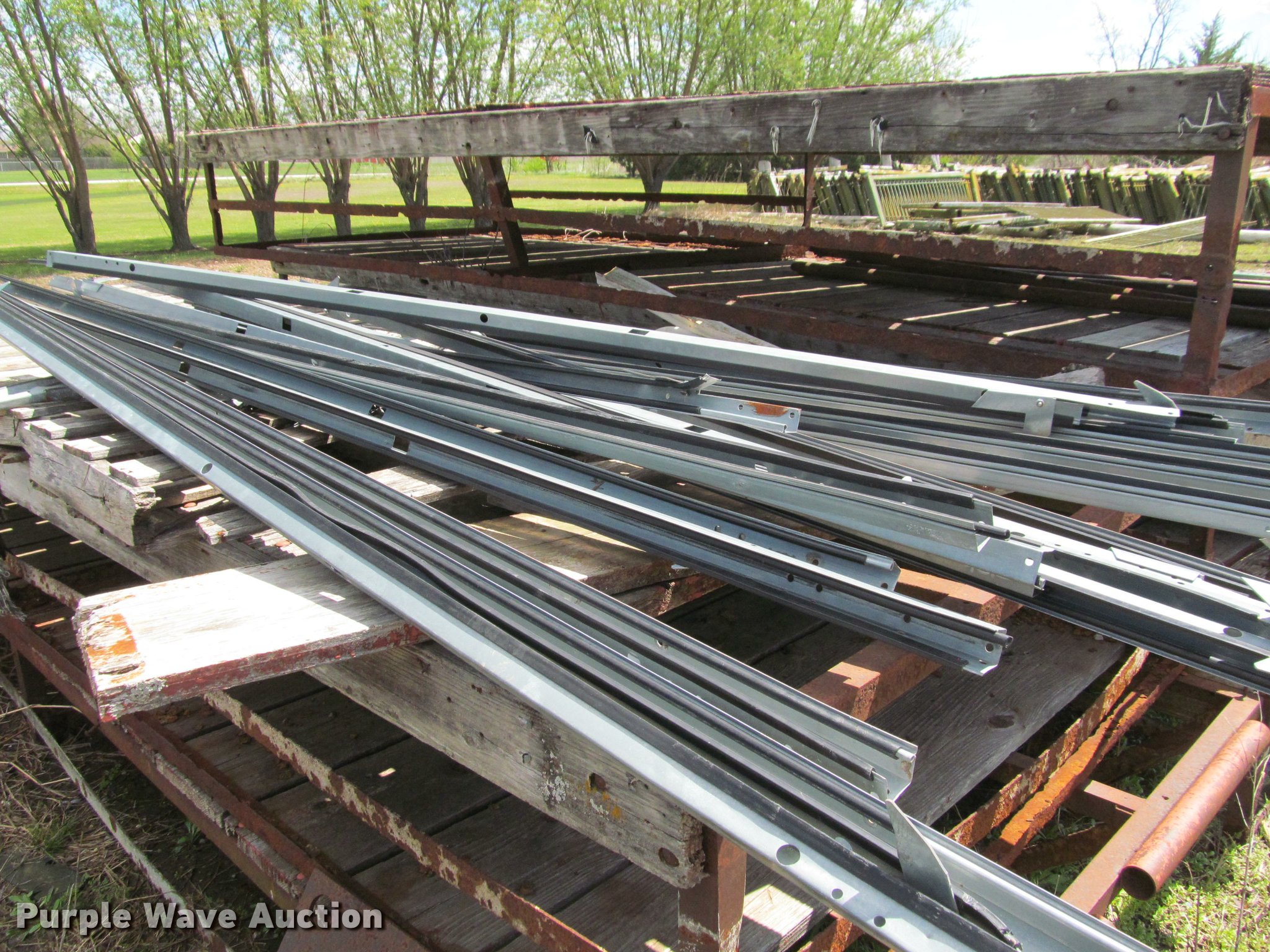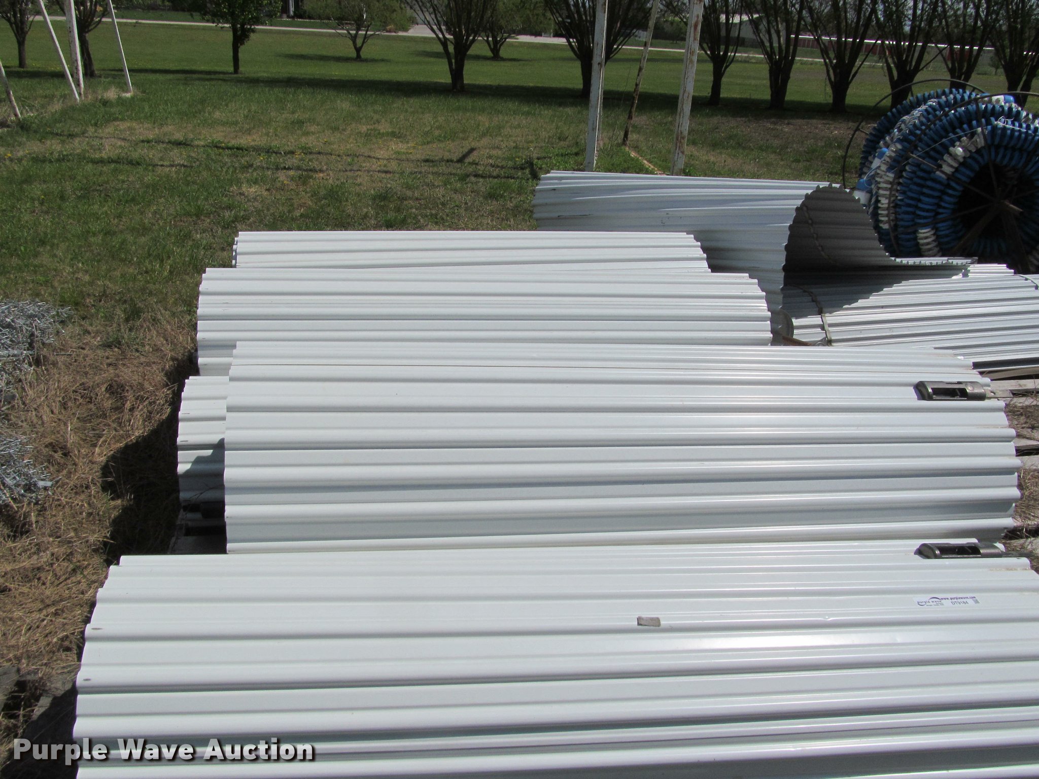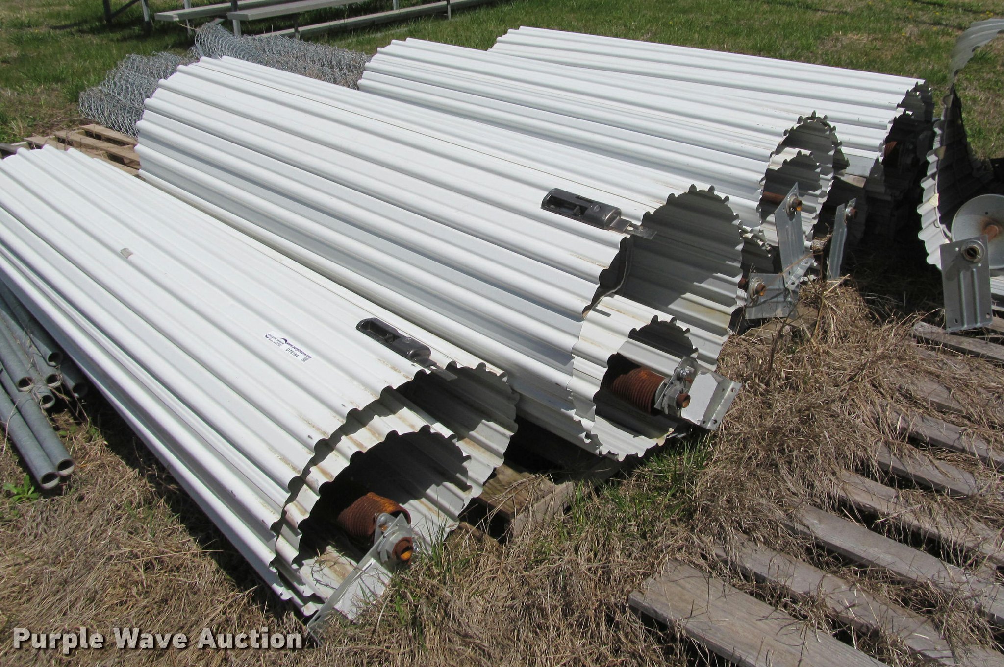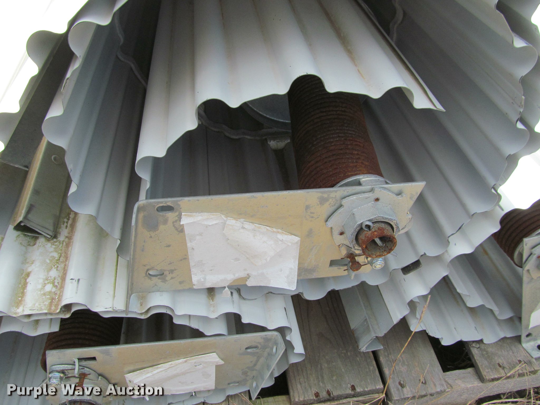 Purple Wave is selling a used Building Materials in Kansas. This item is a Approximately 10 roll up garage doors with the following: 75"W x 8'H, Assorted tracks