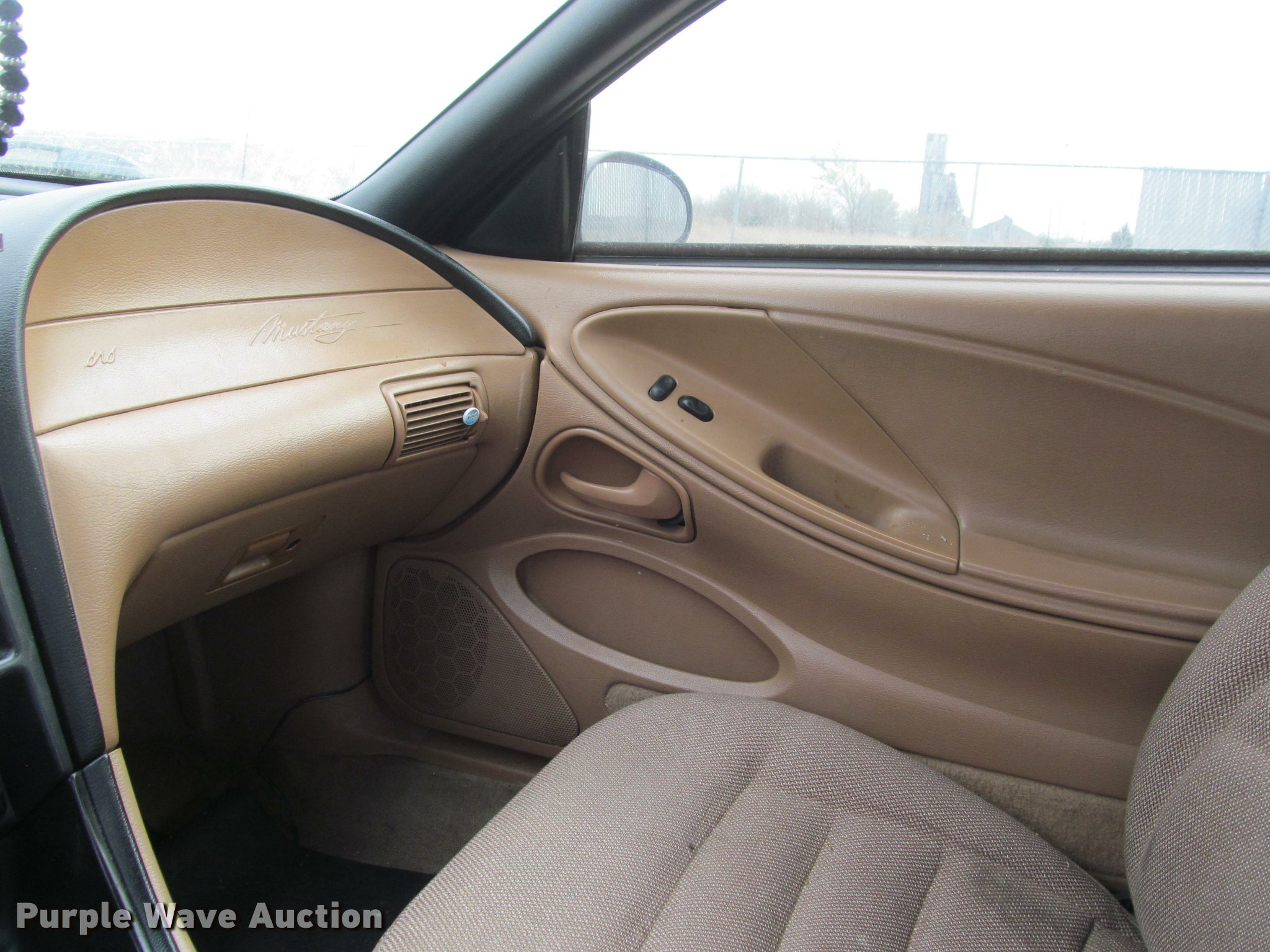 Purple Wave is selling a used Passenger Vehicle in Kansas. This item is a 1997 Ford Mustang with the following: 120,185 miles on odometer, 3.8L V6 OHV 12V gas engine, Automatic transmission, AC and heat, Tilt, Cruise, AM/FM/CD, Power windows, locks, and mirrors, Cloth interior, 205/65R15 tires, Dead battery, Paint peeling, Unknown operating condition