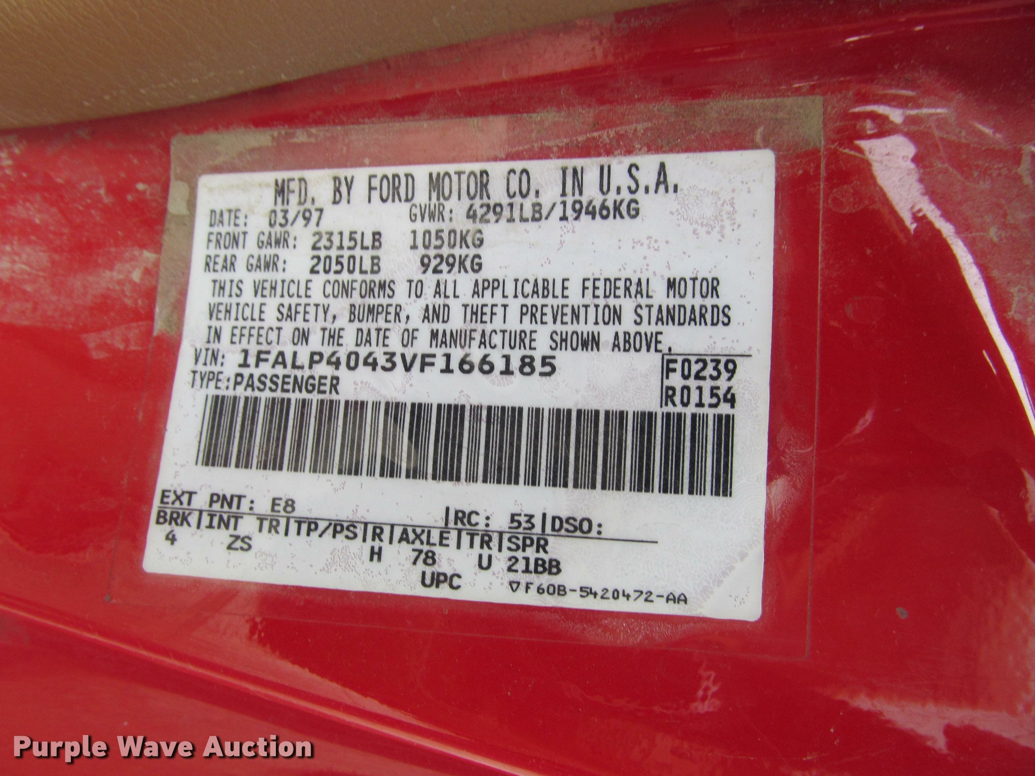 Take a look at this used 1997 Ford Mustang being sold on April 26th, 2017 in the SOLD! April 26 Vehicles and Equipment Auction made by Ford. Take a look at all of the item information below or take a look at similar auctions for Passenger Vehicles.