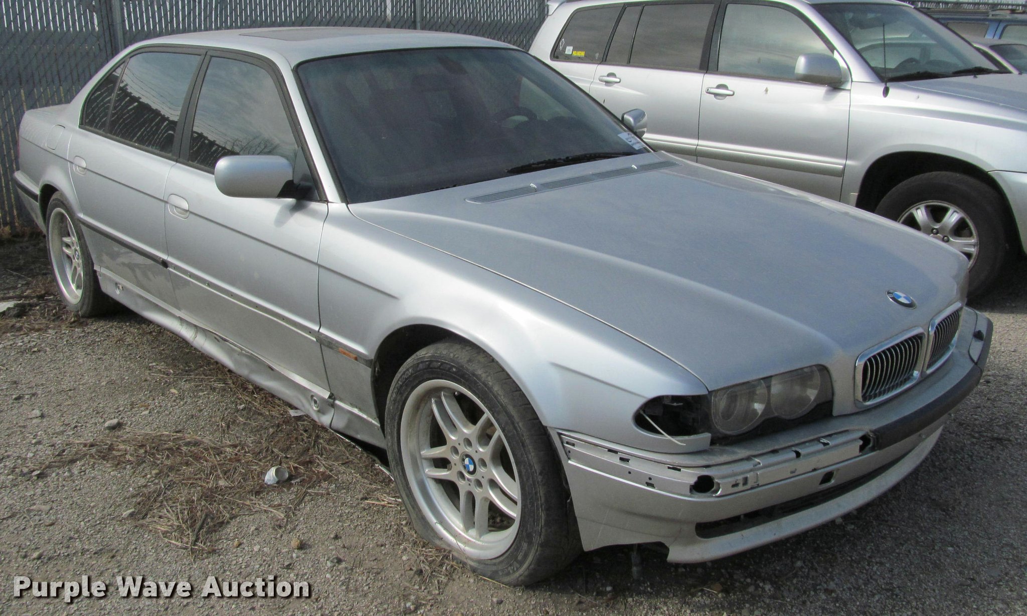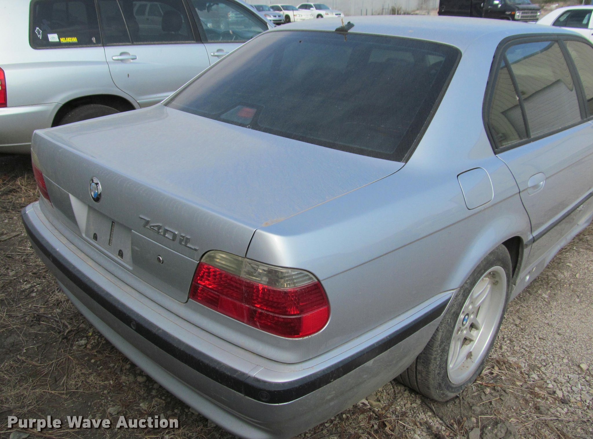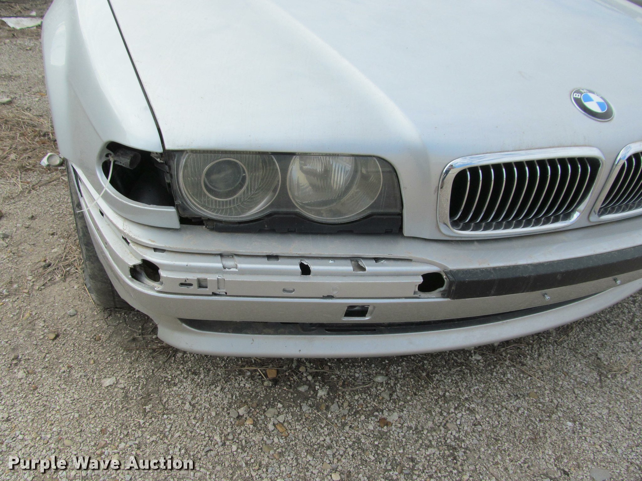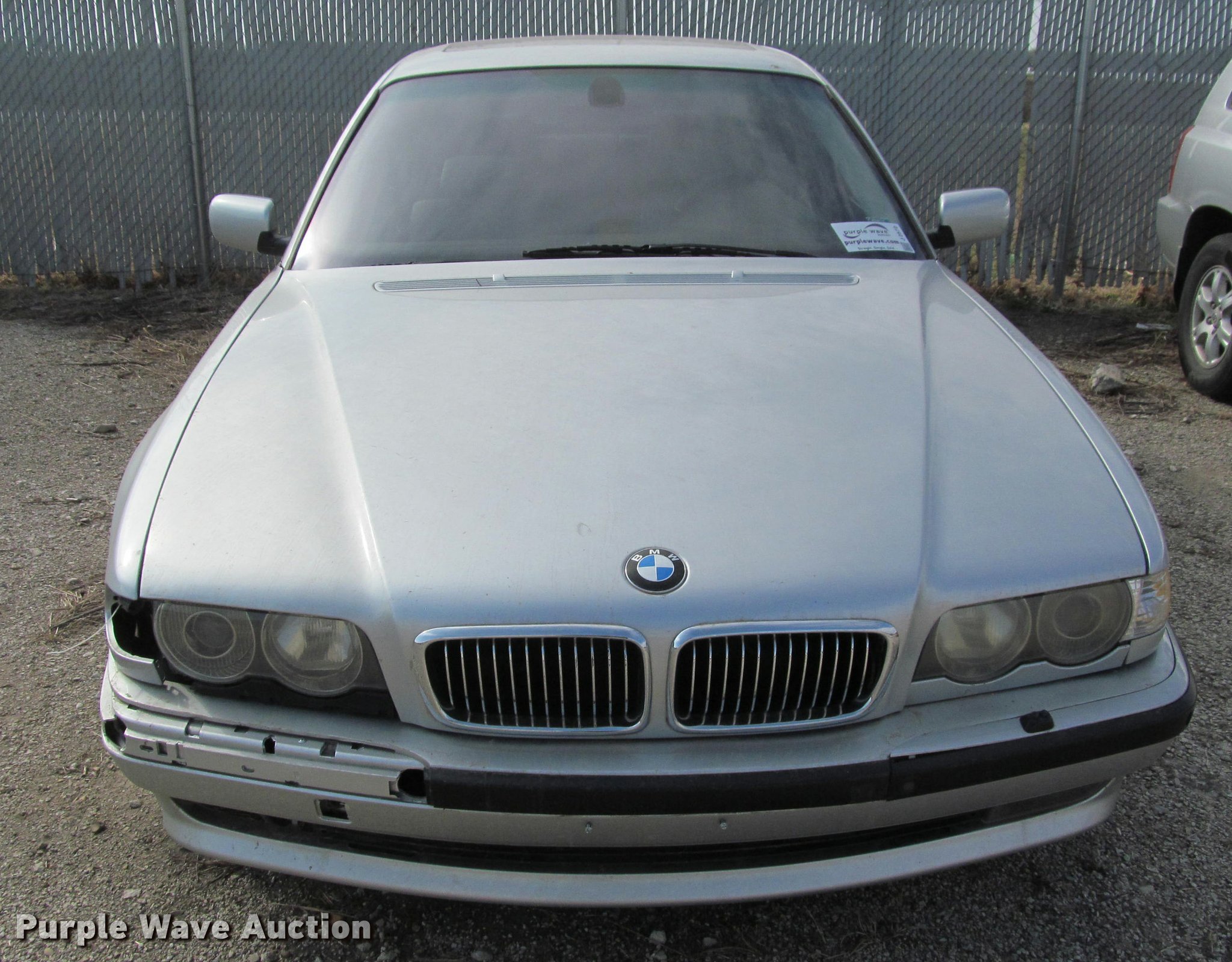 Purple Wave is selling a used Passenger Vehicle in Kansas. This item is a 2001 BMW 740iL with the following: Unknown miles on odometer, 4.4L V8 DOHC 32V gas engine, Automatic transmission, AC and heat, Tilt, Cruise, AM/FM, Power windows, locks, mirrors, and seats, Leather interior, Power sunroof, 235/50R18 tires, Dead battery, Flat tires, Side damage, Hood will not open, Unknown operating condition
