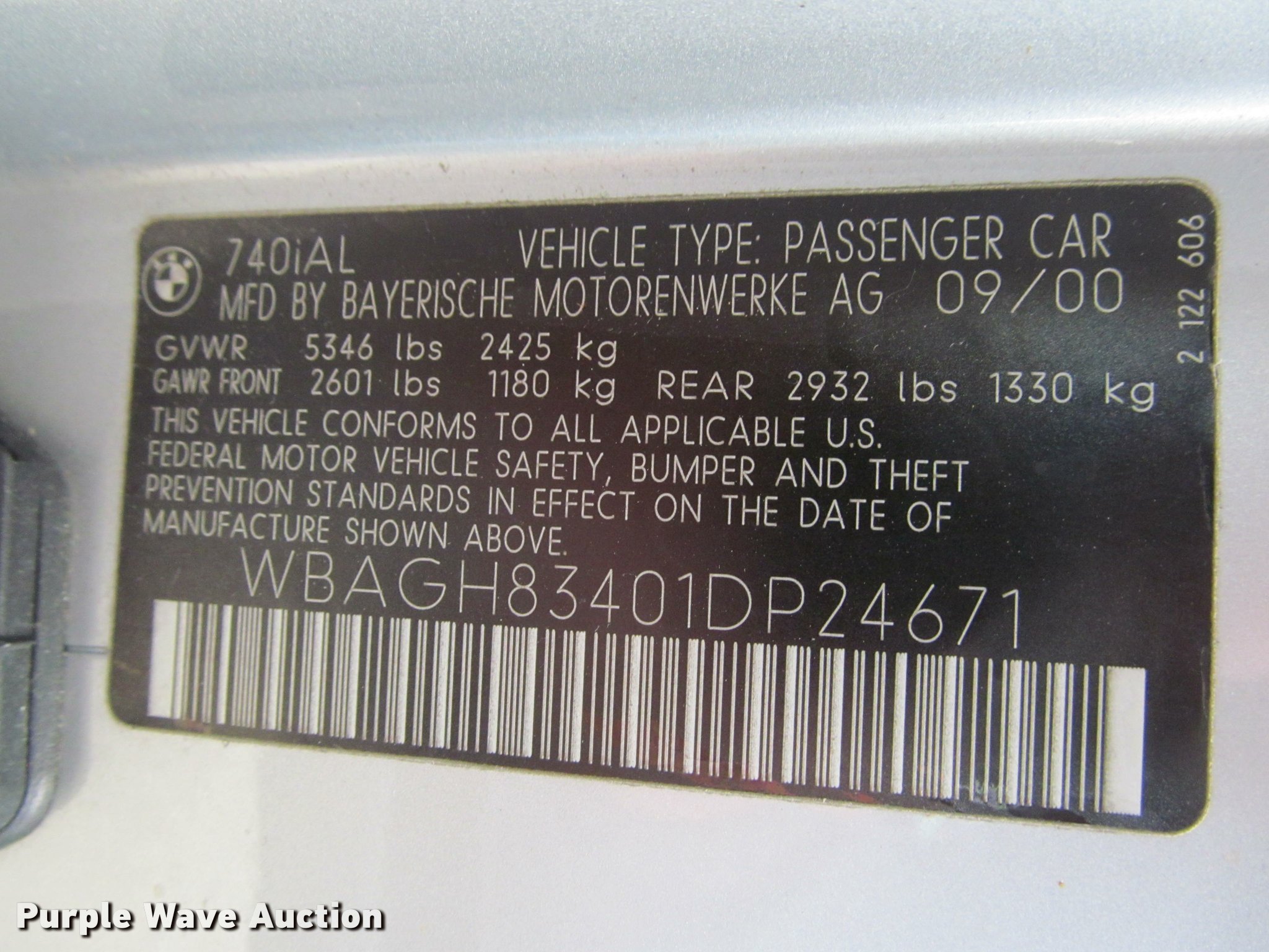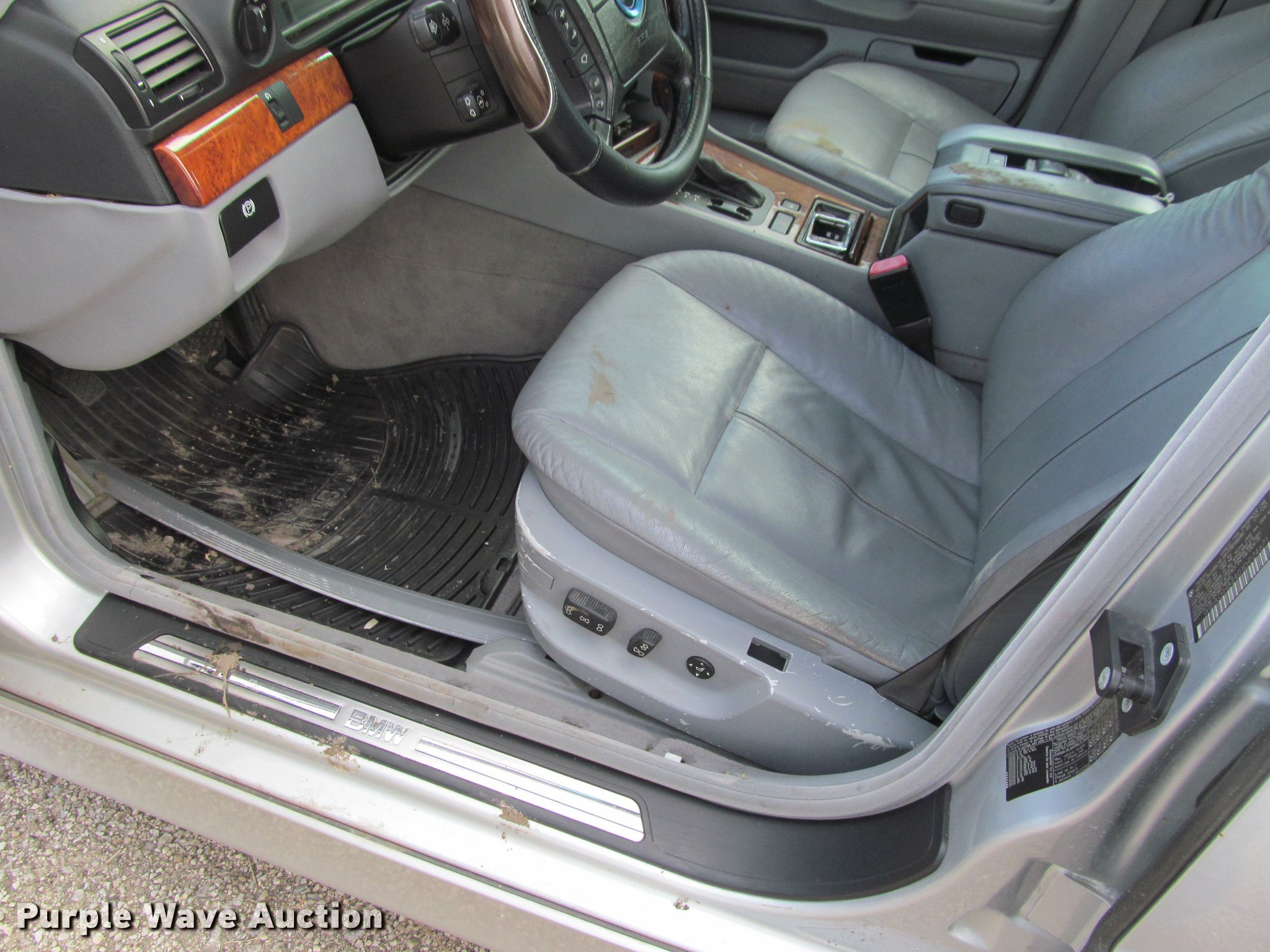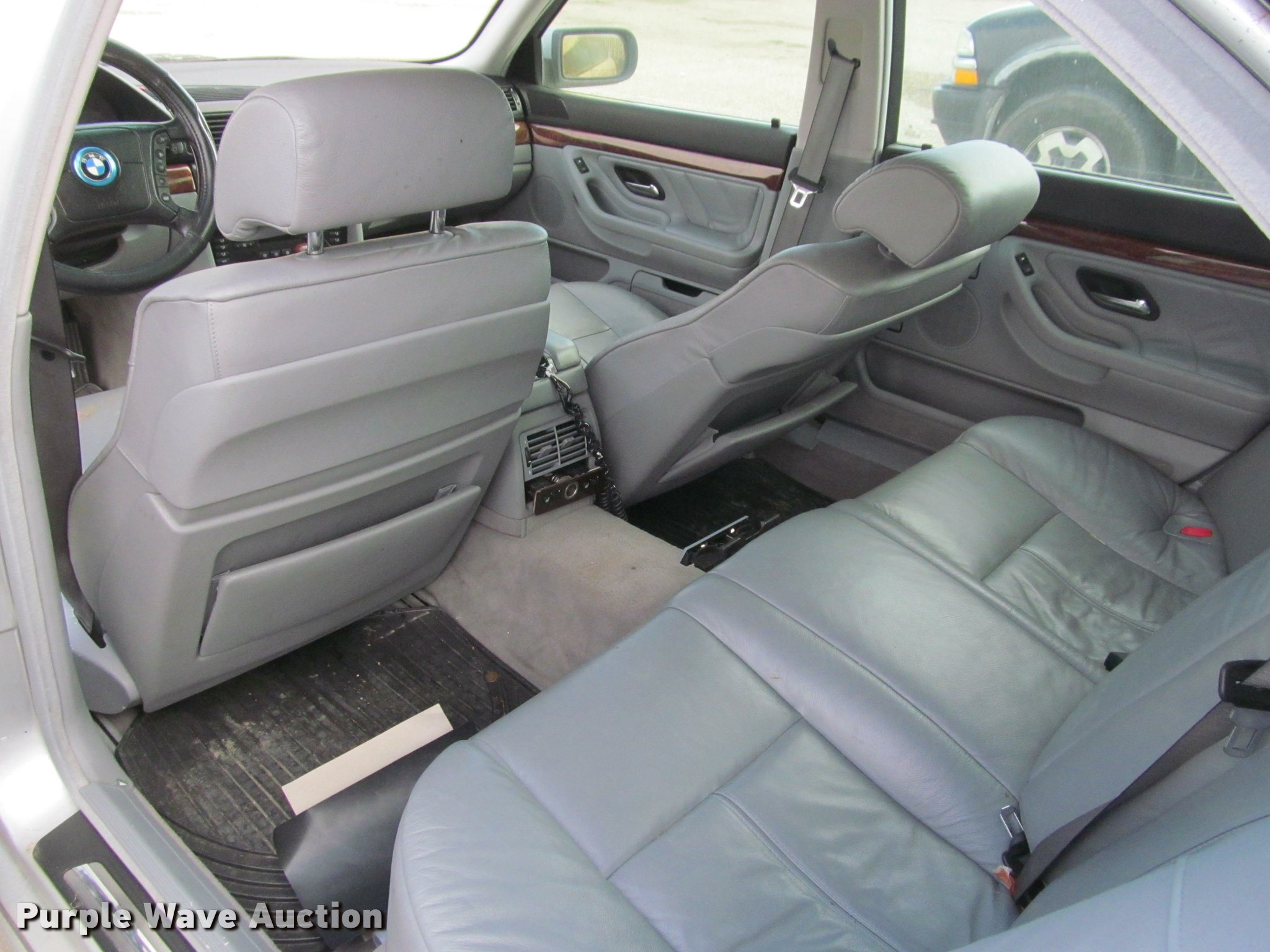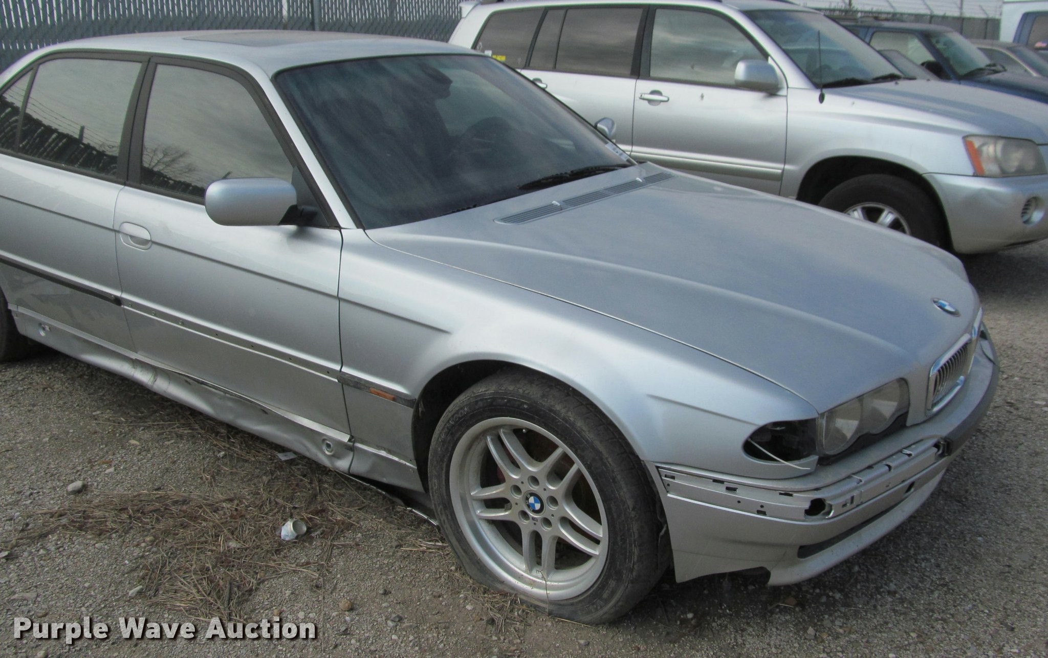 Purple Wave is selling a used Passenger Vehicle in Kansas. This item is a 2001 BMW 740iL with the following: Unknown miles on odometer, 4.4L V8 DOHC 32V gas engine, Automatic transmission, AC and heat, Tilt, Cruise, AM/FM, Power windows, locks, mirrors, and seats, Leather interior, Power sunroof, 235/50R18 tires, Dead battery, Flat tires, Side damage, Hood will not open, Unknown operating condition