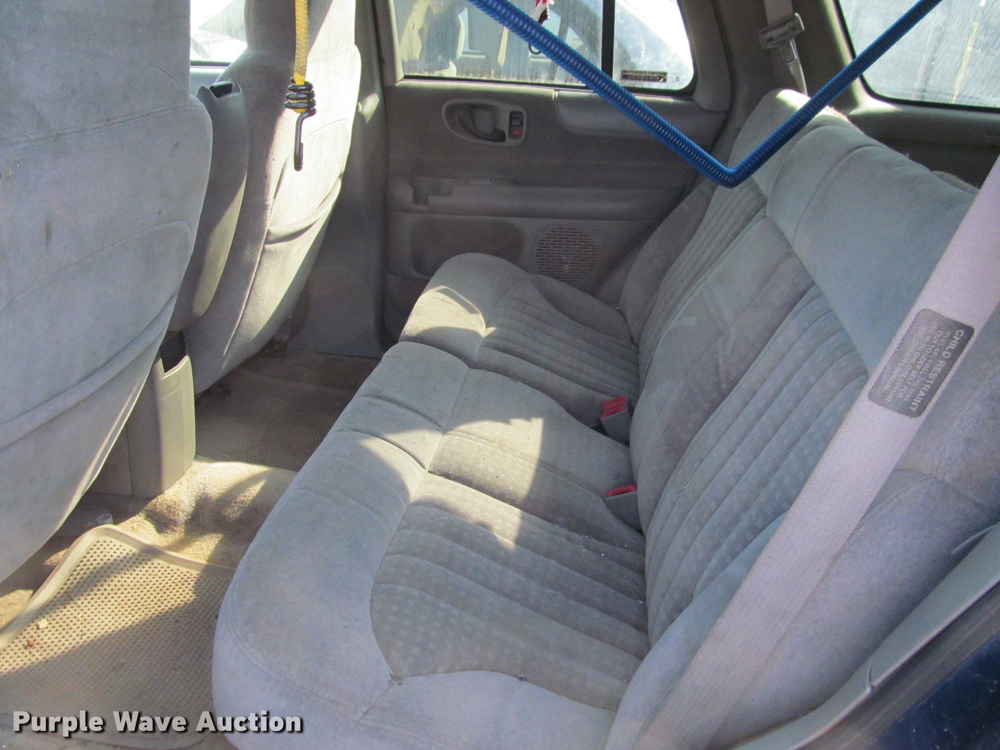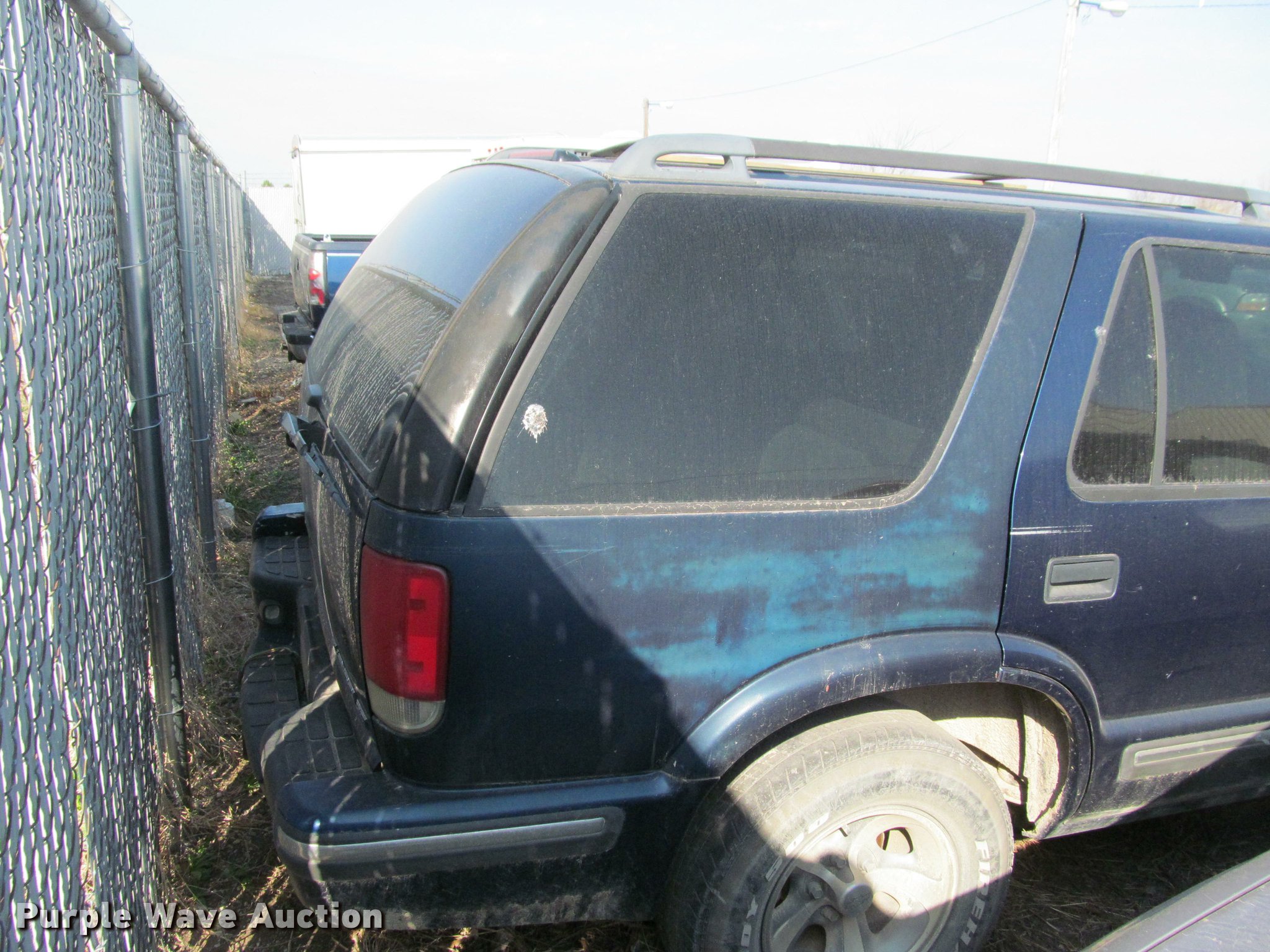 Purple Wave is selling a used Passenger Vehicle in Kansas. This item is a 1999 Chevrolet Blazer SUV with the following: Unknown miles on odometer, 4.3L V6 OHV 12V gas engine, Automatic transmission, AM/FM/CD, Receiver hitch, Trailer wiring, 235/70R15 tires, Cracked dash, Dead battery, Door panel missing, Paint faded, Mirror broken, Driver door will not completely close, Unknown operating condition