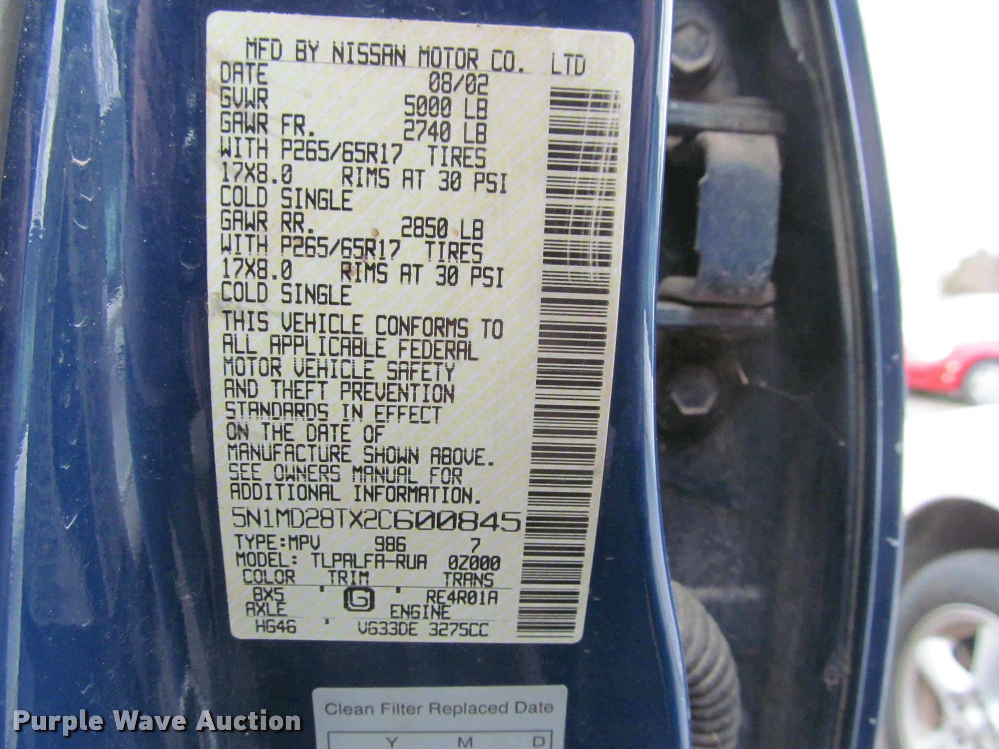 Take a look at this used 2002 Nissan Exterra SE SUV being sold on April 26th, 2017 in the SOLD! April 26 Vehicles and Equipment Auction made by Nissan. Take a look at all of the item information below or take a look at similar auctions for Passenger Vehicles.