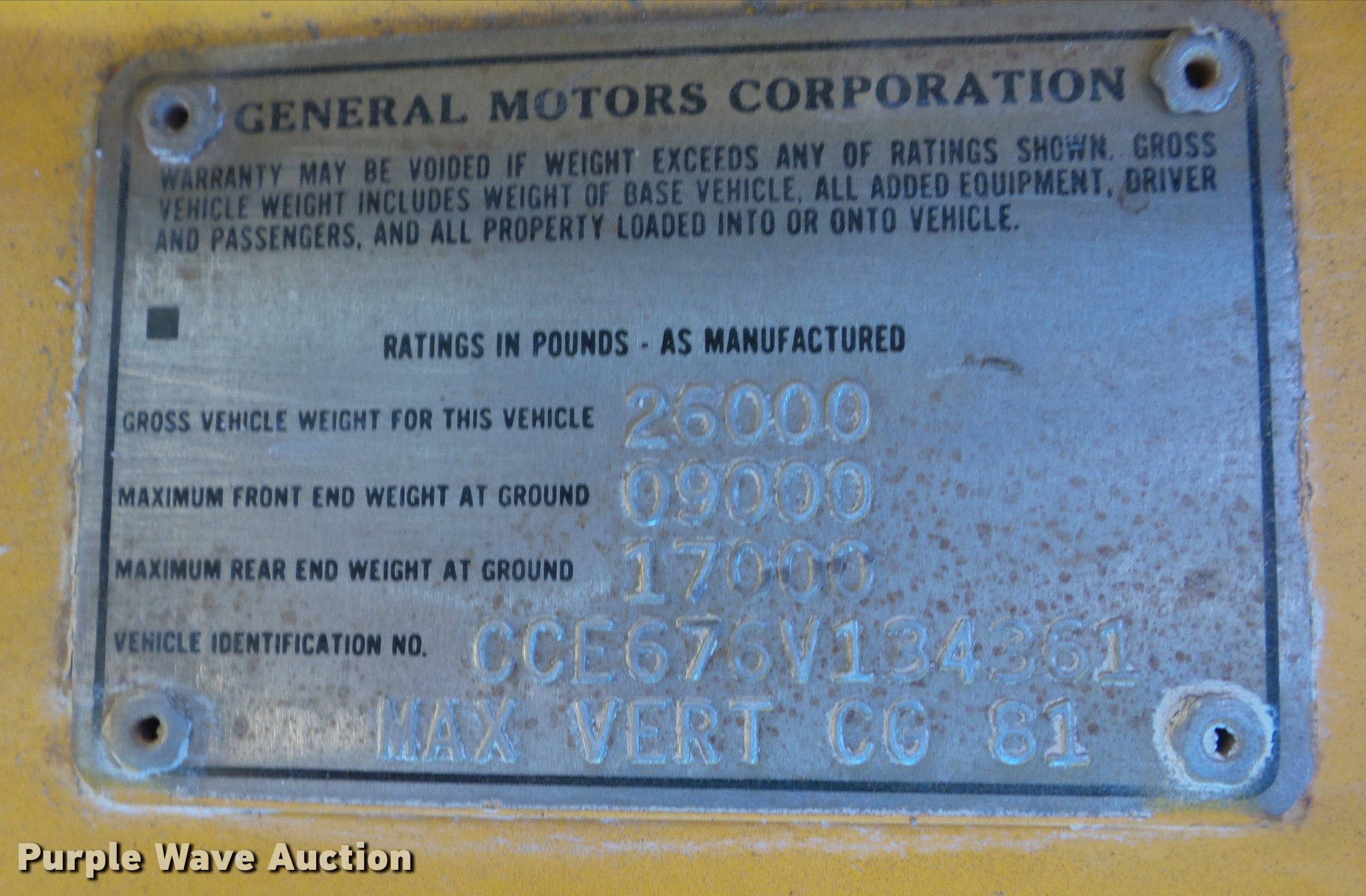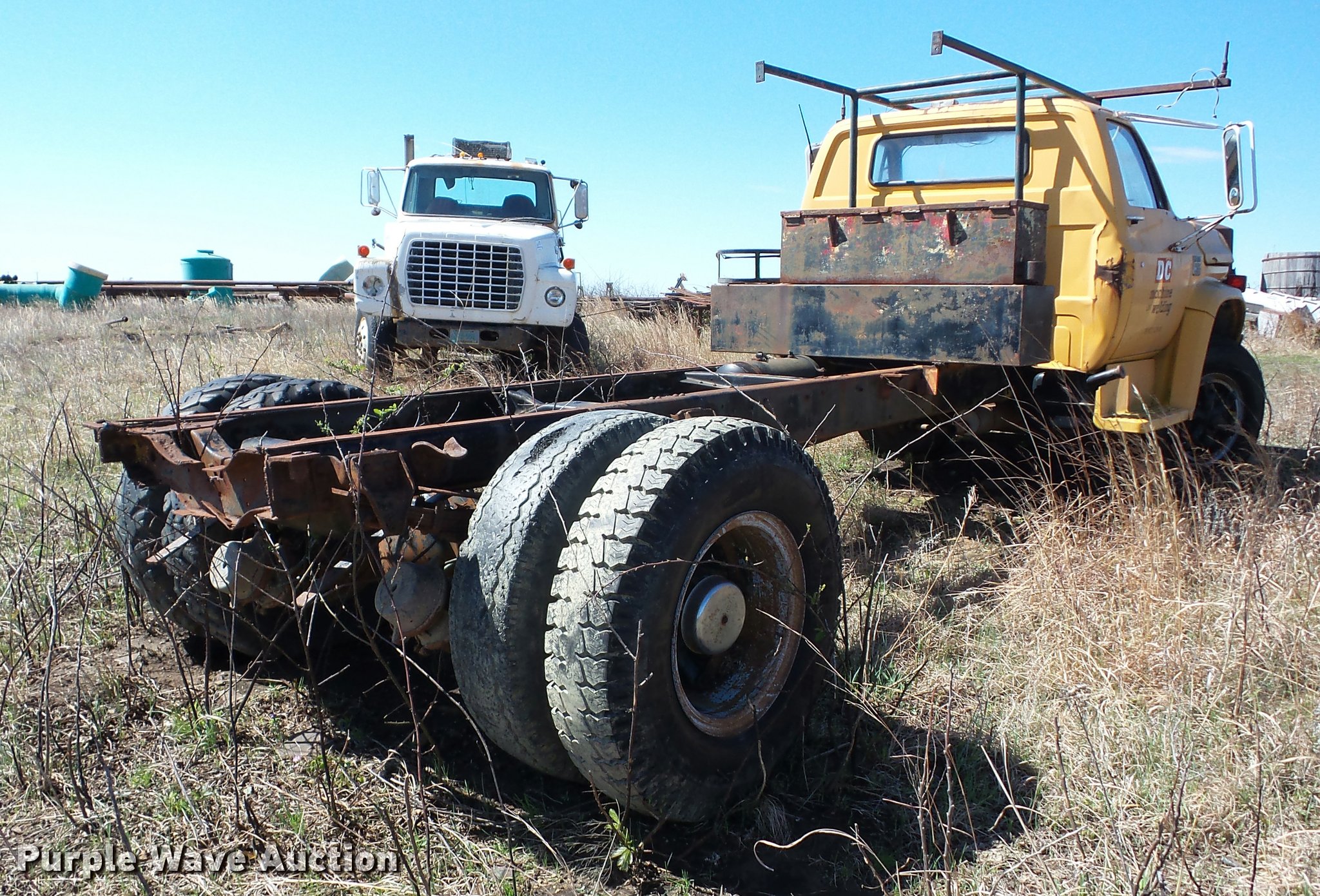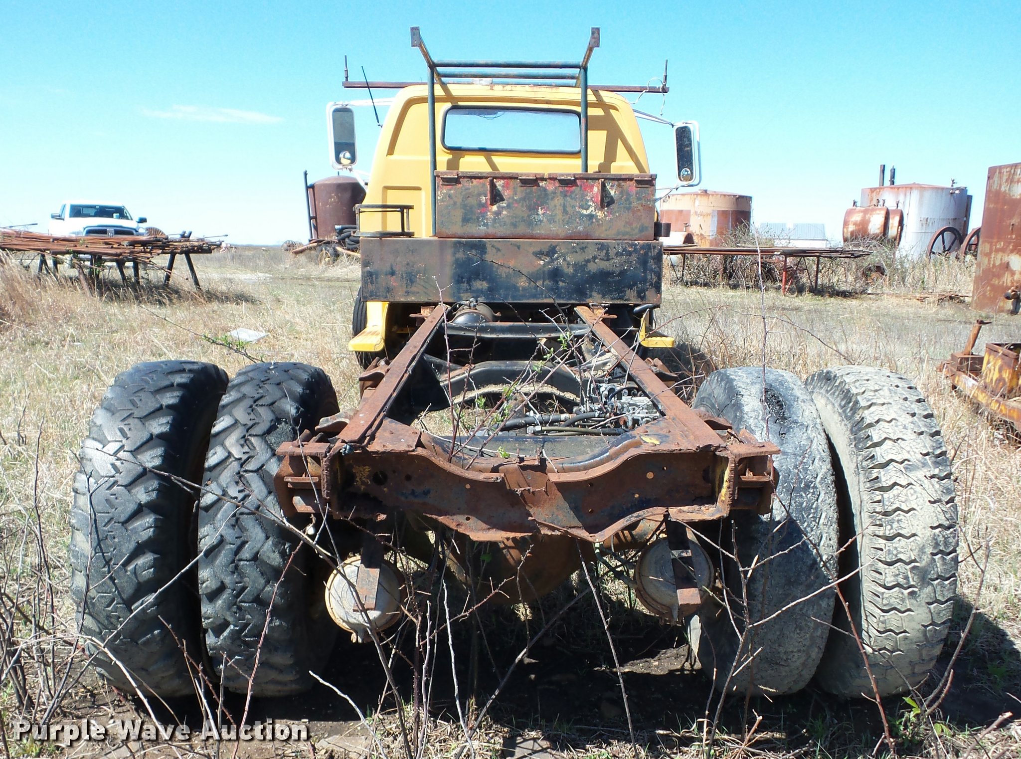 Purple Wave is selling a used Truck Chassis in Oklahoma. This item is a 1976 Chevrolet C65 truck cab and chassis with the following: V8 gas engine, Five speed manual transmission, Two speed rear end, Single axle, Heat, Suspension seat, 11R22.5 front tires, 10.00-20 rear tires, GVWR 26,000 lbs, Non-operational vehicle, Engine blown