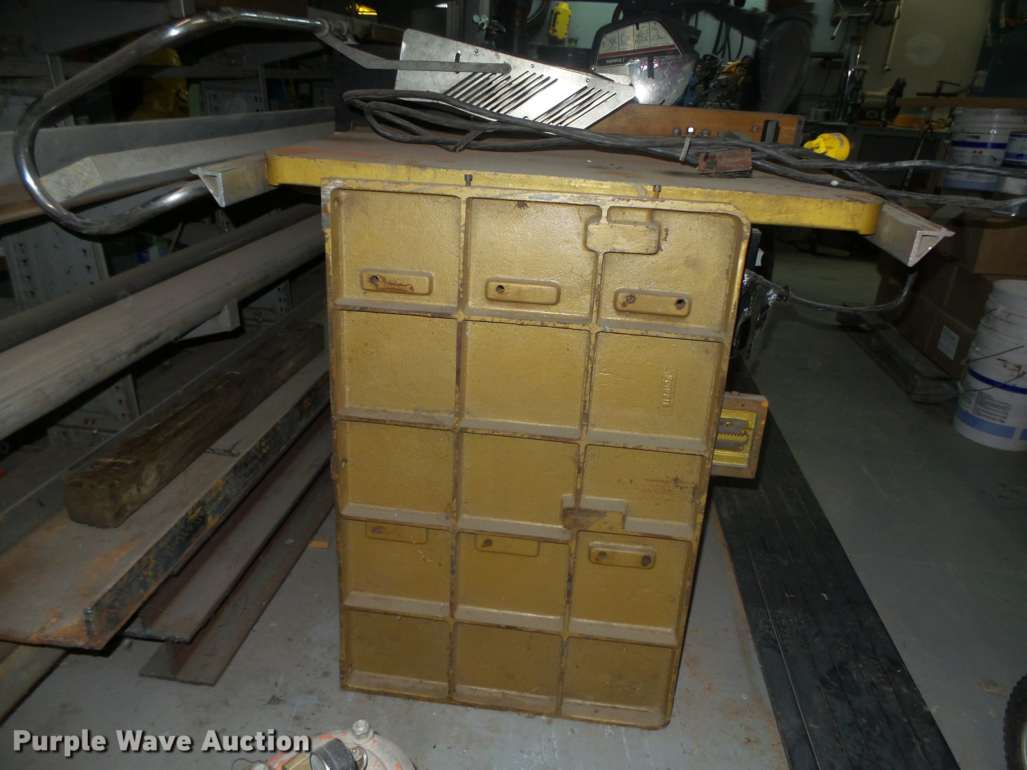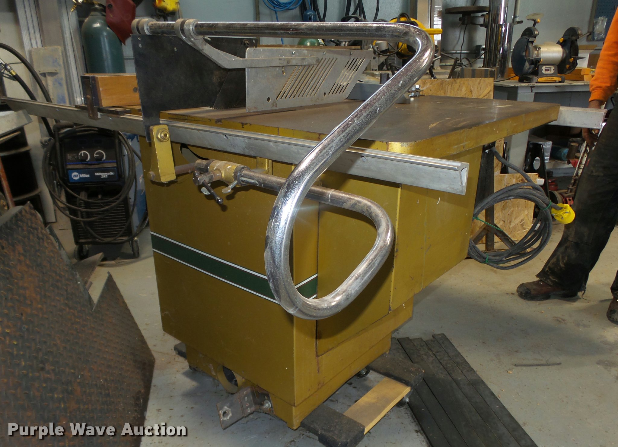 Purple Wave is selling a used Tools in Nebraska. This item is a Powermatic 68 table saw with the following: Marathon single phase electric motor, 3 HP, 230V, Table extension, Adjustable bracket, Blade guard, Sliding hydraulic angle, (5) 12" blades, Dollies are not included, Serial 8568038