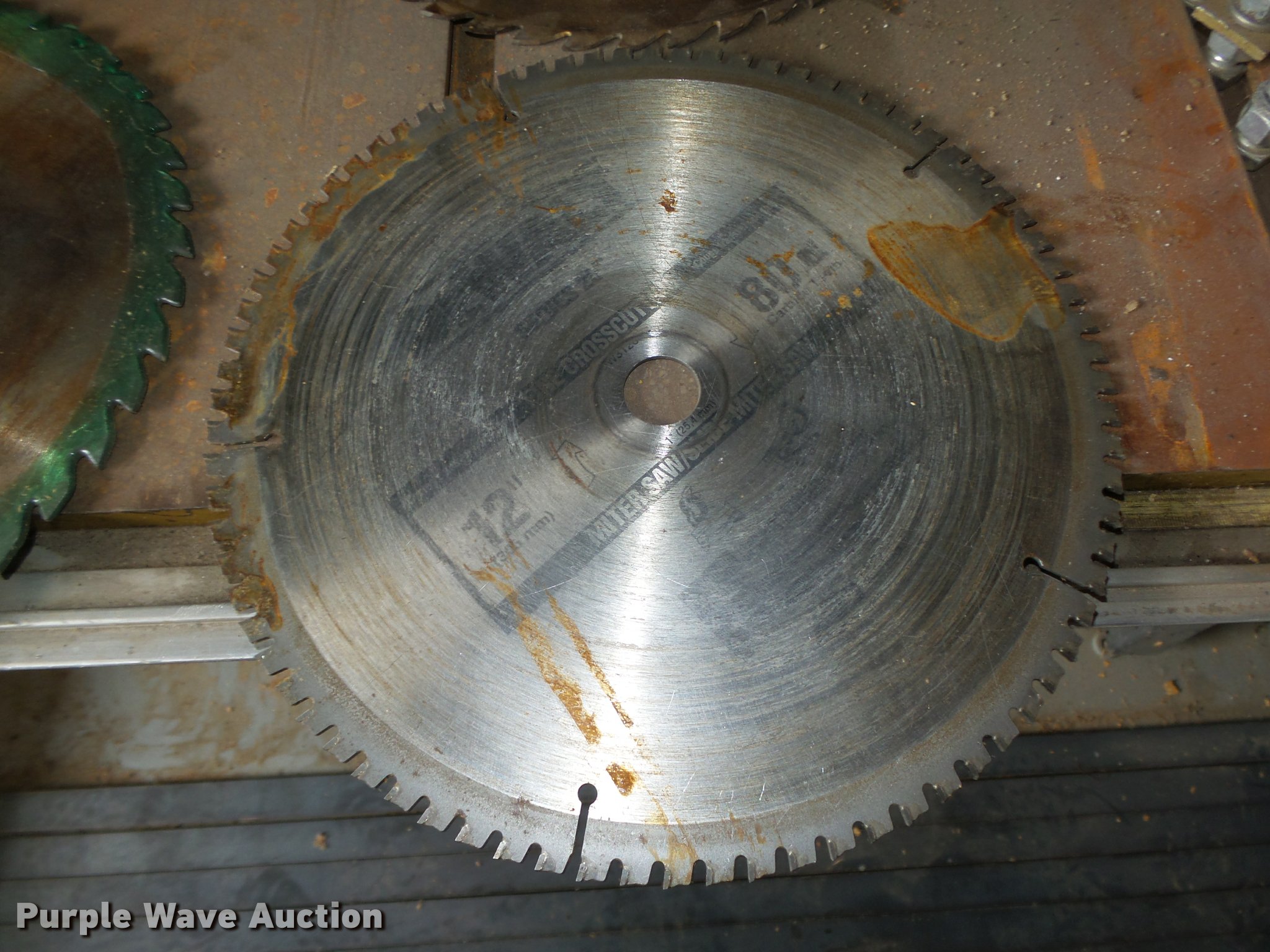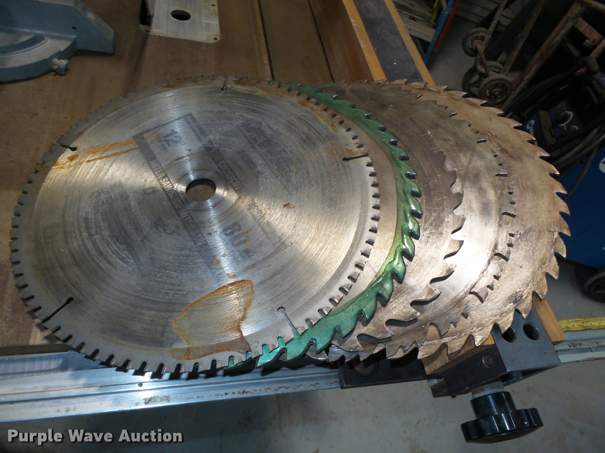 Powermatic 68 table saw. Marathon single phase electric motor 3 HP, 230V, Table extension Adjustable bracket, Blade guard, Sliding hydraulic angle, (5) 12" blades, Dollies are not included, Serial 8568038. JMN Construction. 314 W Reichmuth Rd. Valley, NE 68064