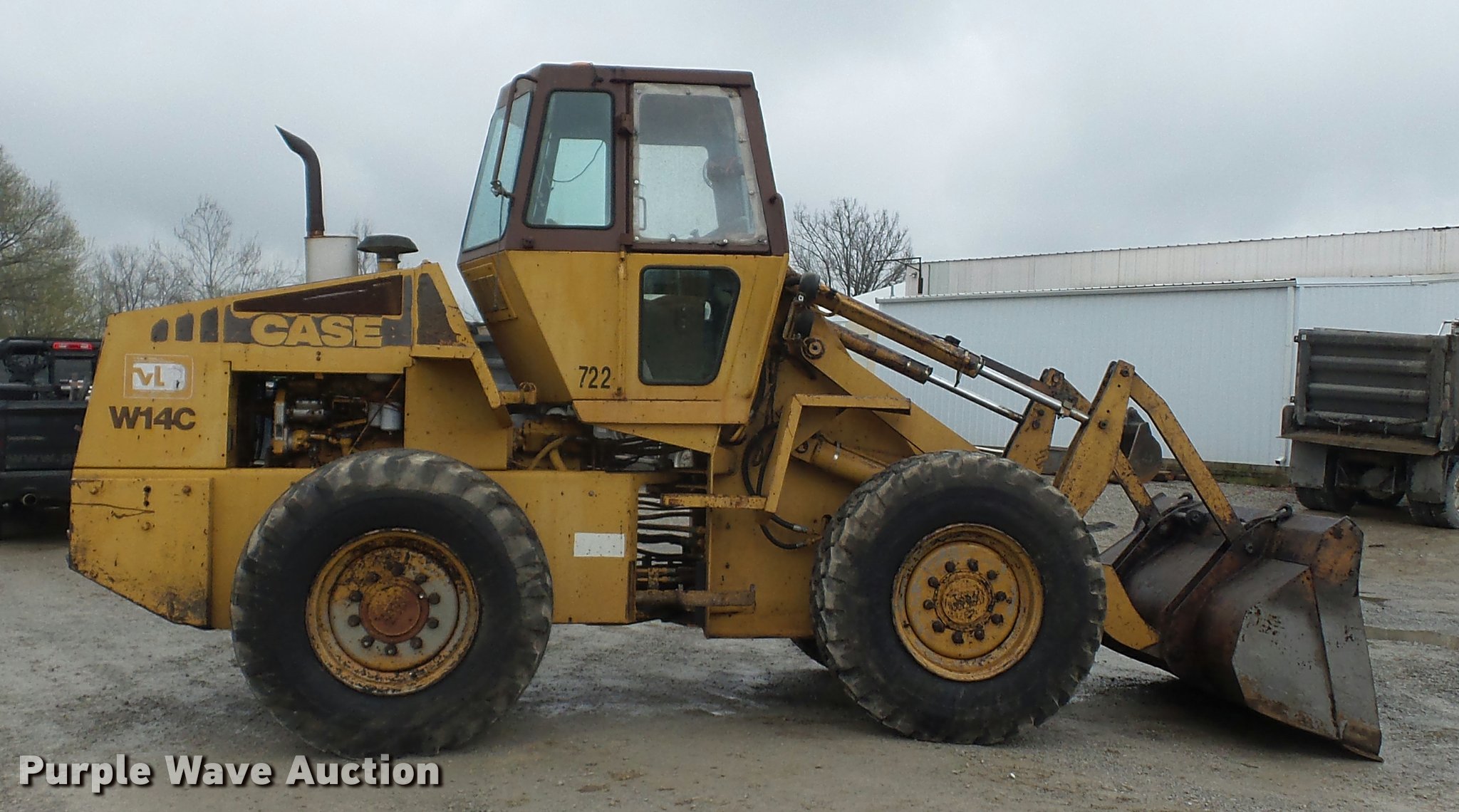 Purple Wave is selling a used Wheel Loader in Missouri. This item is a 1990 Case W14C wheel loader with the following: 6,145 hours on meter, Six cylinder turbo diesel engine, Powershift transmission, 3F-3R gears, Enclosed cab, Suspension seat, Two-lever bucket controls, Front and rear work lights, 90"W general purpose bucket, Bolt-on cutting edge, Rear pin hitch, 17.5R25 tires, Serial JAK0018832