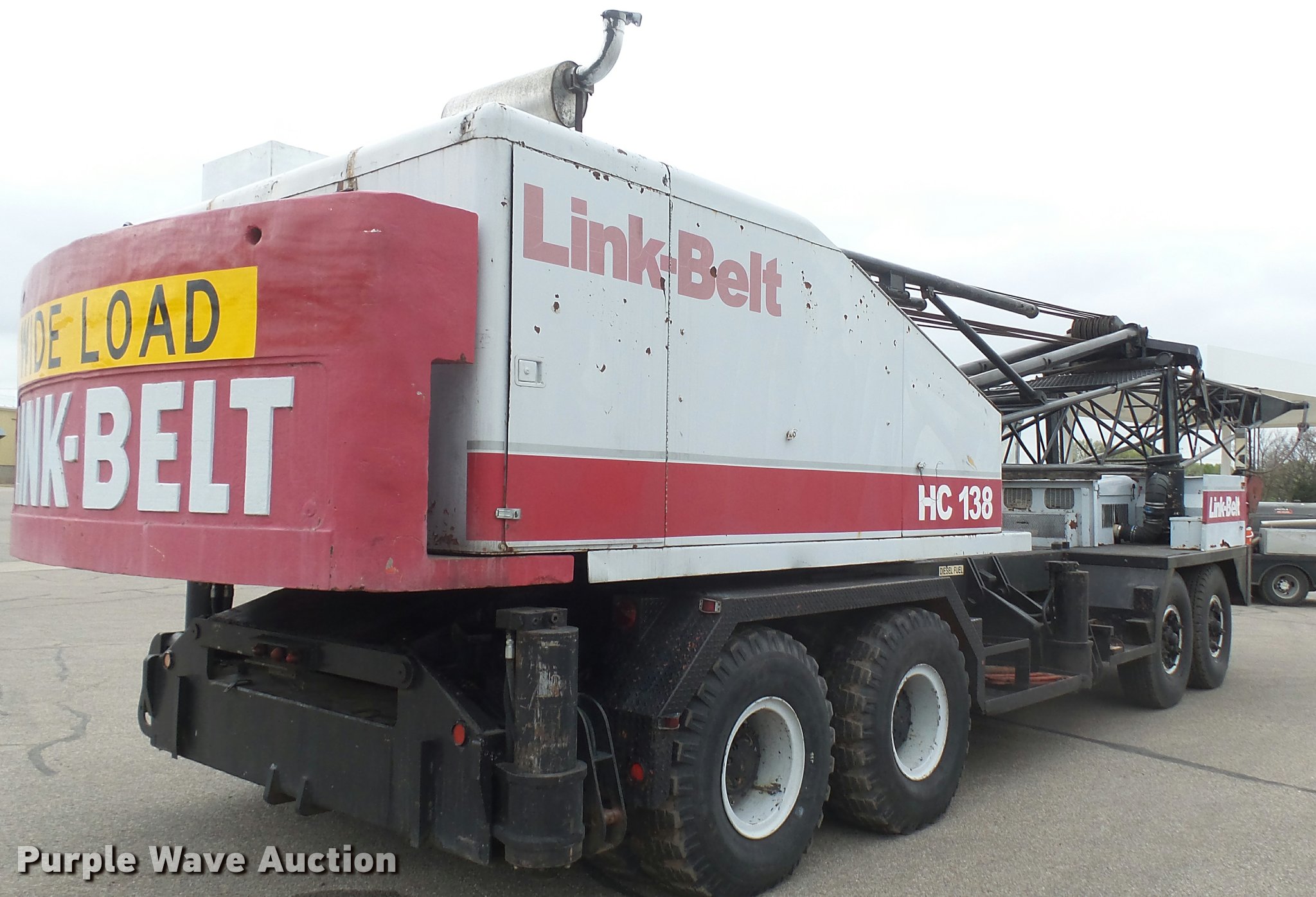 Purple Wave is selling a used Truck Crane in Kansas. This item is a 1969 Link Belt HC138 crane with the following: 13,299 miles on odometer, 2,305 hours on lower engine meter, 260 hours on upper engine meter, Six cylinder diesel lower engine, Cummins six cylinder diesel upper engine, Nine speed manual transmission, Tandem axle, Lower interior, Suspension seat, Stick crane controls, Upper interior, Suspension seat, Stick crane controls, Lattice boom, 40'L boom, 30'L jib, 130,000 lbs max lift capacity, (3) winches, In-cab boom controls, Crane ball and hook, (4) stabilizers, (4) additional boom sections, 110' total length, Additional cables included, Spring suspension, Air brakes, G-20 tires, Manuals included, Serial 19F9.261