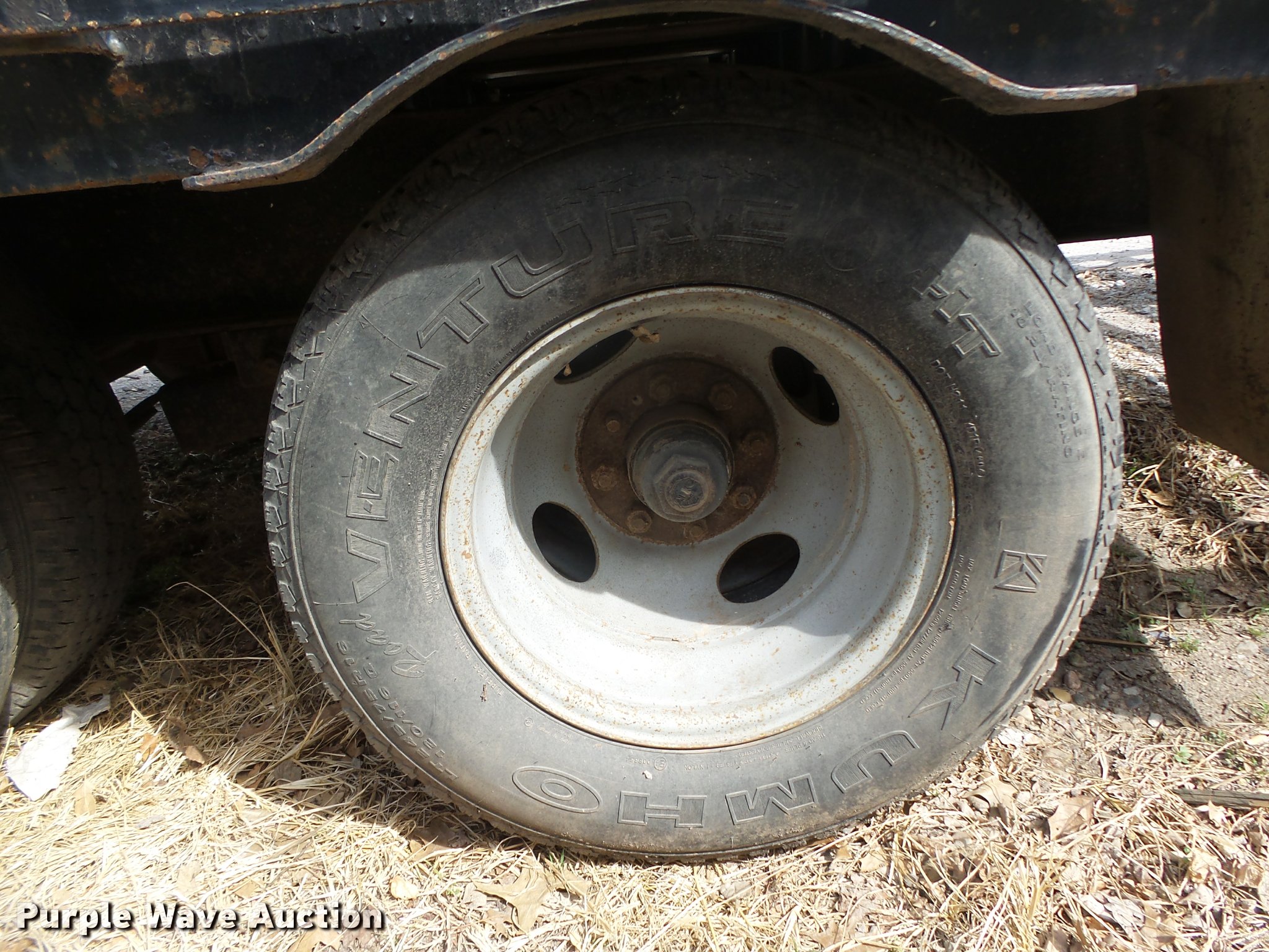 Purple Wave is selling a used Equip. Trailer in Nebraska. This item is a Shop built equipment trailer with the following: 28'L x 102"W wood deck, 34.5" floor height, 5'L dove tail, 48"L x 20.5"W ramps, Stake side pockets, Rear stabilizers, Toolbox, Dual leg landing gear, Receiver hitch, Gooseneck hitch, Spring suspension, Electric brakes, Steel wheels, LT235/85R16 tires, Break-away cable broken