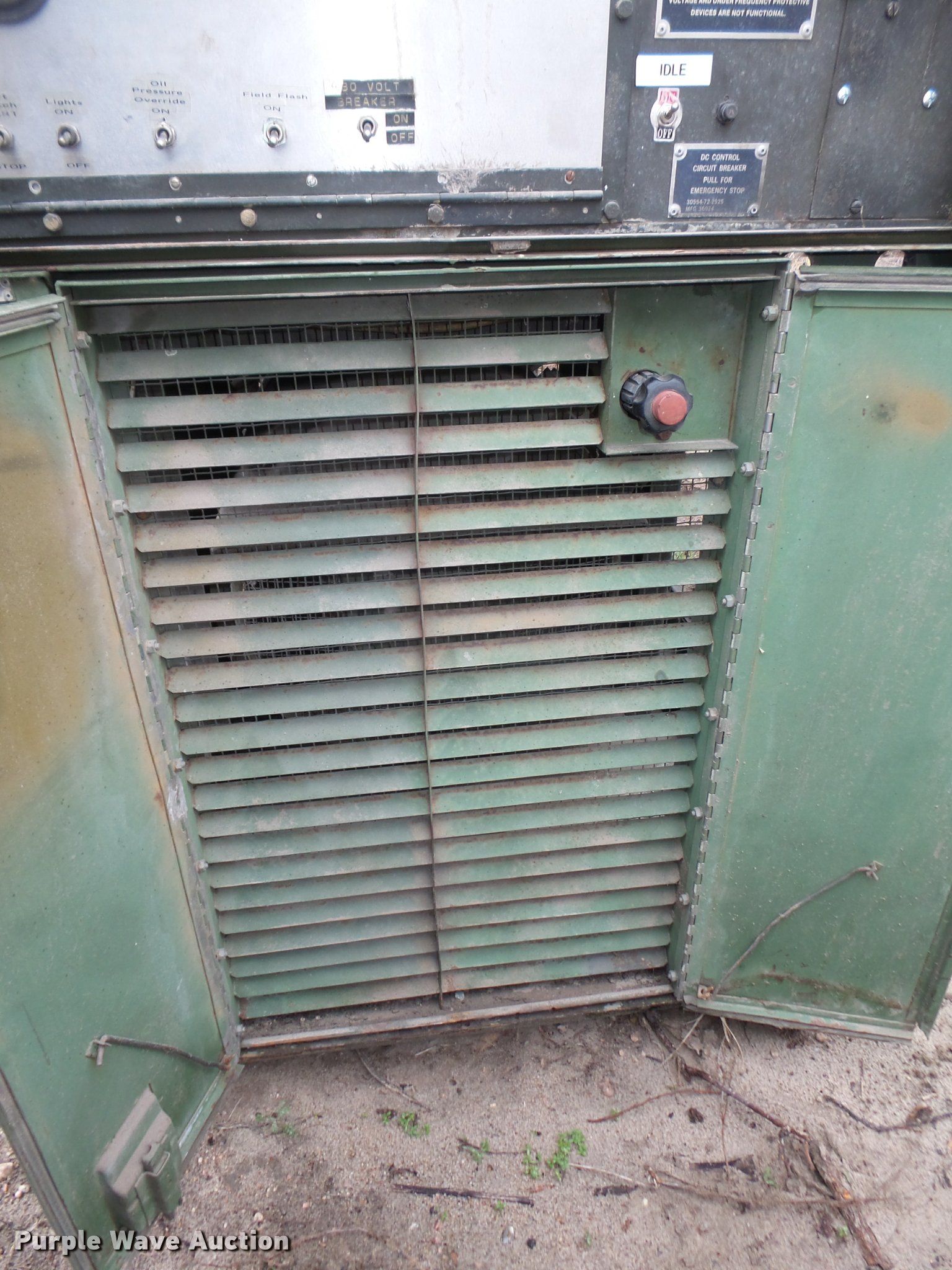 1983 Libby Welding Co. MEP005A generator. 6,105 hours on meter, Six cylinder diesel engine, 80"L x 36"W x 55'H O.D. main body, 30 kW, Single phase, Electric start, Control panel, 26 gallon fuel tank, Forklift pockets, Skid mounted, 2,850 lbs dry weight, Serial RZ54416. Johnson Trucking Sand & Gravel. 3163 16th St. Columbus, NE 68601