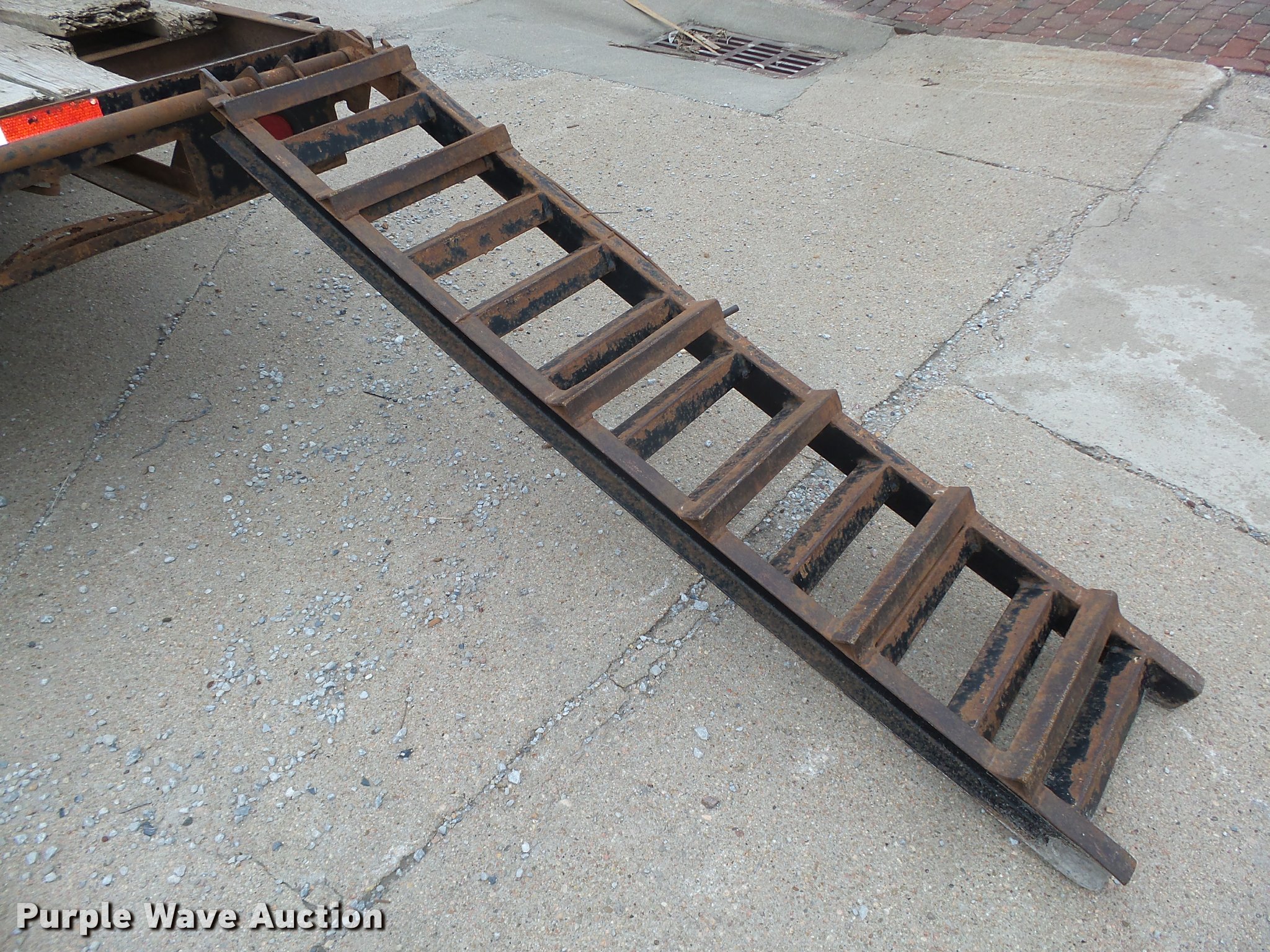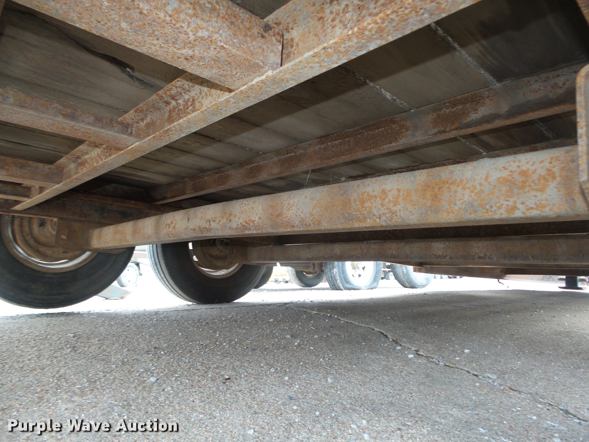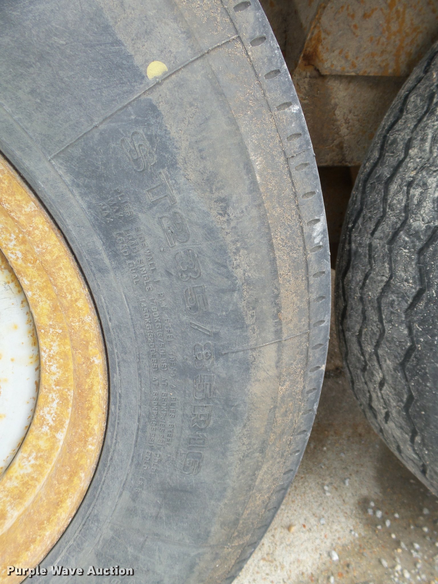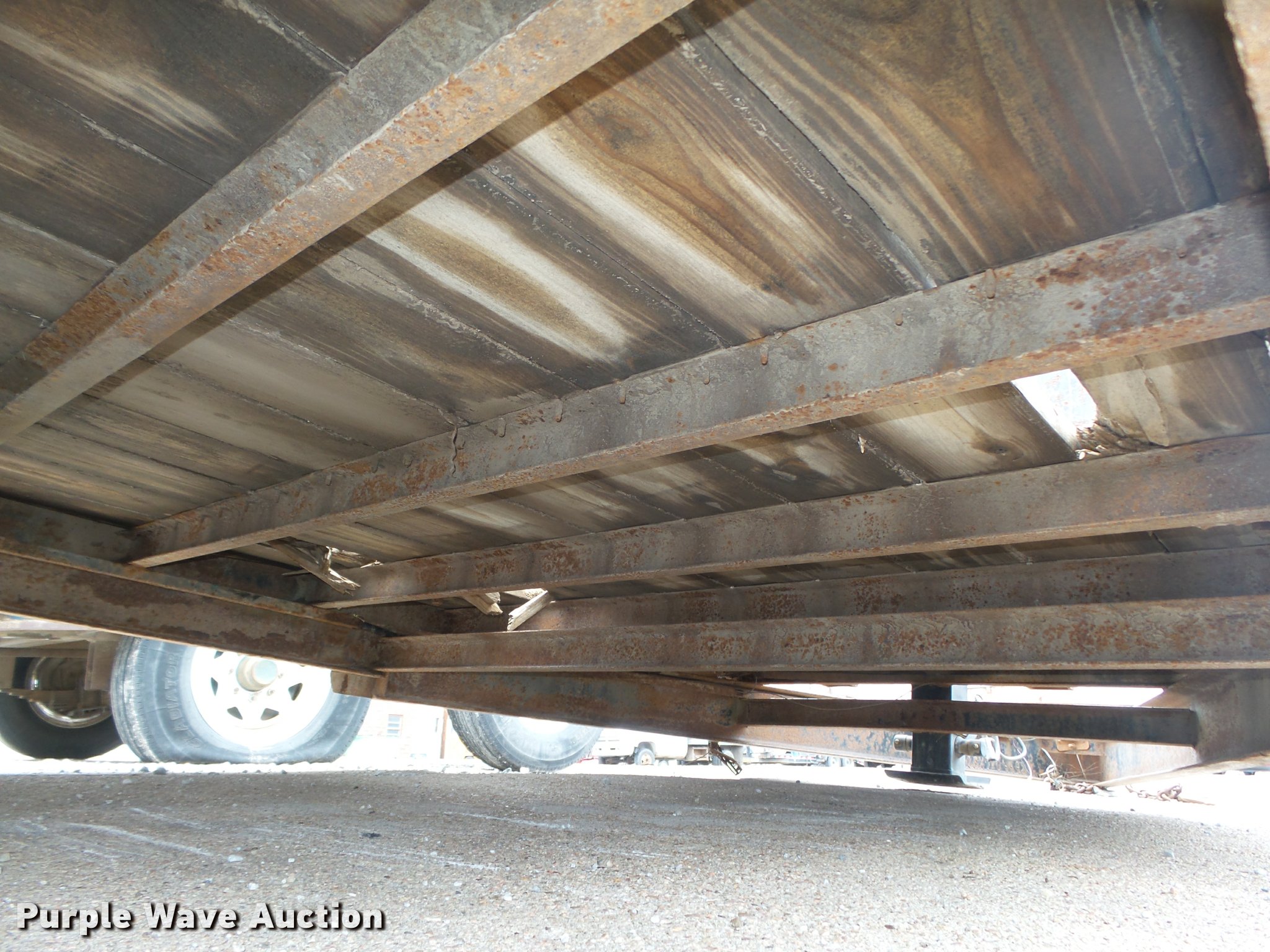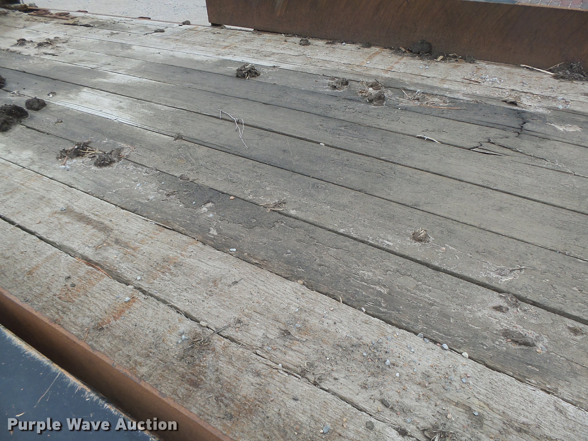 Purple Wave is selling a used Equip. Trailer in Nebraska. This item is a 2007 Titan equipment trailer with the following: 20'L x 102"W wood deck, 10" side height, 24" floor height, 80"W between fenders, 70"L x 15"W ramps, D-ring tie downs, Stake side pockets, Front mounted storage, Toolbox, Single leg landing gear, Pintle hitch, Tandem axle, Torsion axles, Electric brakes, Steel wheels, 235/85R16 tires, Brakes and lights are inoperable, Bent frame