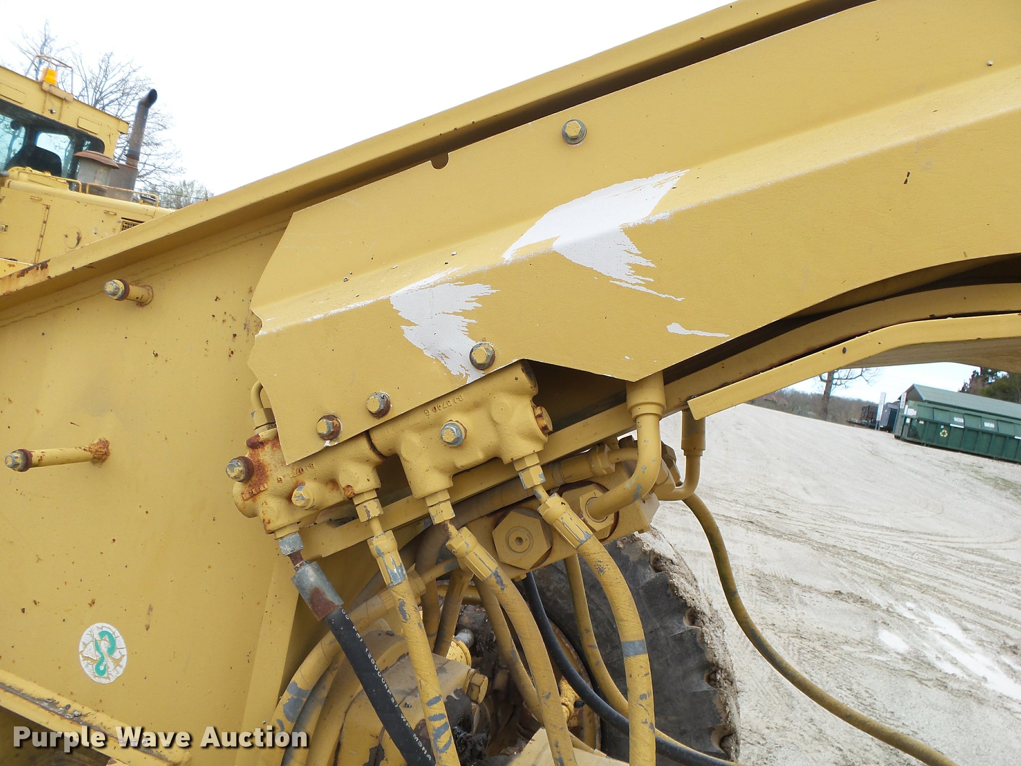 Purple Wave is selling a used Motor Grader in Missouri. This item is a 1995 Caterpillar 140G motor grader with the following: 7,880 hours on meter, Caterpillar 3306 six cylinder turbo diesel engine, Powershift transmission, 6F-6R gears, Differential lock, EROPS, Heat, AM/FM, Suspension seat, Nine control valves, Front and rear work lights, 12'W moldboard, Tip control, Side shift, Circle slip clutch, Rear ripper, (3) shanks, Five shank capacity, 14.00R24 tires, Rust, Serial 5MD03515