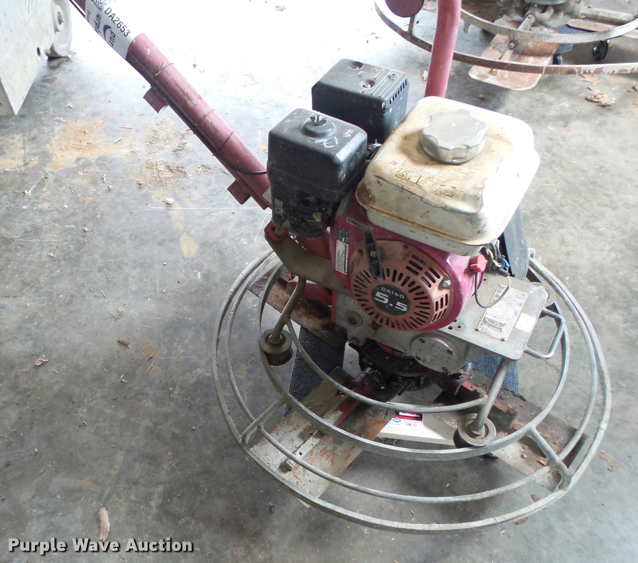 Purple Wave is selling a used Concrete Equip. or Acces. in Missouri. This item is a Allen Edger power trowel with the following: Honda GX160 gas engine, 5.5 HP, 30"W, Leaks oil, Serial 090120