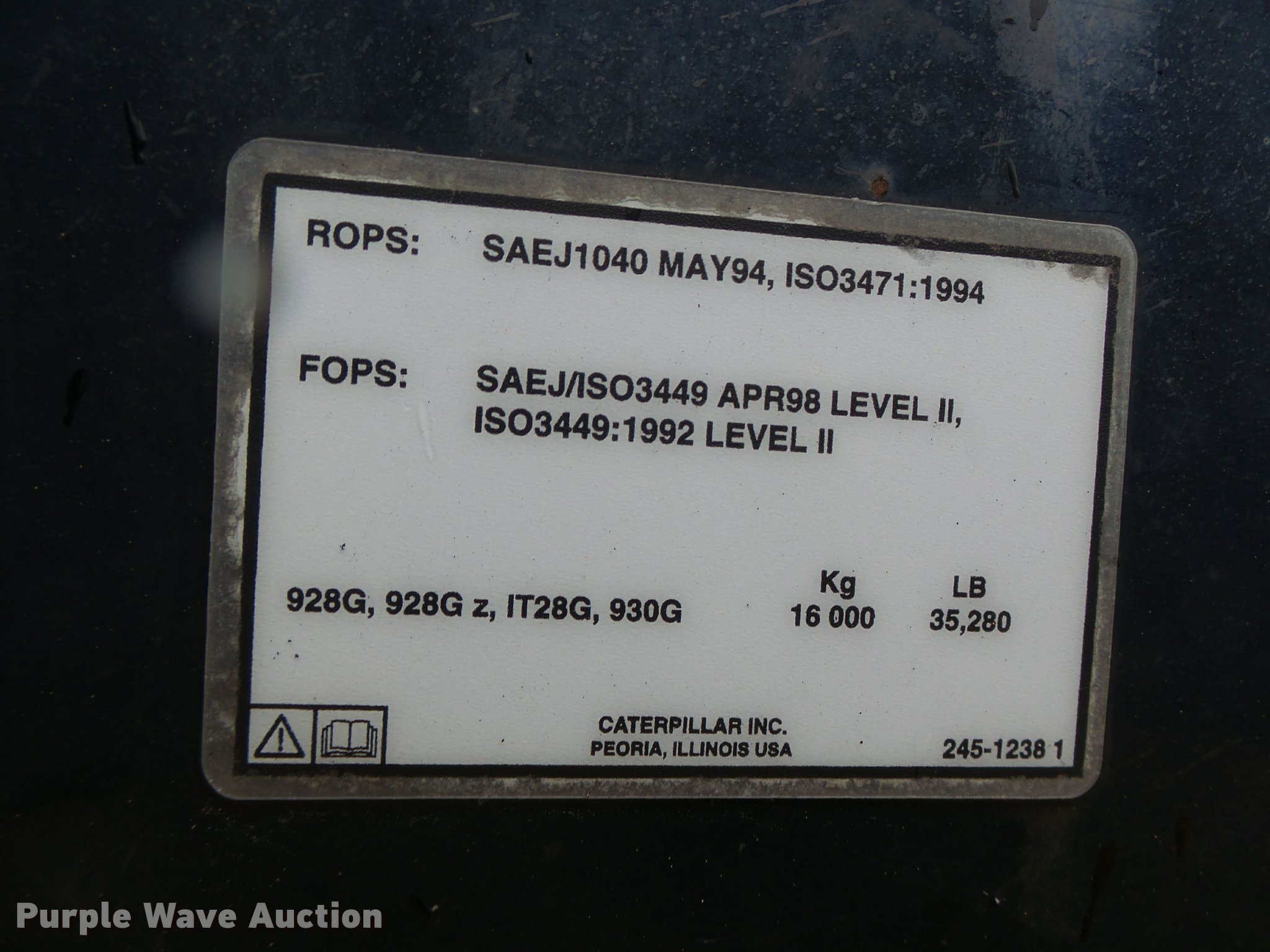 Purple Wave is selling a used Wheel Loader in Missouri. This item is a 2007 Caterpillar 930G wheel loader with the following: 3,478 hours on meter, Caterpillar six cylinder turbo diesel engine, Powershift transmission, 4F-4R gears, Limited slip front and rear axles, Enclosed cab, EROPS, AC and heat, Suspension seat, Joystick bucket controls, Wipers, Front and rear work lights, 99"W general purpose bucket, Bolt-on cutting edge, Quick coupler, Bridgestone 20.5R25 tires, Serial CAT0930GCTWR02852