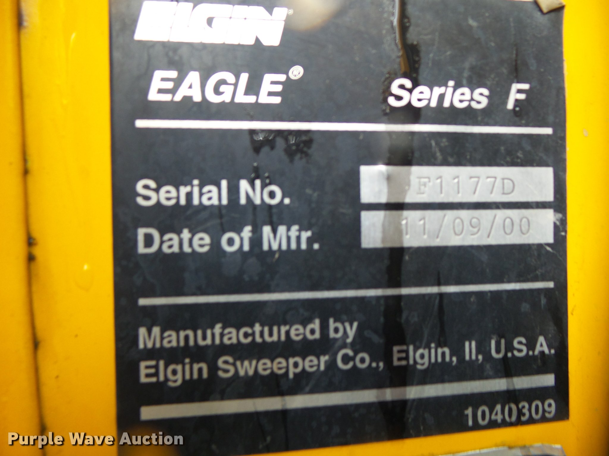 Purple Wave is selling a used Street Sweeper Truck in Missouri. This item is a 2001 Sterling SC8000 street sweeper with the following: 177,619 miles on odometer, 8,569 hours on meter, Cummins 5.9L L6 turbo diesel engine, Automatic transmission, Single axle, AC and heat, Cruise, AM/FM, Power mirrors, Suspension seat, Rear four cylinder diesel engine, Elgin Eagle Series F bed, Serial F1177D, Single fuel tank, Air suspension, Air brakes, 11R22.5 tires, GVWR 32,000 lbs, Additional broom replacement parts and strips included, MODOT ID G8720