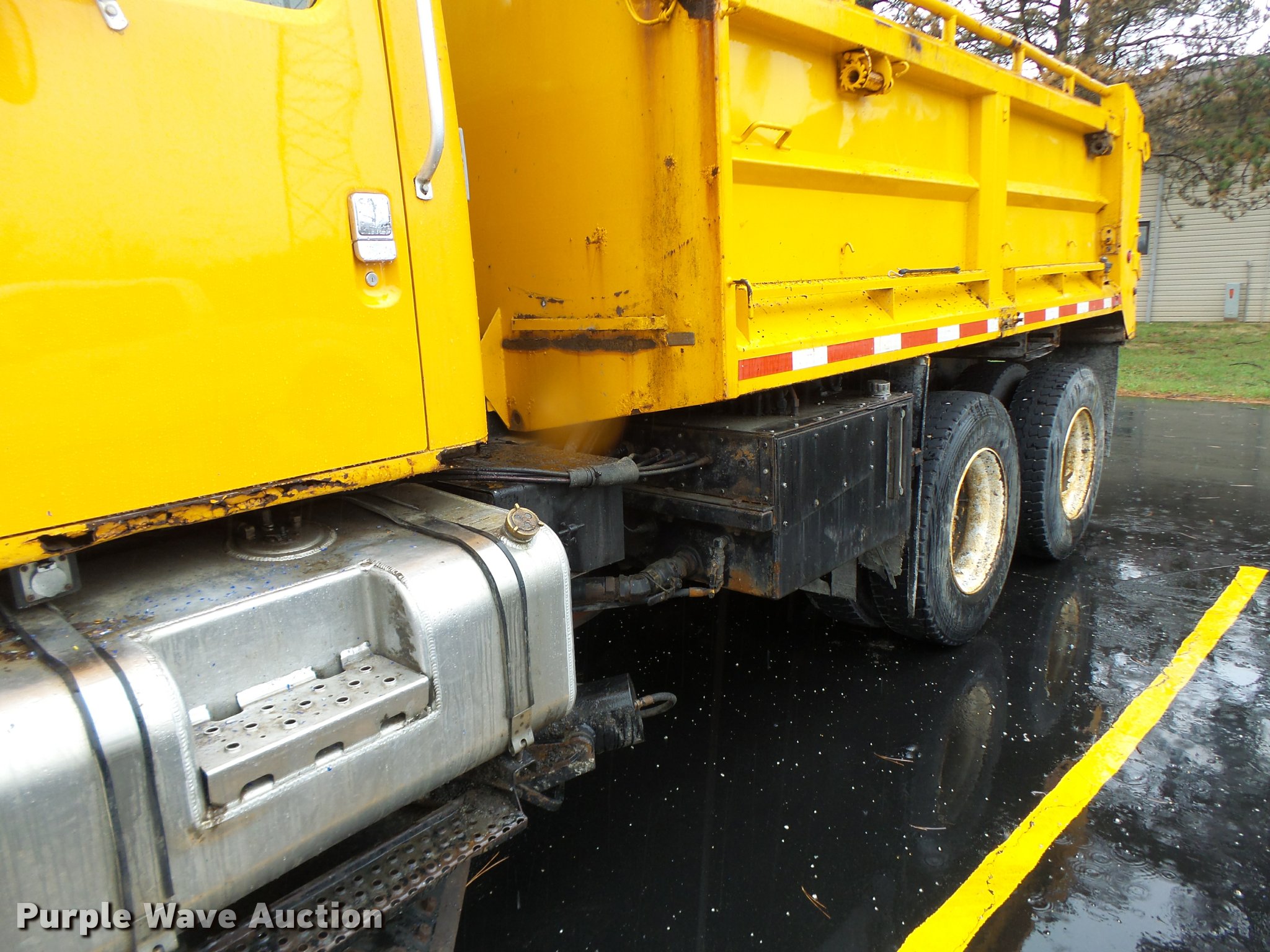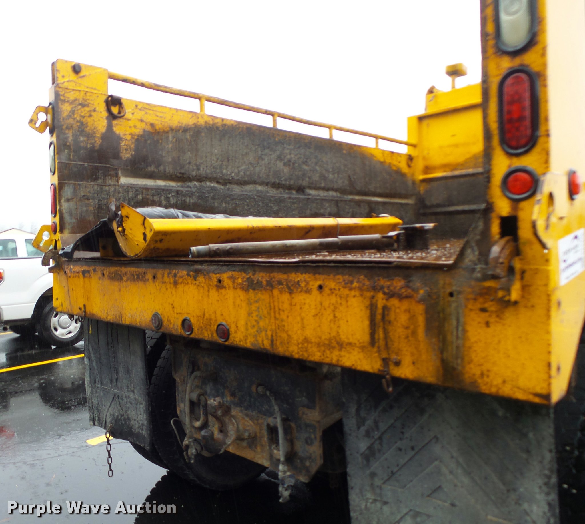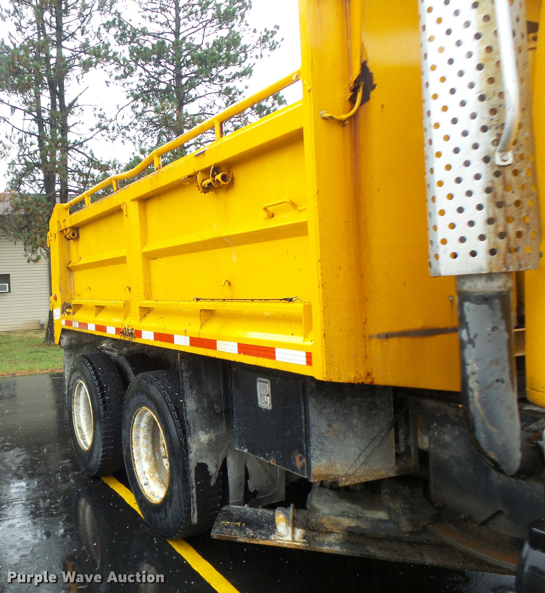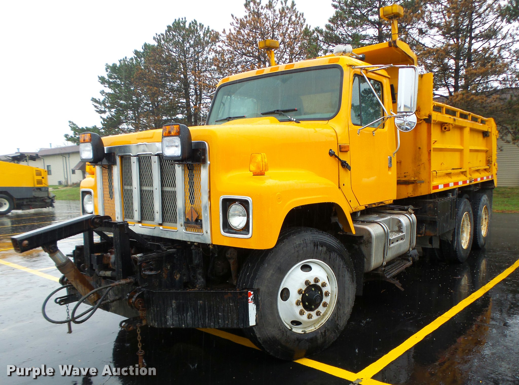 Purple Wave is selling a used Construction Dump Truck in Missouri. This item is a 2002 International F2554 dump truck with the following: 243,328 miles on odometer, 12,860 hours on meter, International DT530 8.7L L6 turbo diesel engine, Automatic transmission, Tandem axle, Inter-axle differential lock, AC and heat, Cruise, Weatherband radio, Power windows, Power and heated mirrors, Air suspension seat, PTO, Monroe 00085008 steel dump bed, 13'L x 8'W, Single ram hoist, Underbed plow, Single fuel tank, Spring suspension, Air brakes, 315/80R22.5 front tires, 11R22.5 rear tires, MODOT ID 6596