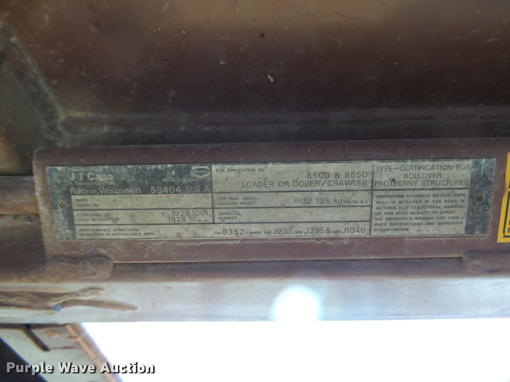 Purple Wave is selling a used Crawler Dozer in Iowa. This item is a 1989 Case 850D dozer with the following: 4,150 hours on meter, Cummins six cylinder diesel engine, Powershift transmission, OROPS canopy, Serial 3005352, Suspension seat, Differential steering, Screen guards, Front and rear work lights, 8' six-way dozer blade, Rear draw bar, 20" single grouser track pads, 26,750 lbs. base operating weight, Serial JAK0002272